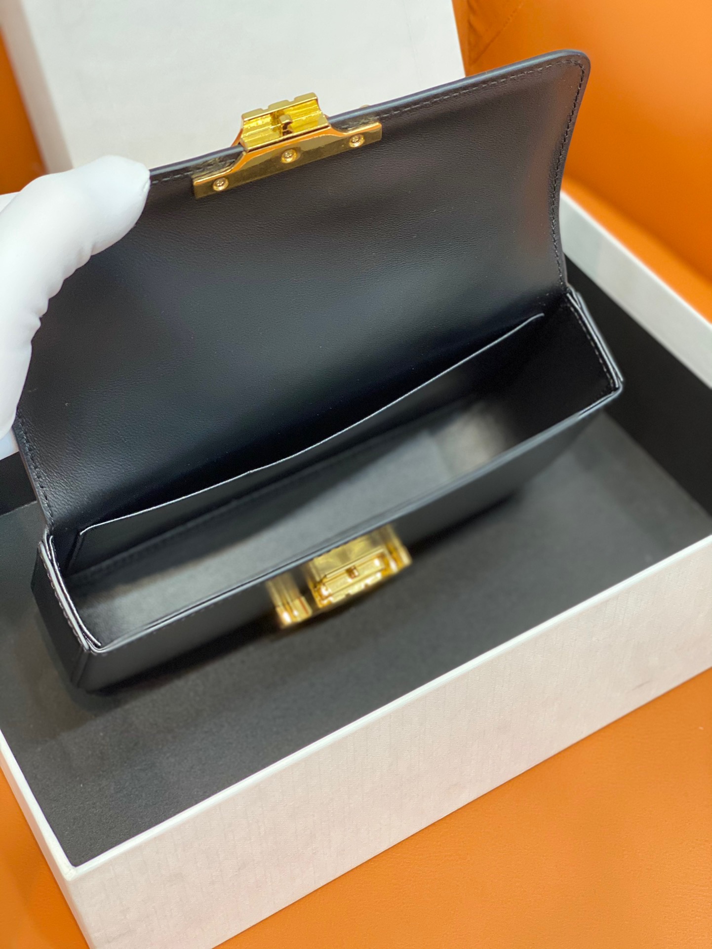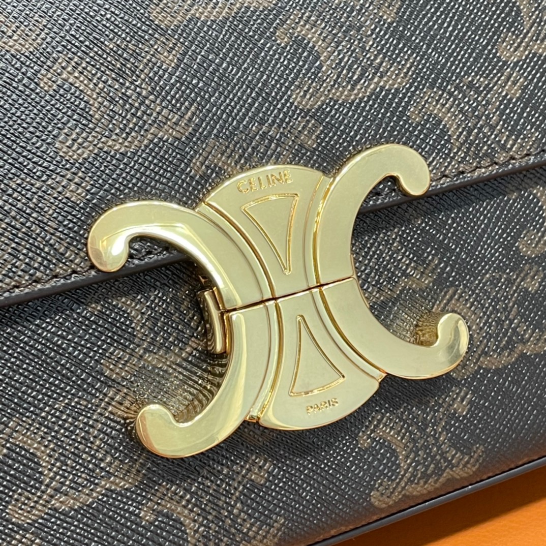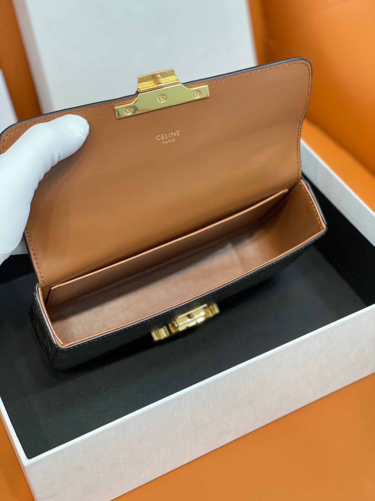 Introducing an exquisite and versatile handbag designed for daily use – the *eline Chain Bag. With its clean and elegant silhouette, this bag is enhanced by a front flap adorned with a stunning Triomphe Metallic Closure. Crafted with utmost attention to detail, it is available in two luxurious materials: Canvas or Calfskin Leather. For added convenience, this bag comes with a drop chain, allowing you to effortlessly carry it as a shoulder or cross body bag. Whether you’re attending an evening event or a formal gathering, the *eline Chain Bag will gracefully accompany you. Upon opening the flap, you will discover a spacious main compartment and a handy flat pocket, providing ample storage for your necessities.