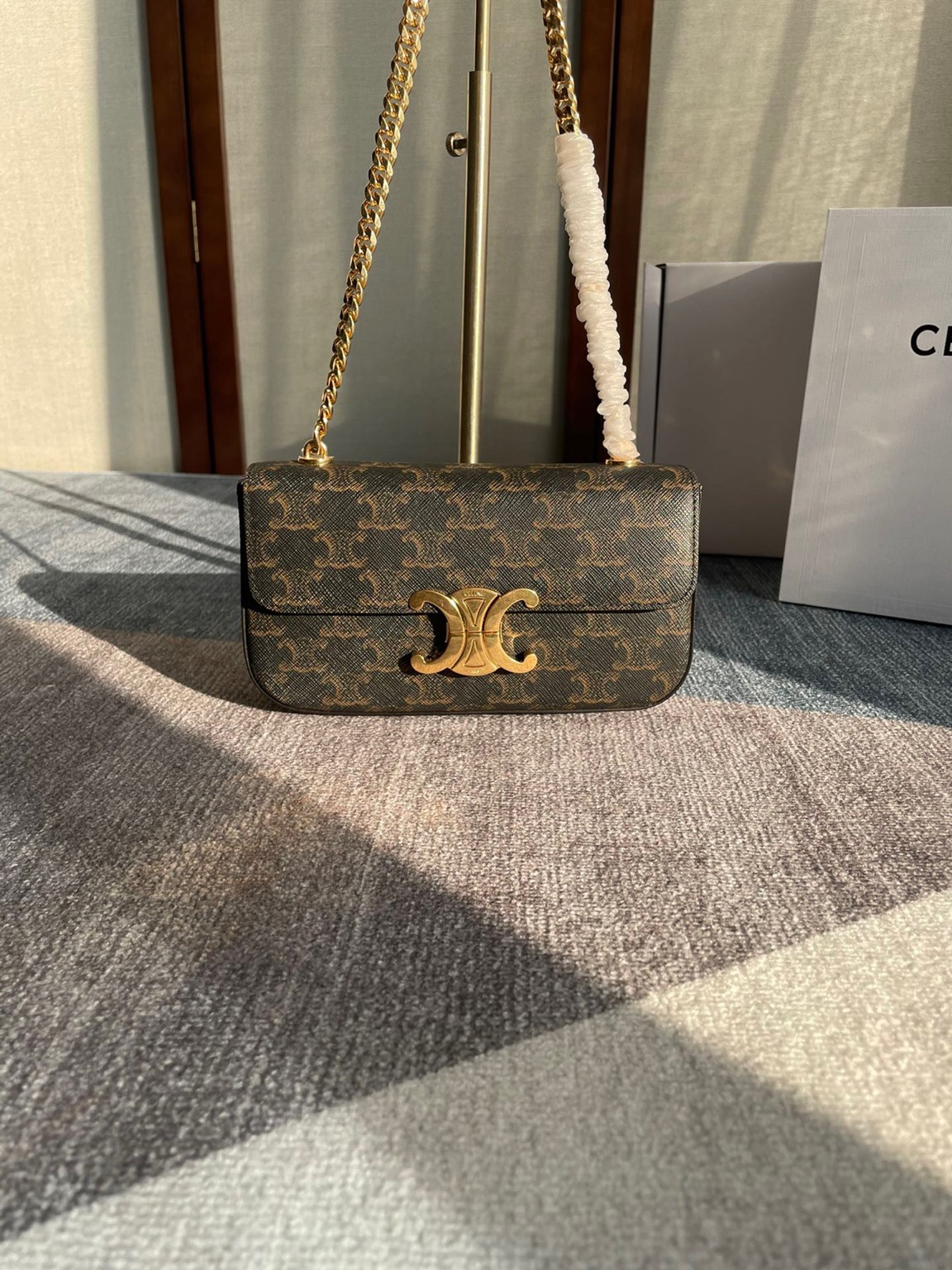 Chain Shoulder Bag Triomphe In Shiny Calfskin. Authentic quality luxury bag crafted in genuine leather comes with authenticity card, dust bag and gift bag. Effortlessly chic: your perfect companion for everyday elegance.