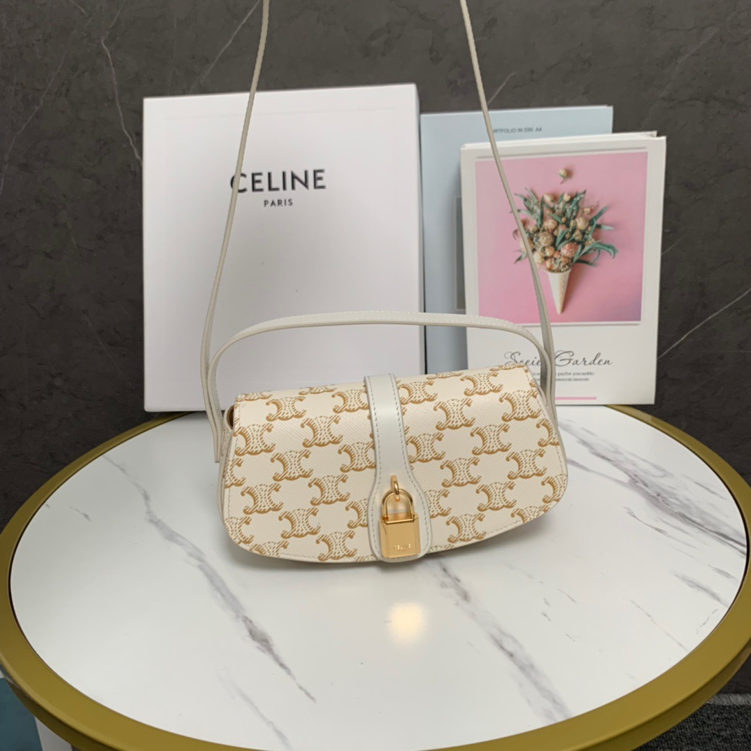 *eline has truly outdone themselves with this exquisite small bag, which showcases their exceptional design skills in a minimalistic edition. The standout feature of this bag is the remarkable leather strap that elegantly connects to the ornamental lock, boasting a beautifully large and shimmering gold hardware. This captivating lock will undoubtedly steal all the attention. To cater to various carrying preferences, the bag is equipped with a convenient short-handle for hand-carry, while also providing a long leather strap for shoulder carry. The slender and delicate appearance of the straps adds a touch of femininity to this delightful creation.