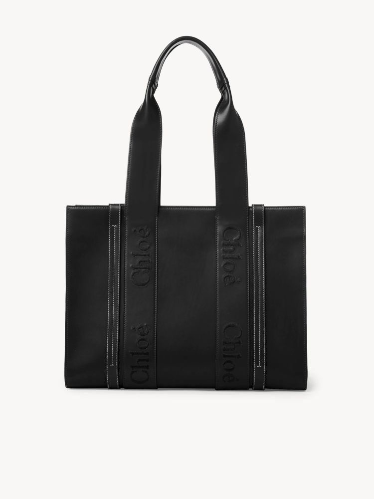 The Woody Tote Bag combines luxury and sustainability with its soft calfskin construction and eco-friendly linen lining. Versatile and chic, it’s perfect for both casual and evening use.