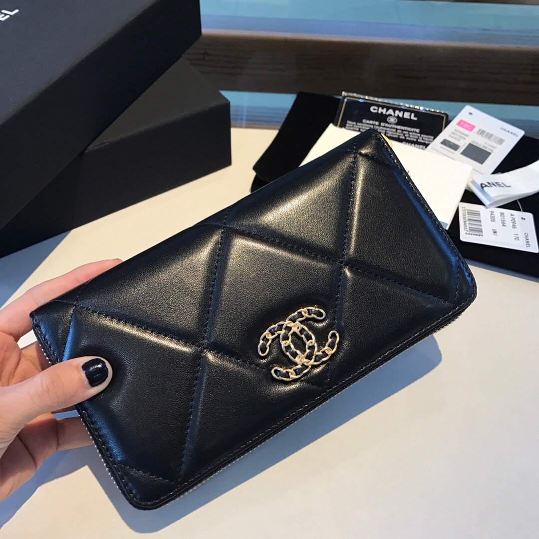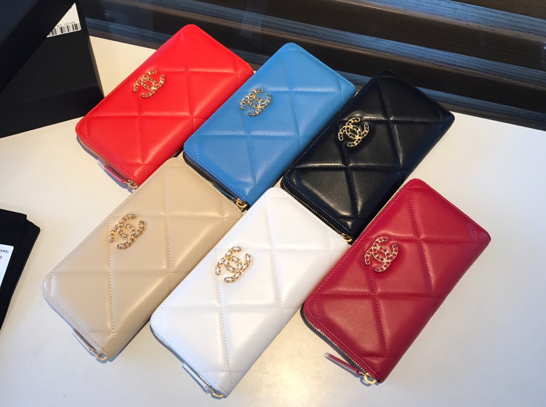 19 Long Zipped Wallet. Authentic quality luxury wallet crafted in genuine leather comes with authenticity card, dust bag and gift bag. The perfect wallet for your paper money, credit cards, and coins.