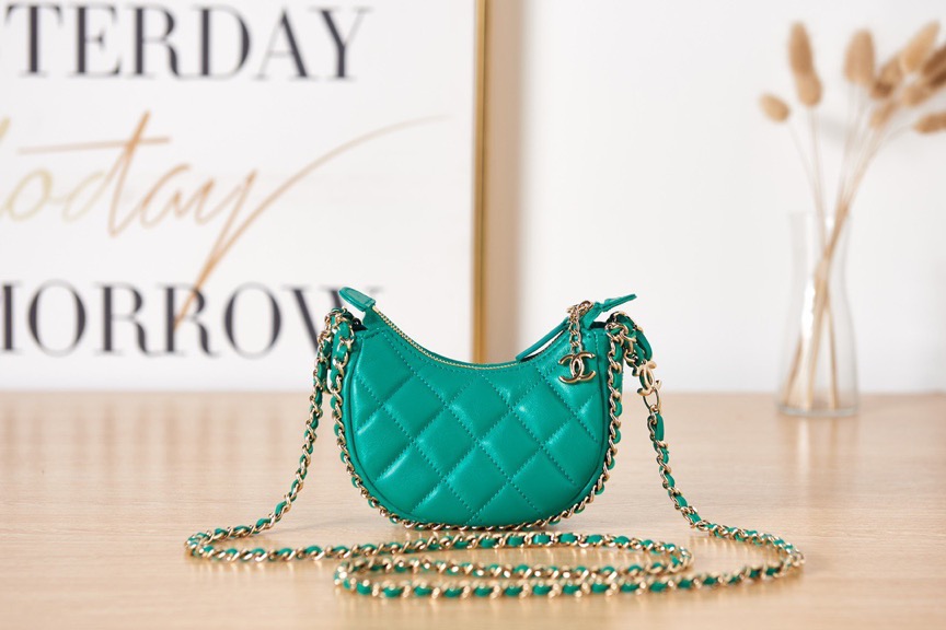The Clutch with Chain from Cruise 2022/23 is a delightful blend of charm and luxury. Crafted from lambskin leather with gold-tone accents, its compact design and long chain offer effortless elegance.