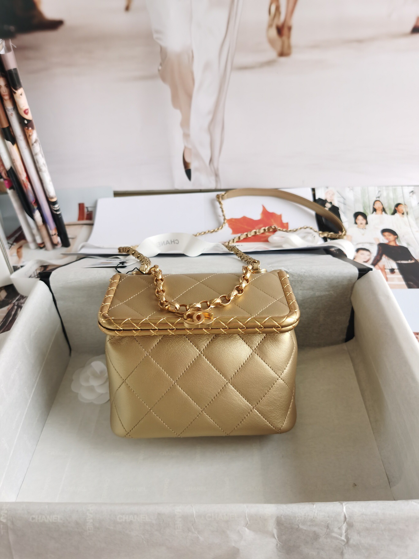 We have a strong admiration for the exquisite design of this bag, particularly the attractive shape and the intricately crafted diamond quilted pattern on its body. The top of the bag showcases a sleek metal plate embellished with the iconic signature of the house, complemented by a secure lock closure. For added convenience, the bag can be effortlessly carried either on the shoulder or across the body, courtesy of the adjustable shoulder strap. This strap allows you to personalize the fit and ensure optimal comfort.