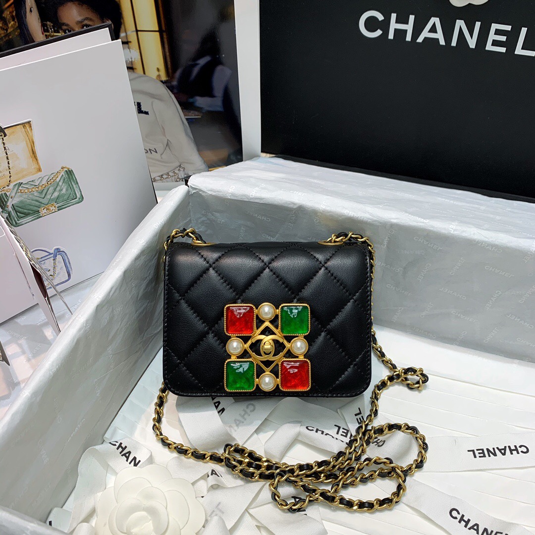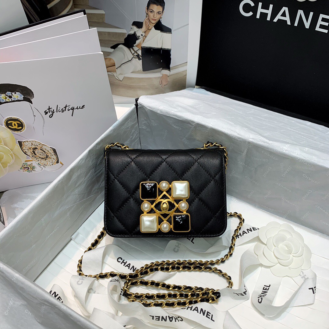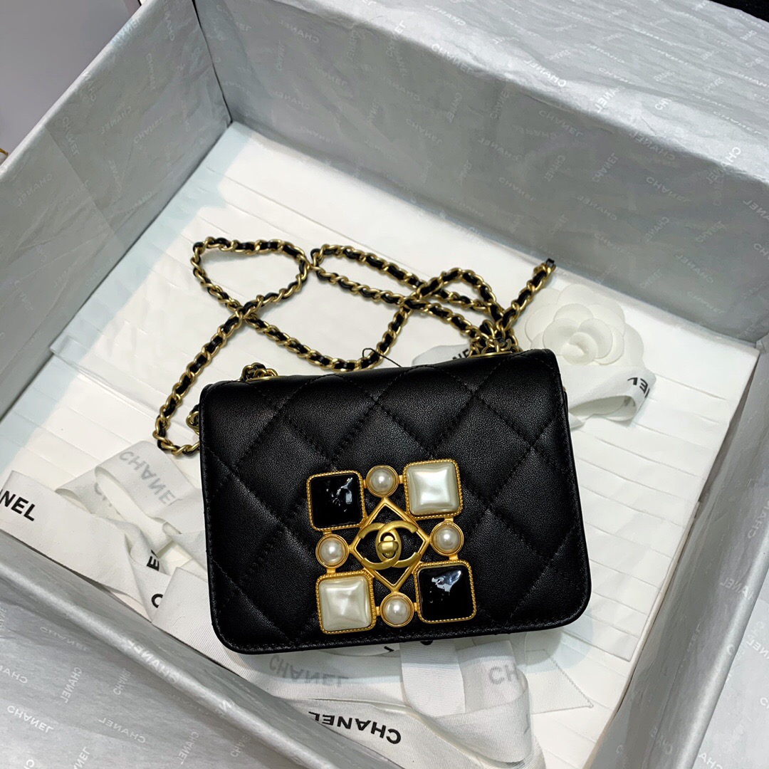 Small Flap Bag with Crystal Pearls and Resin. Authentic quality luxury bag crafted in genuine leather comes with authenticity card, dust bag and gift bag. Captivating Complexity: Embrace Subtle Glamour with *anel’s Bejeweled Small Flap Bag.