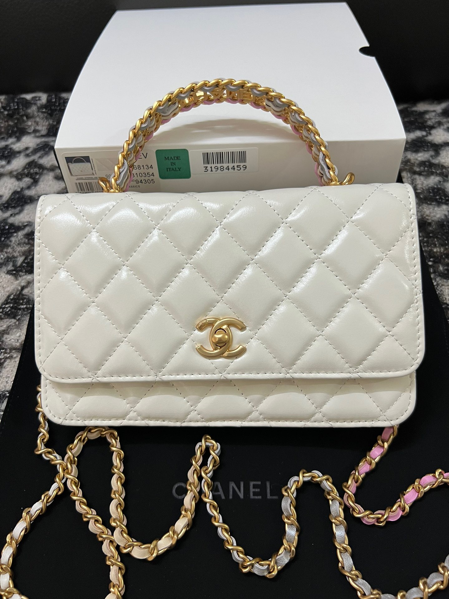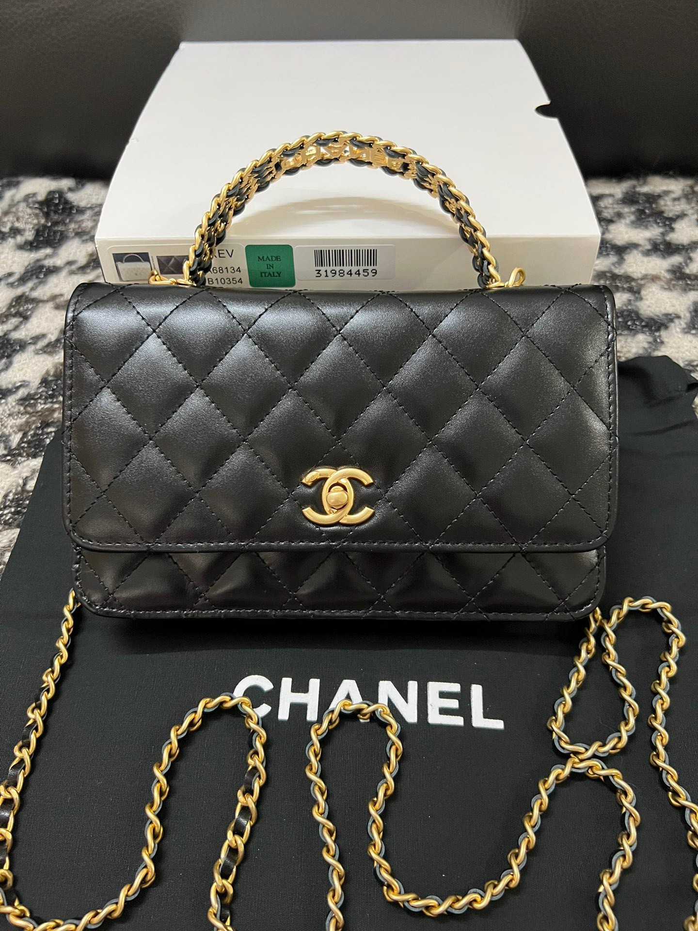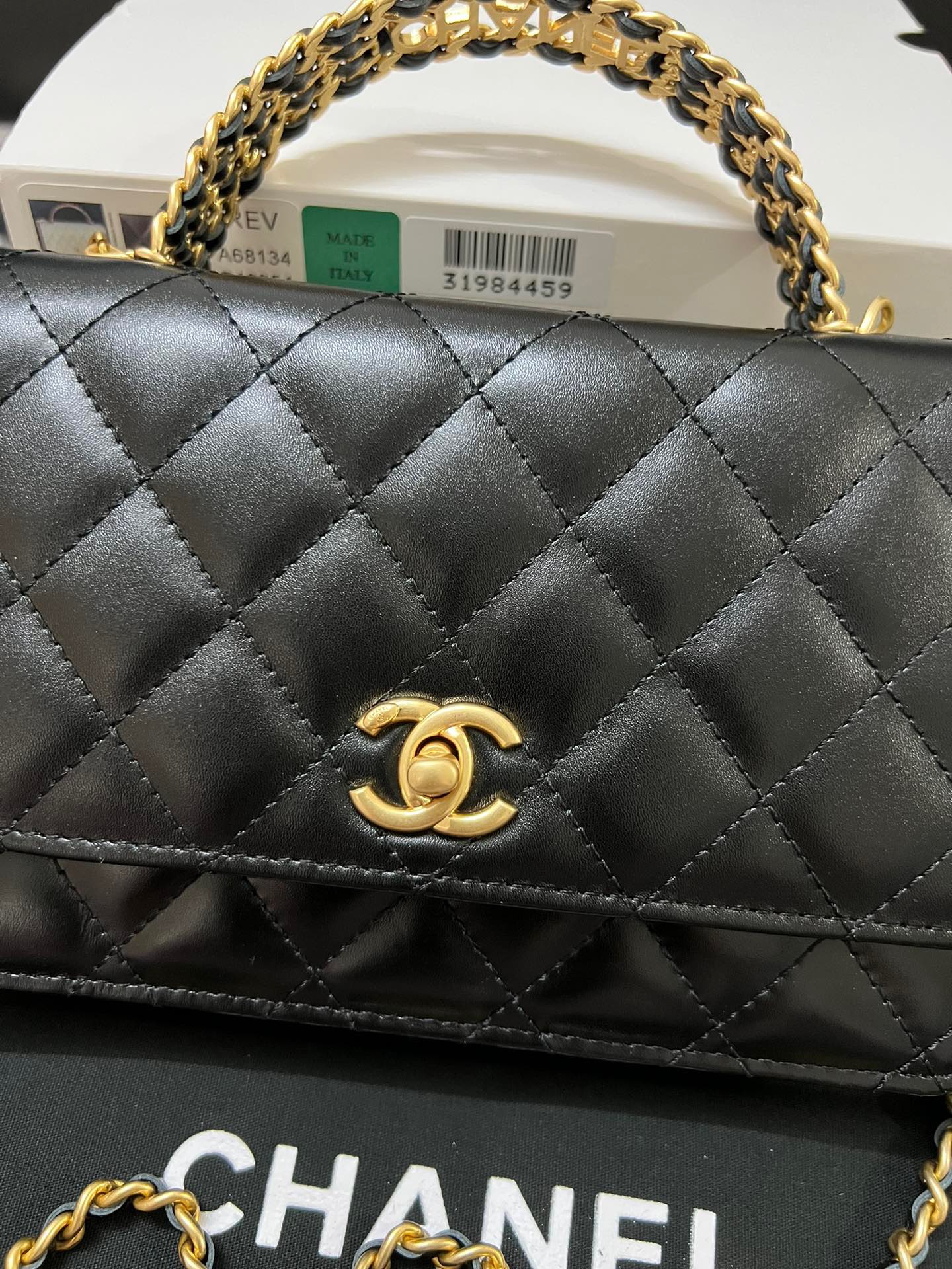 Wallet On Chain With Signature Handle. Authentic quality luxury bag crafted in genuine leather comes with authenticity card, dust bag and gift bag. Elevate your style with this wallet  – where timeless design meets practical elegance.