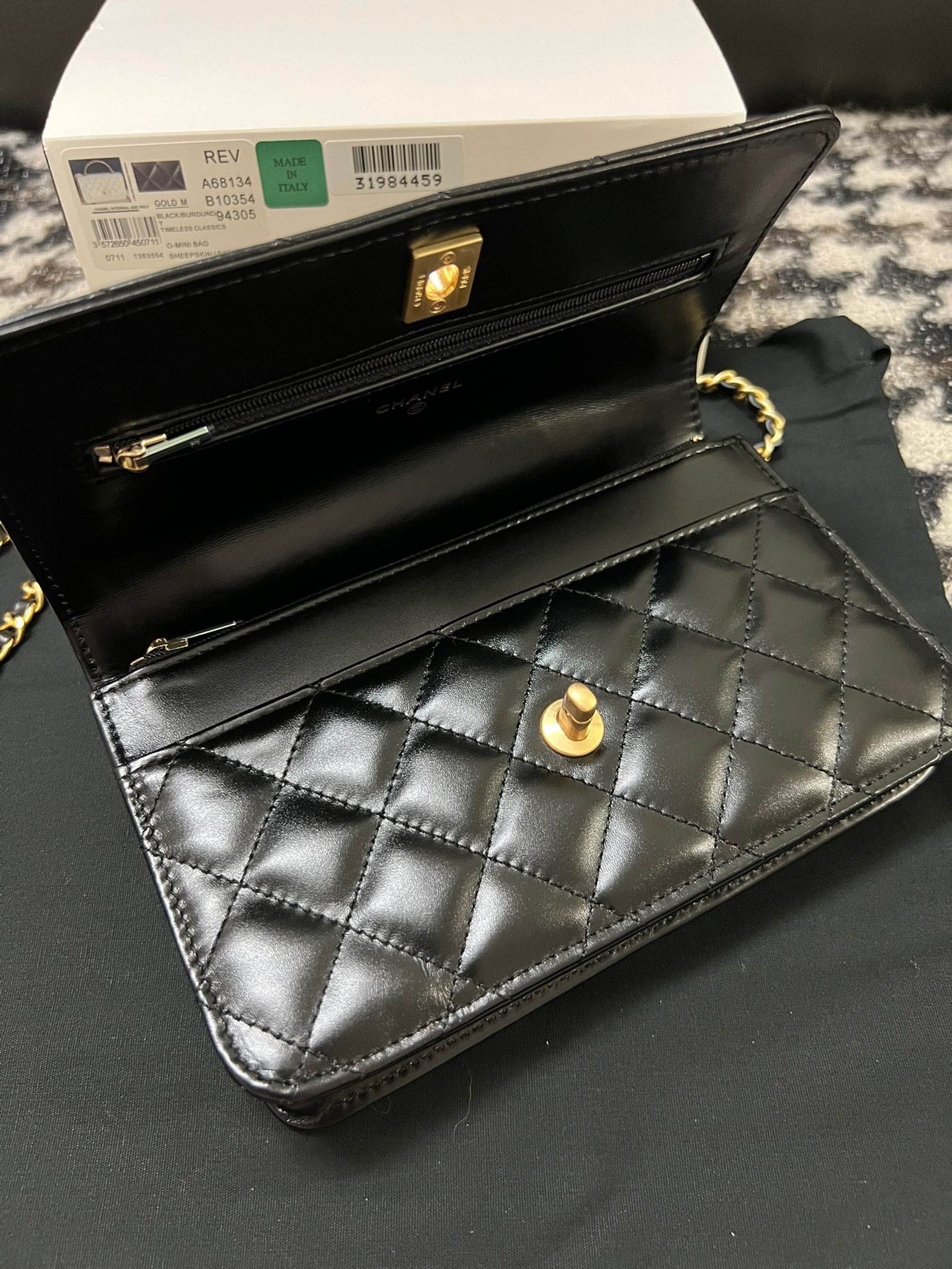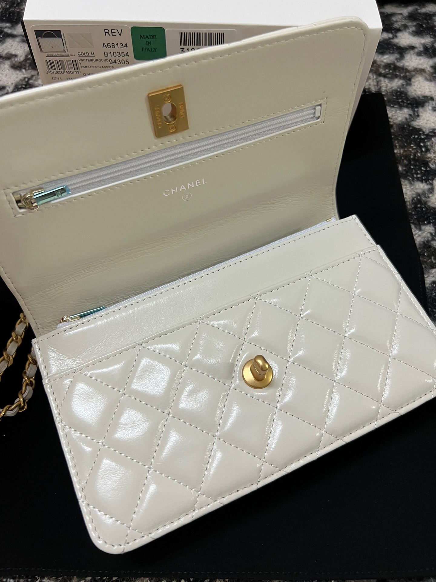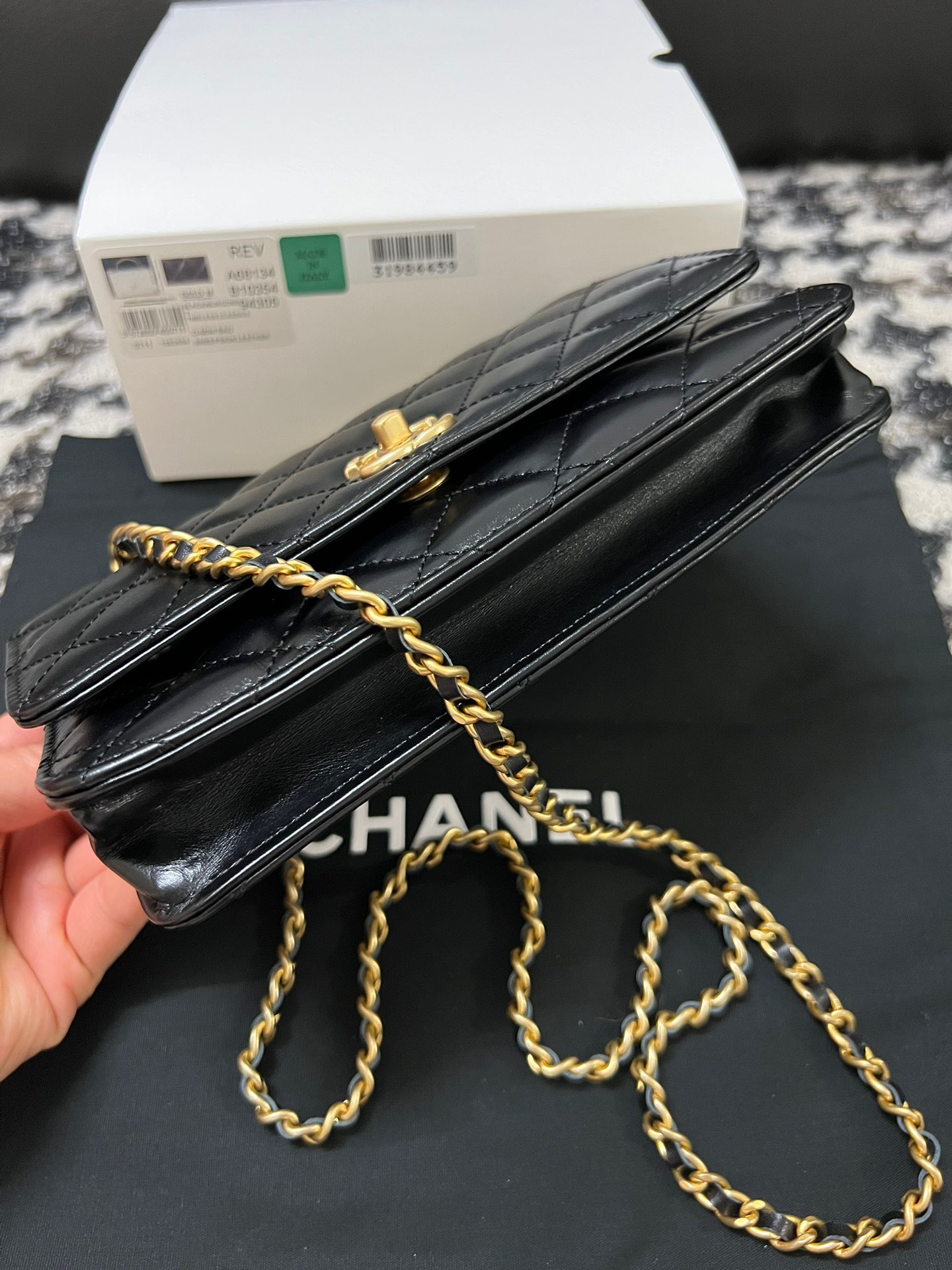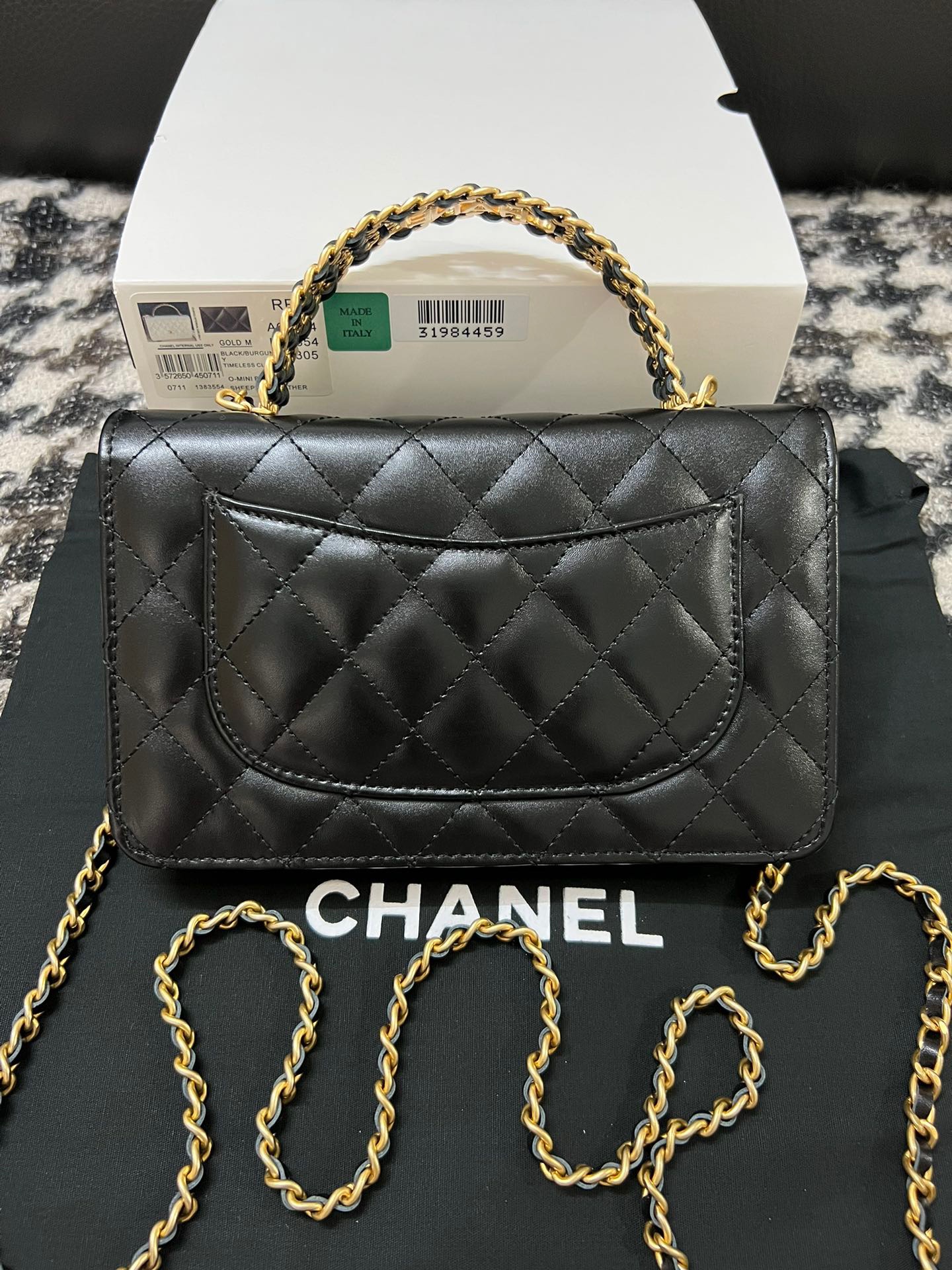 Wallet On Chain With Signature Handle. Authentic quality luxury bag crafted in genuine leather comes with authenticity card, dust bag and gift bag. Elevate your style with this wallet  – where timeless design meets practical elegance.