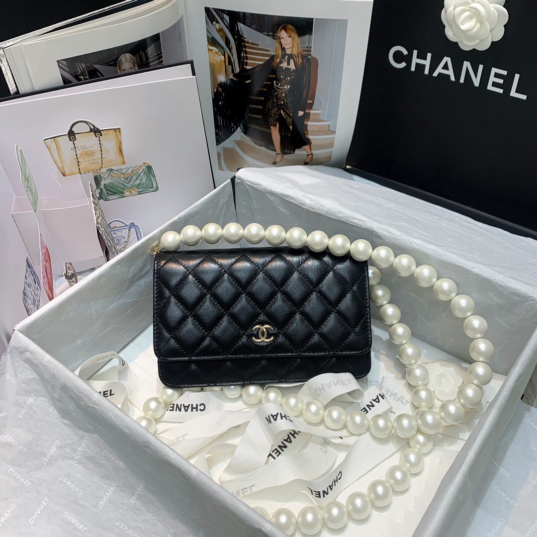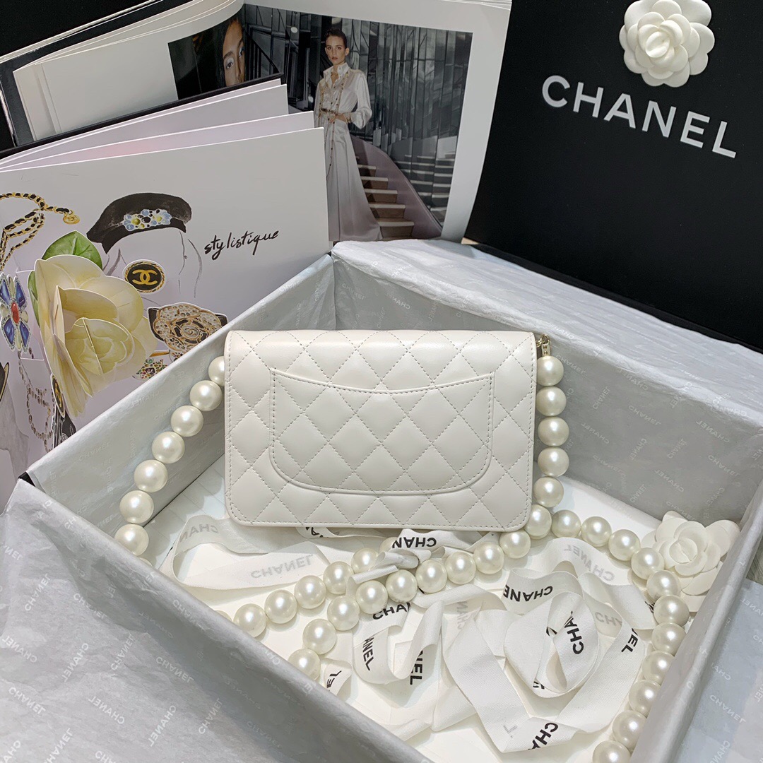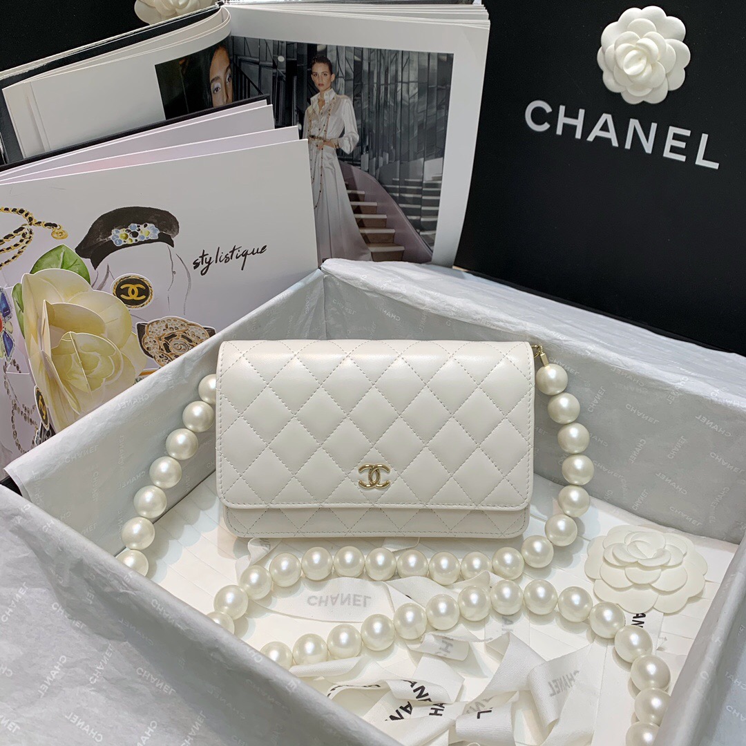 Wallet on Chain (WOC) Pearls. Authentic quality luxury bag crafted in genuine leather comes with authenticity card, dust bag and gift bag. The epitome of timeless elegance and versatile sophistication.