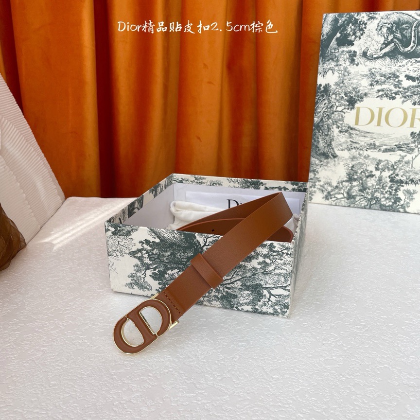 The 30 Montaigne belt is a timeless staple. Crafted in smooth brown calfskin with a gold CD buckle, it adds effortless elegance to jeans, skirts, or dresses. A true classic.