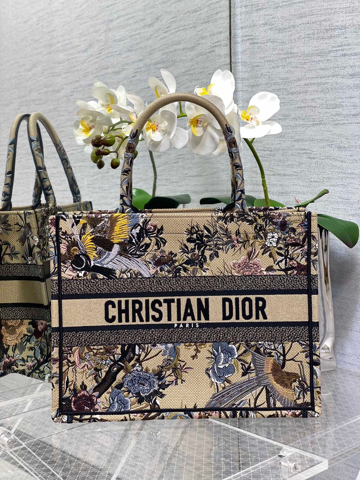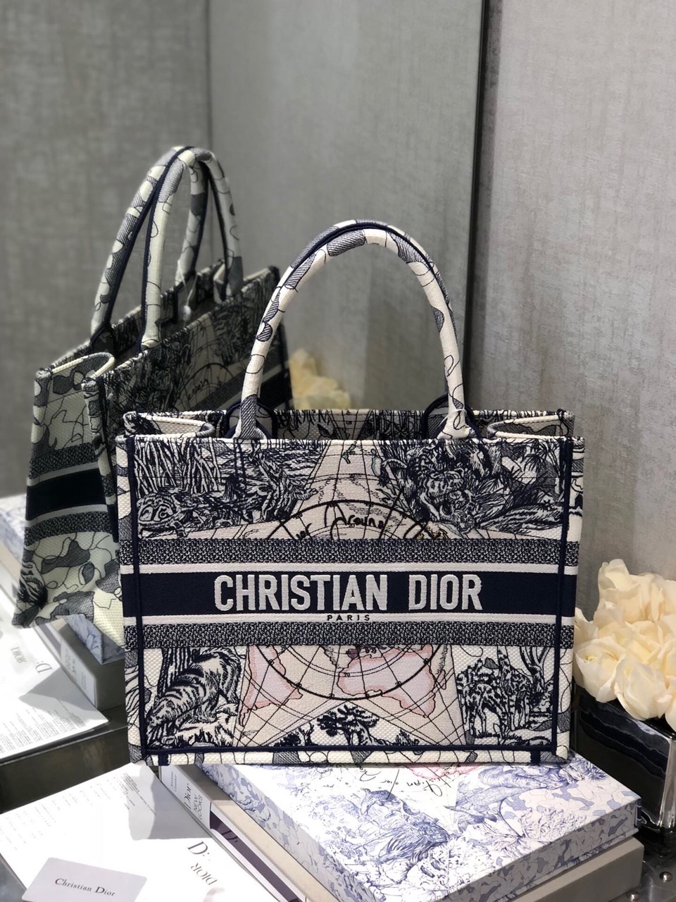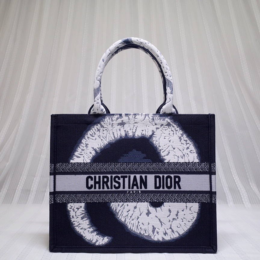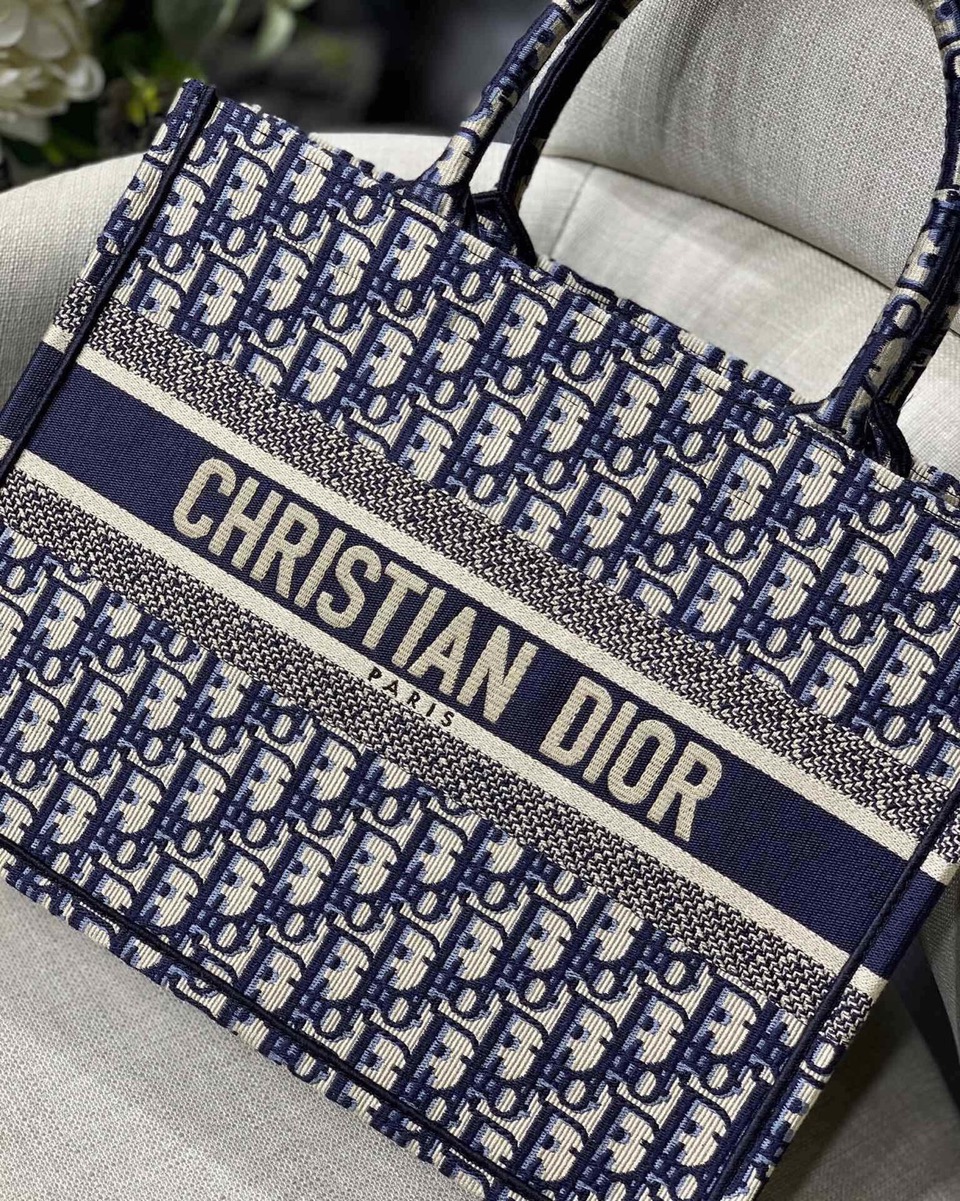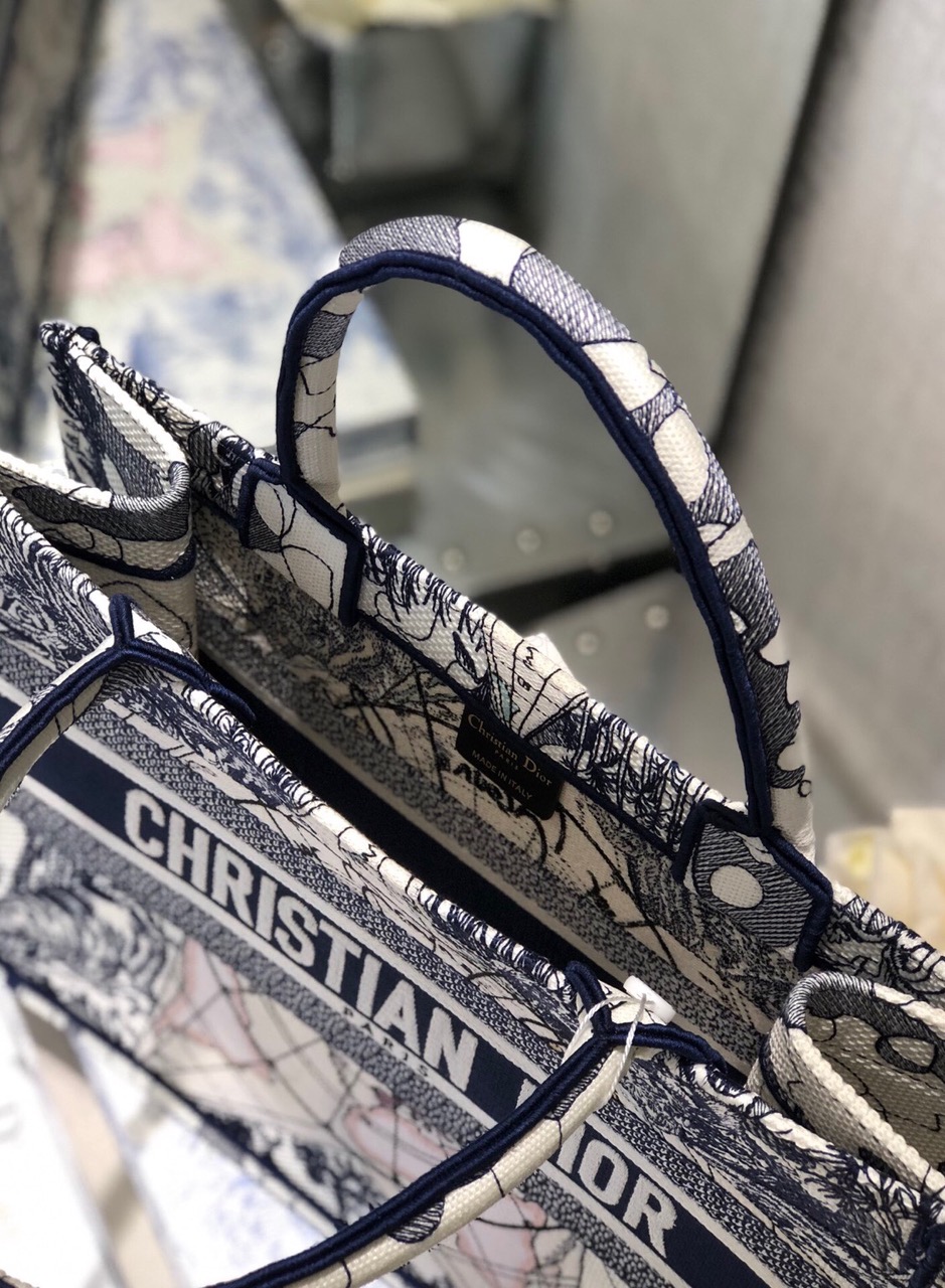 The Book Tote is a chic, small-sized carryall featuring intricate embroidery and the iconic ‘Christian *ior’ emblem. Perfectly crafted, it’s an elegant, versatile addition to any wardrobe.