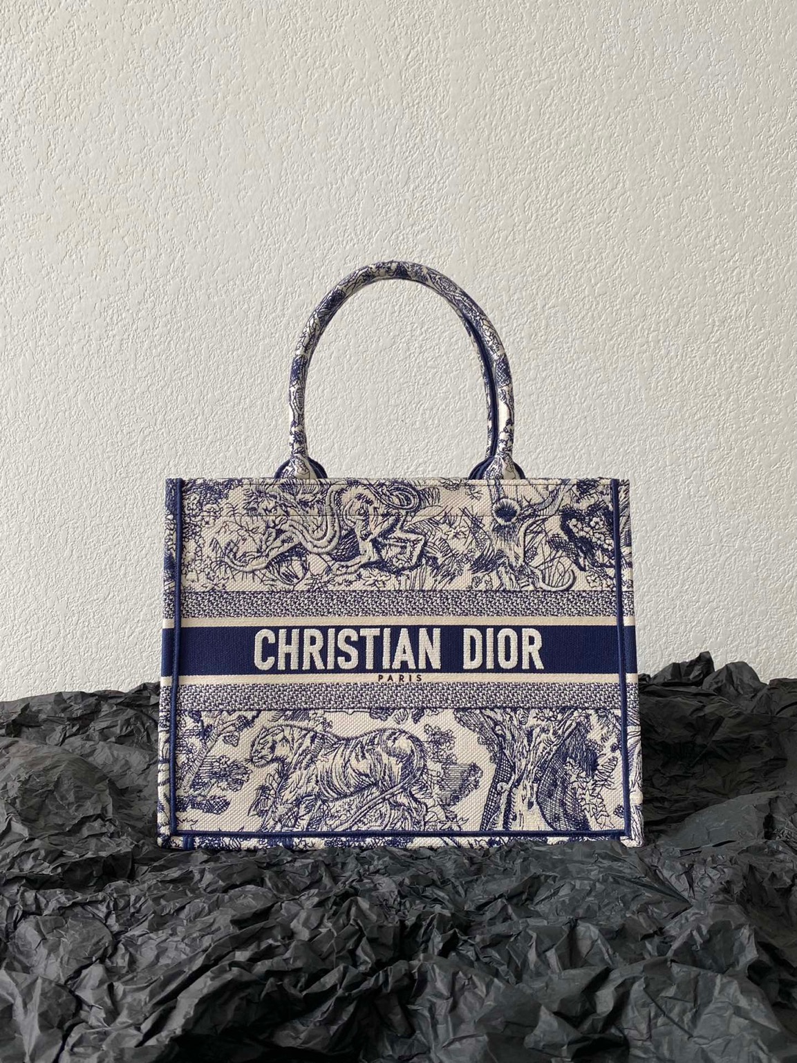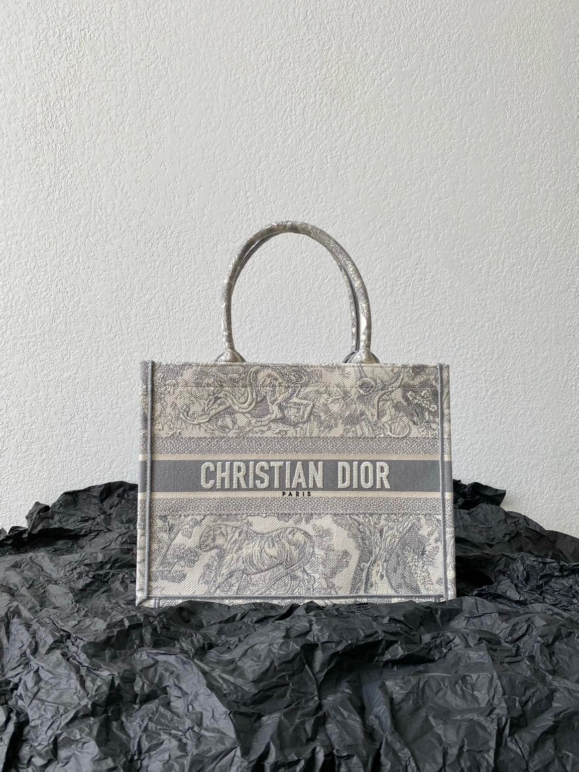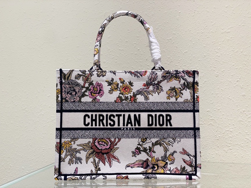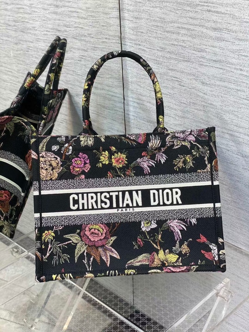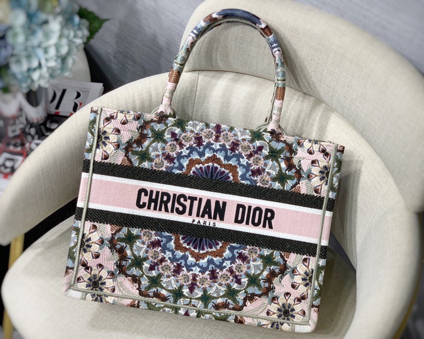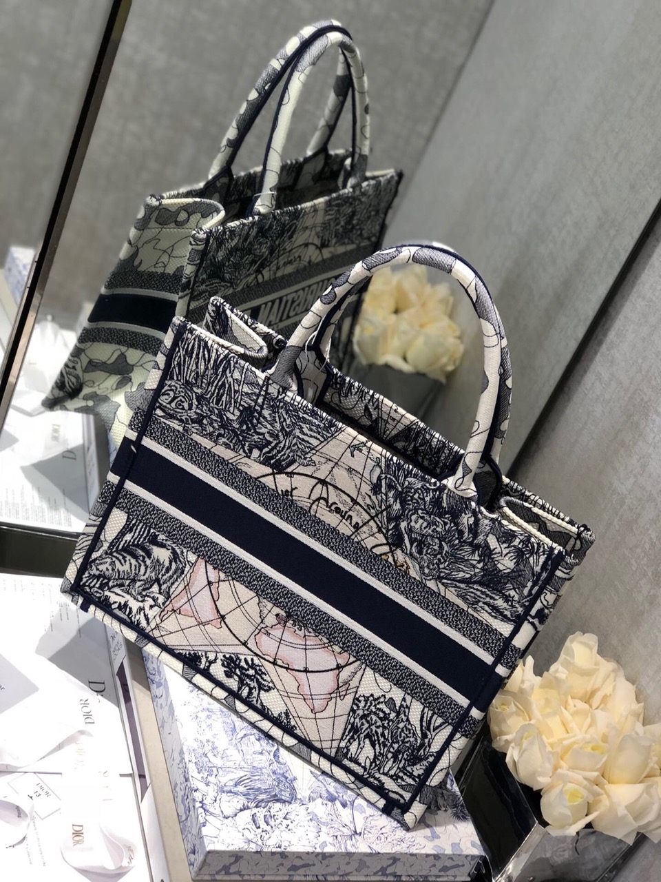 The Book Tote is a chic, small-sized carryall featuring intricate embroidery and the iconic ‘Christian *ior’ emblem. Perfectly crafted, it’s an elegant, versatile addition to any wardrobe.