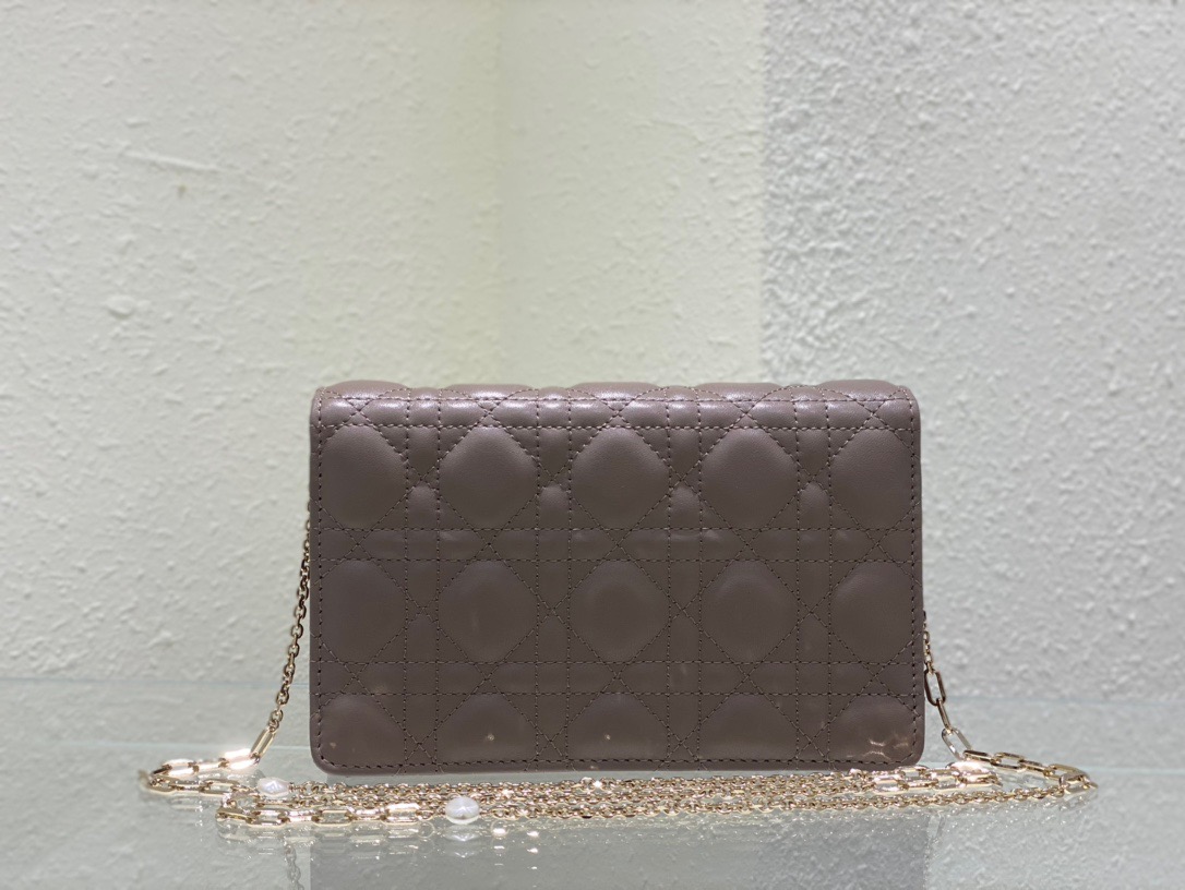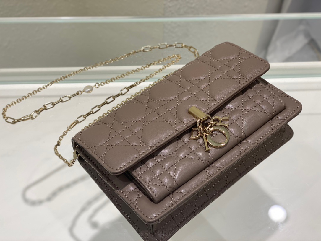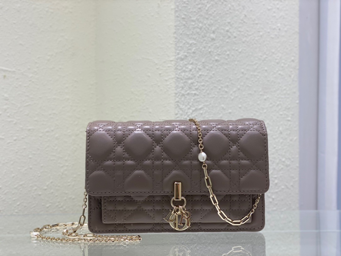 Lady Dior Chain Pouch. Authentic quality luxury bag crafted in genuine leather comes with authenticity card, dust bag and gift bag. Compact, Spacious, and Timeless.