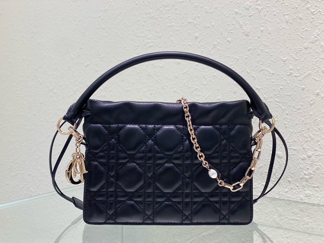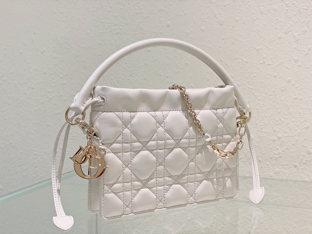 Lady Dior Top Handle Drawstring Mini Bag. Authentic quality luxury bag crafted in genuine leather comes with authenticity card, dust bag and gift bag. Embrace Timeless Sophistication.