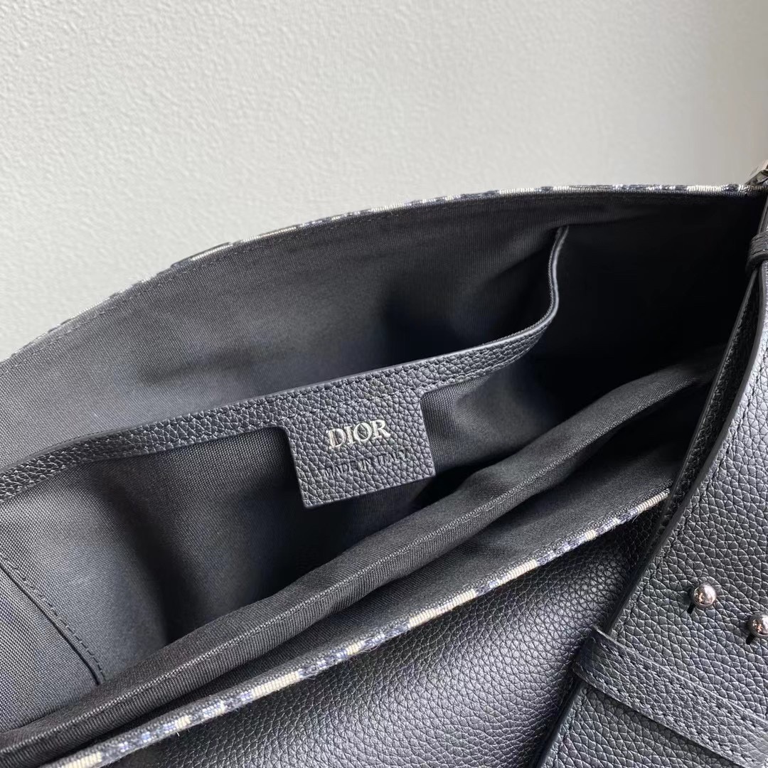 Introducing the Saddle messenger bag, an understated yet sophisticated choice with a timeless silhouette. Meticulously crafted from high-quality black grained calfskin, this splendid accessory showcases a flap adorned with iconic Saddle lines, beautifully complemented by a tasteful ‘*IOR’ signature. Its versatile adjustable shoulder strap enables effortless wear, whether over the shoulder or crossbody. Inside, the spacious interior presents a practical patch pocket, generously accommodating a 13-inch laptop, important documents, and even a tablet. With its seamless blend of style and functionality, this bag is an ideal companion for your everyday needs.