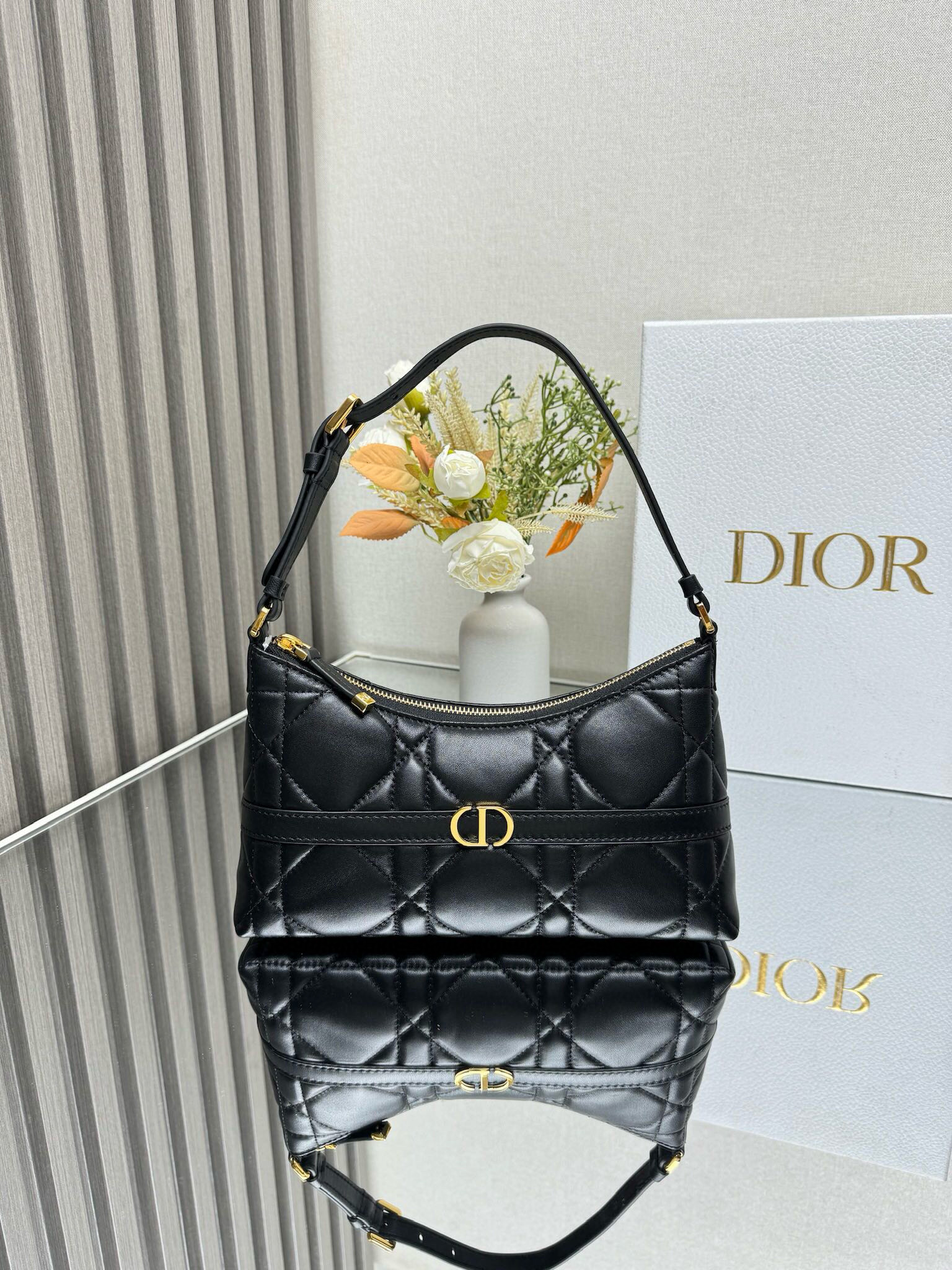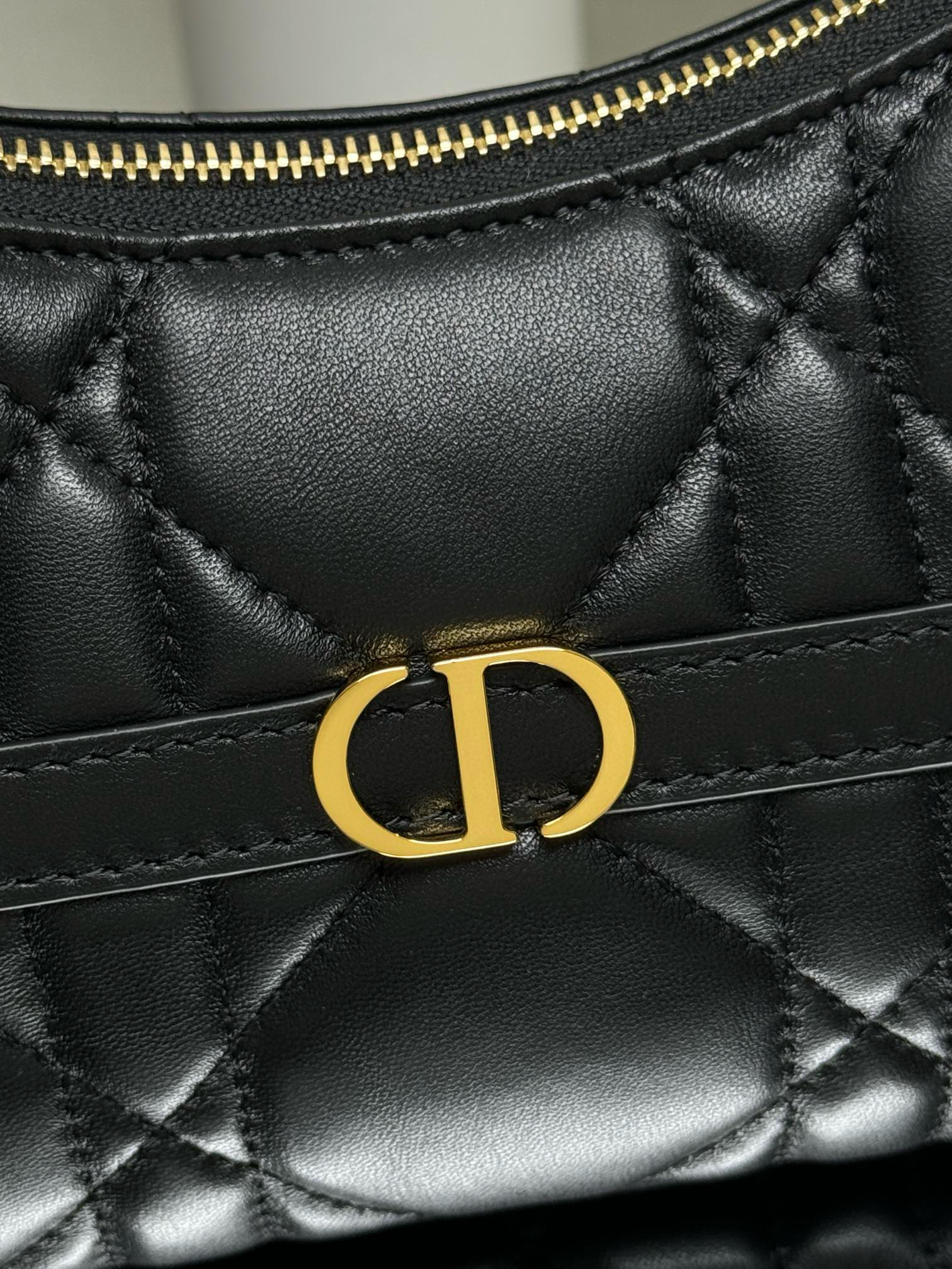 The standout tonal strap, adorned with an antique gold-finish CD signature, adds a sculptural touch to its streamlined silhouette. A secure zip compartment keeps your essentials close, while the adjustable leather strap offers effortless over-the-shoulder chic.