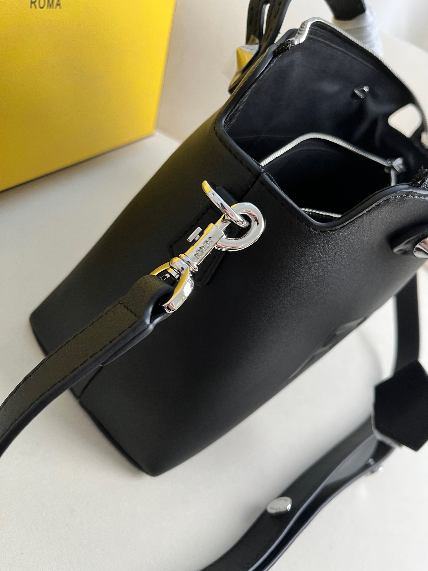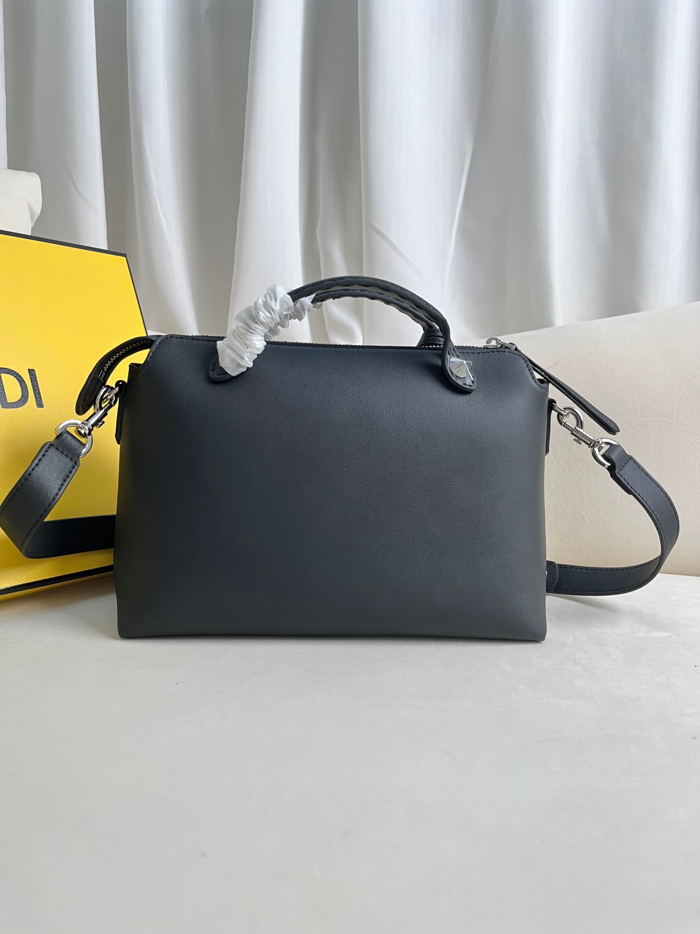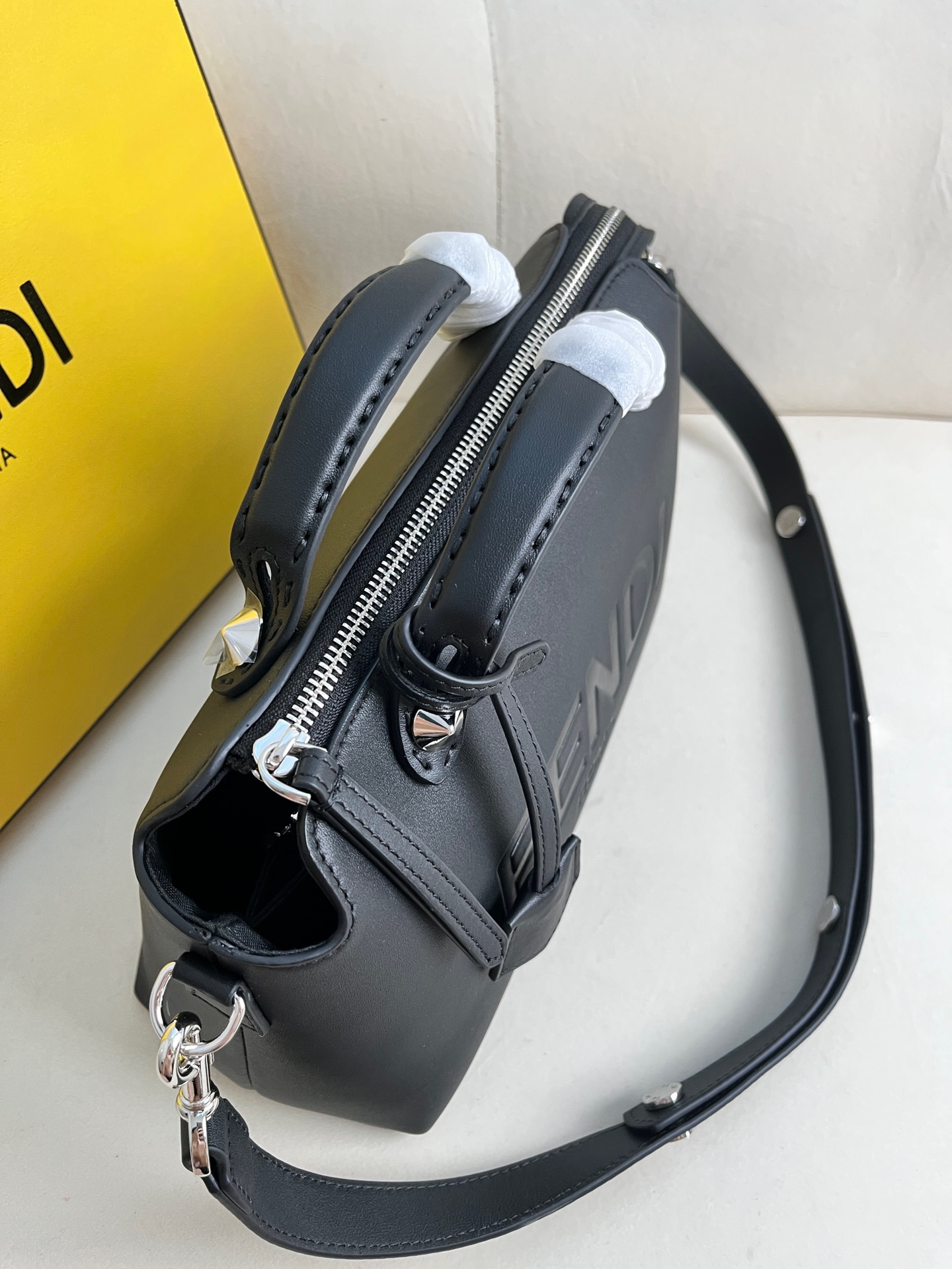 Introducing the medium-sized iconic By The Way Boston bag, expertly crafted from luxurious leather and adorned with the prestigious “*ENDI ROMA” hot-stamp detail, elegantly sealed with a secure zipper closure. Versatility meets style with multiple carrying options, as you can gracefully hold it by the handles, sling it over your shoulder, or even wear it cross-body, thanks to the adjustable and detachable shoulder strap. Elevate your everyday with the By The Way Boston bag, where elegance meets functionality.