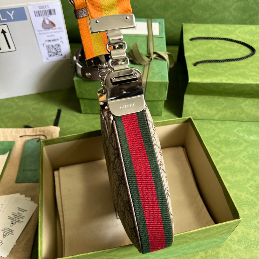 *ucci Love Parade pays homage to the enduring allure of Hollywood glamour by incorporating classic elements from the House’s rich archives. The accessory, characterized by its elegant crescent moon shape, is adorned with a distinctive G shaped hook closure, adding to its unique charm. Crafted from luxurious materials and featuring heritage hardware, this exquisite design exudes a refined and timeless aesthetic, reminiscent of vintage beauty.