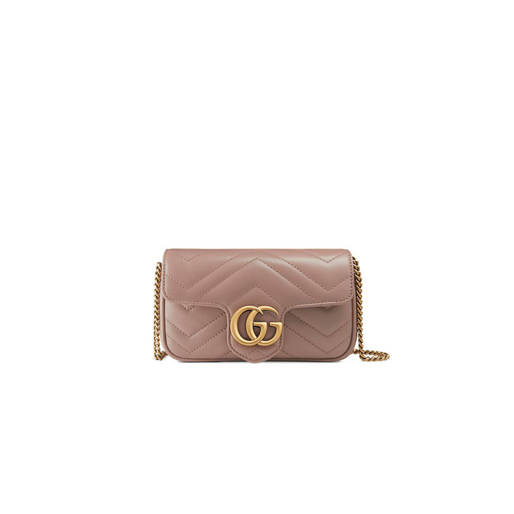 The GG Marmont Matelassé Super Mini Bag blends vintage charm with modern elegance. Its chevron leather, Double G hardware, and versatile strap make it a chic and timeless addition to any wardrobe.