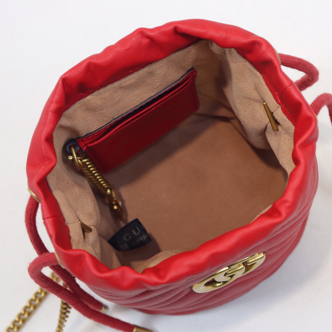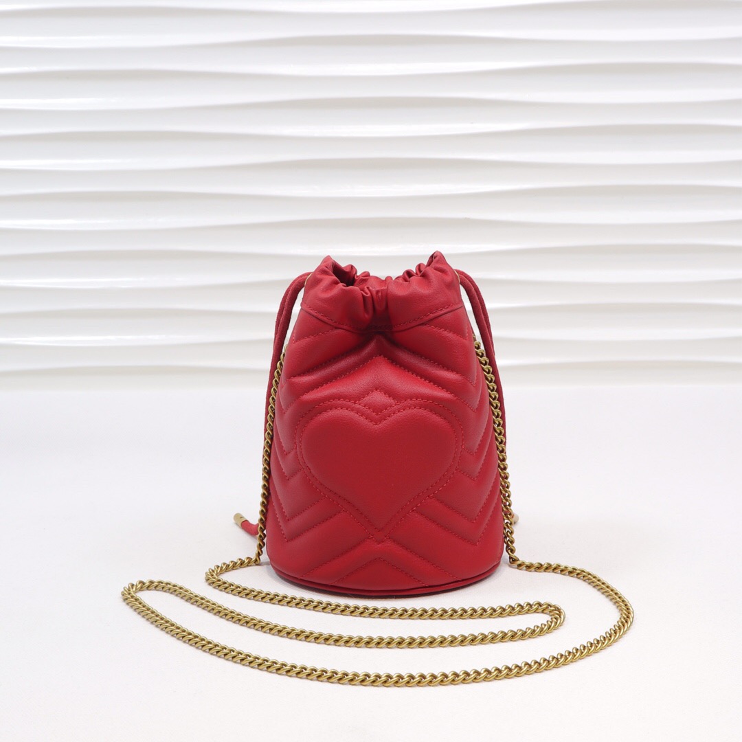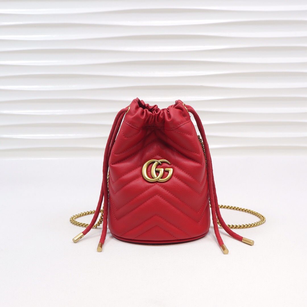 GG Marmont Mini Bucket Bag. Authentic quality luxury bag crafted in genuine leather comes with authenticity card, dust bag and gift bag. Unleash the Vibrant Charm of Timeless Elegance.