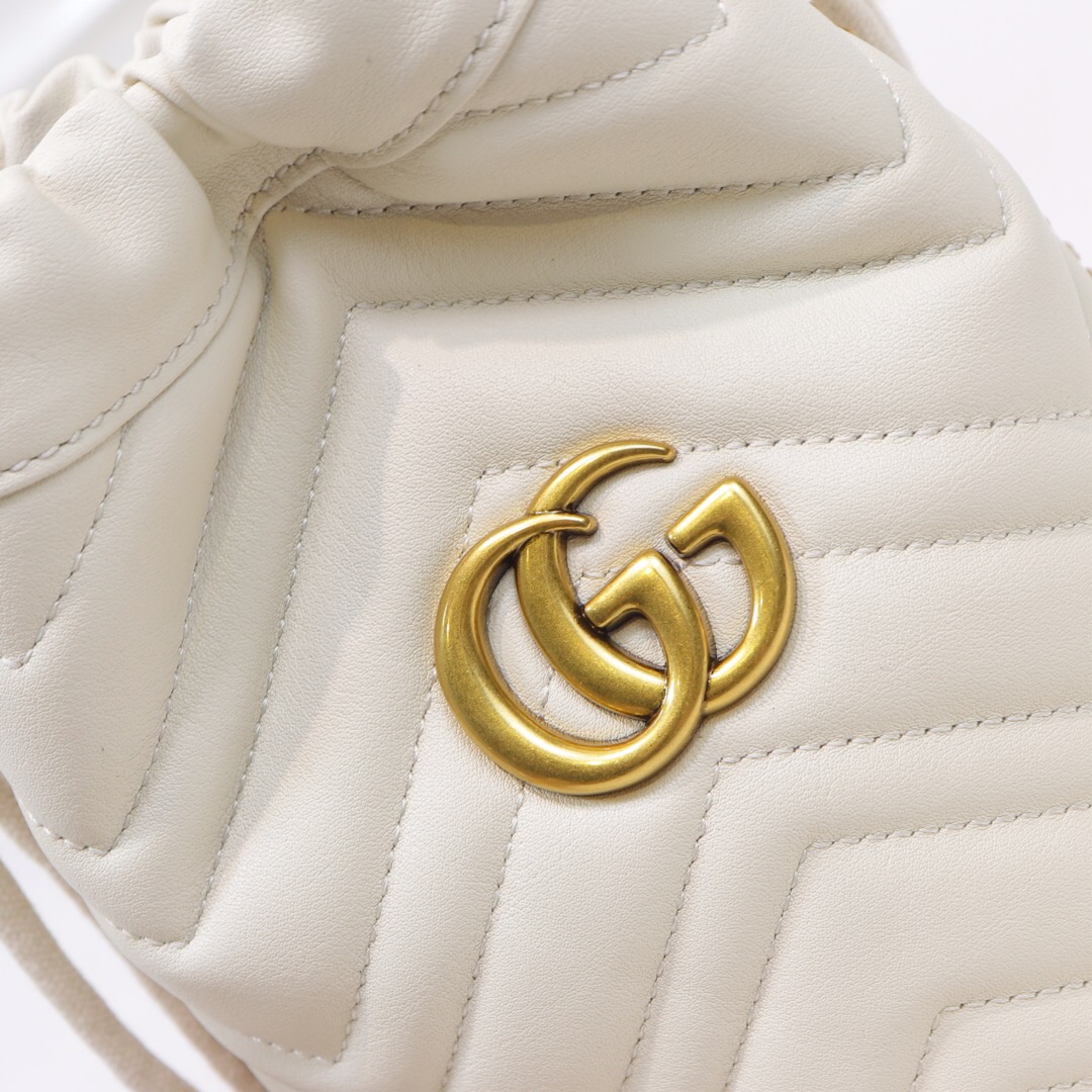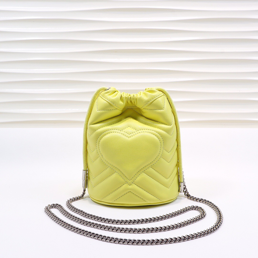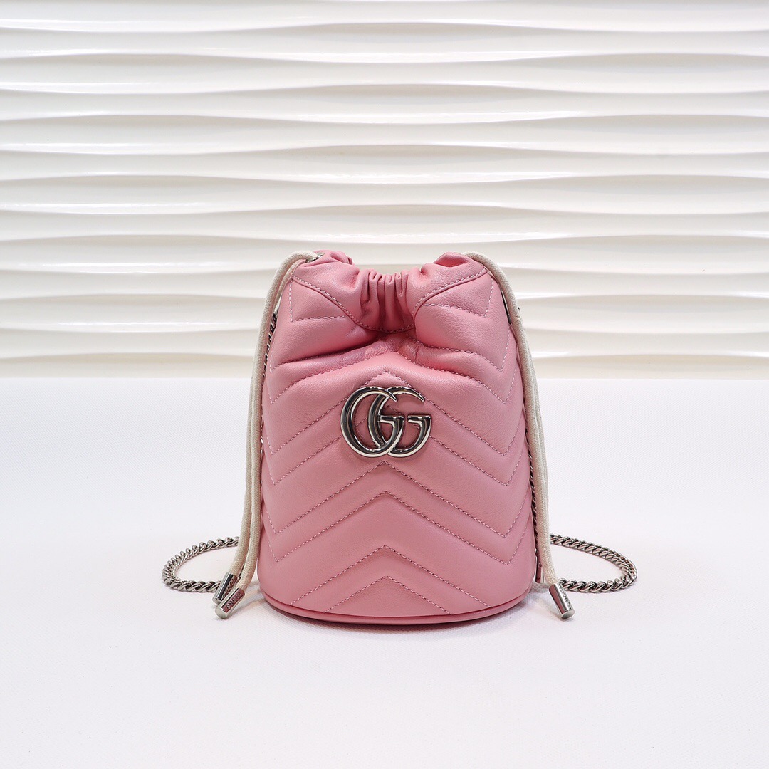 GG Marmont Mini Bucket Bag. Authentic quality luxury bag crafted in genuine leather comes with authenticity card, dust bag and gift bag. Unleash the Vibrant Charm of Timeless Elegance.