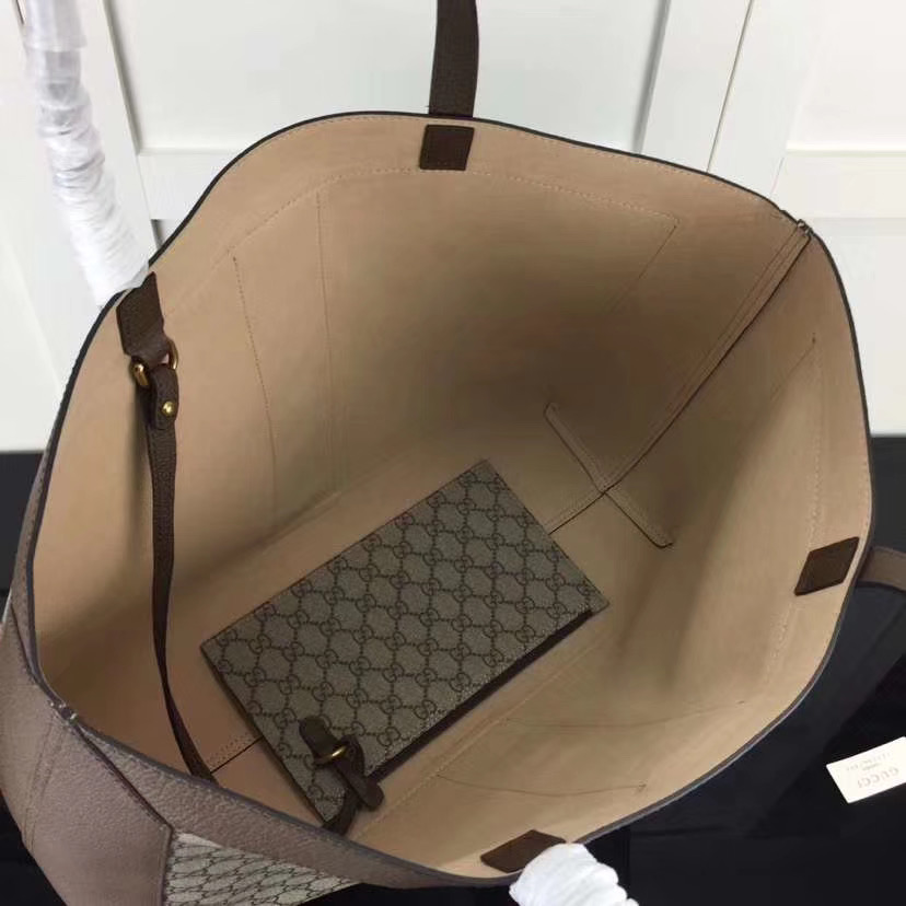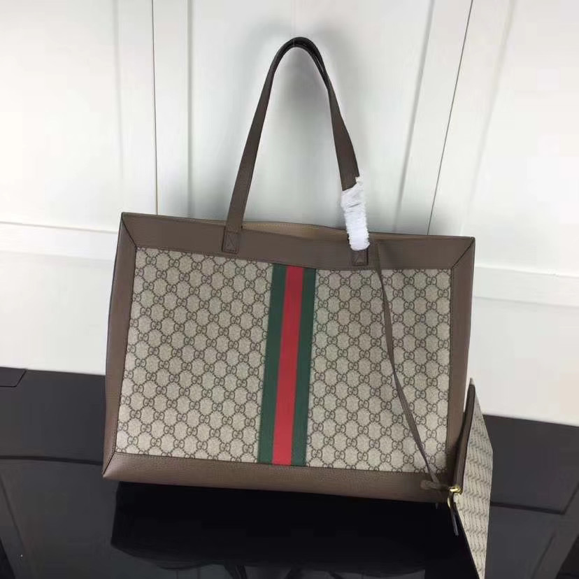 Introducing the elegant Beige/Ebony Soft GG Supreme, exquisitely crafted from a coated microfiber fabric and adorned with luxurious brown leather trim. Complemented by the striking Green and Red Web design, this piece is beautifully enhanced by the antique gold-toned hardware and the iconic Double G emblem. It comes complete with a convenient detachable pouch, secured by a zipper closure. The comfortable double leather handles with a generous 25.0cm drop add a touch of sophistication. Inside, the microfiber lining boasts a delicate suede-like finish, providing an exquisite touch of luxury.