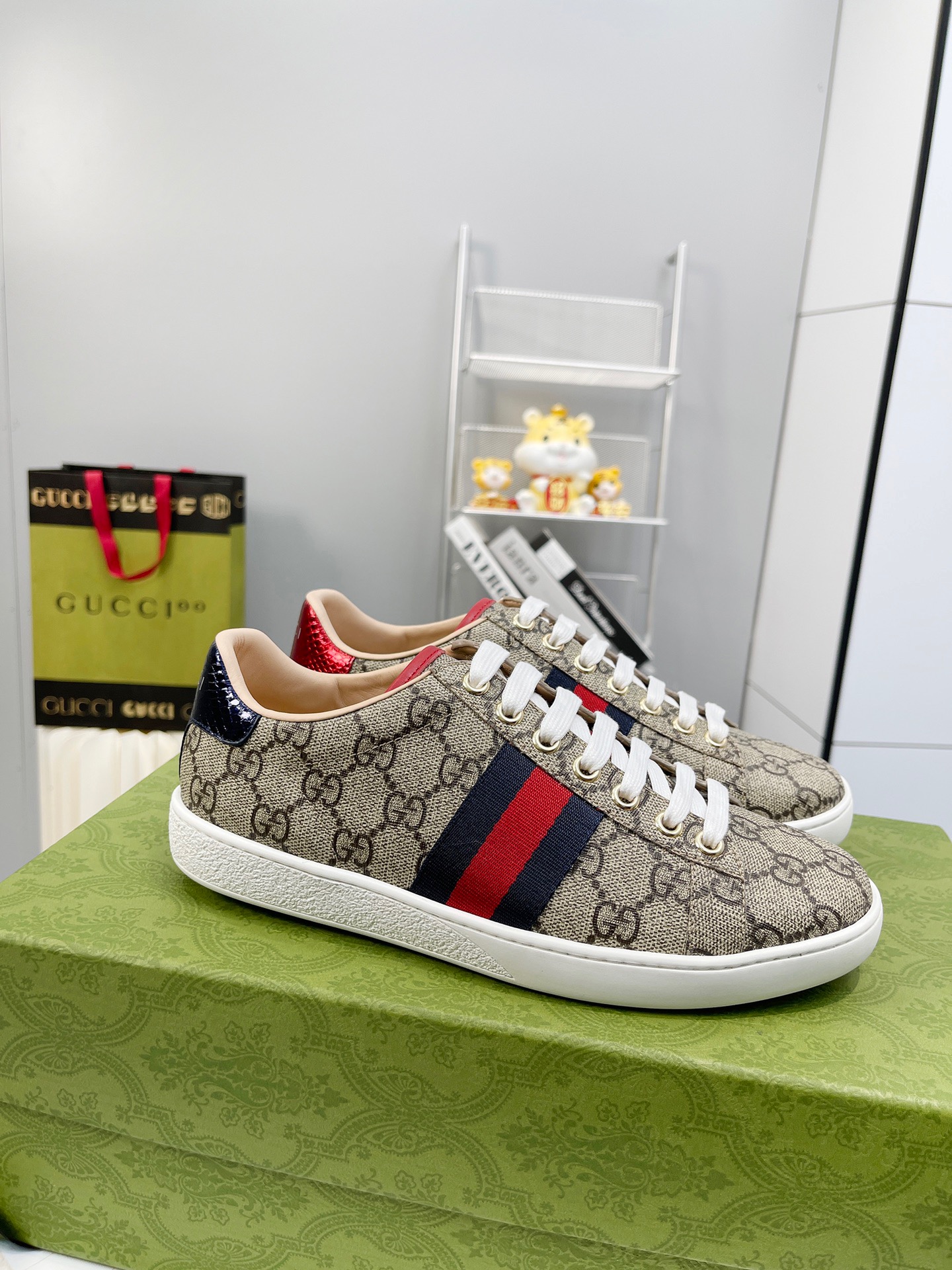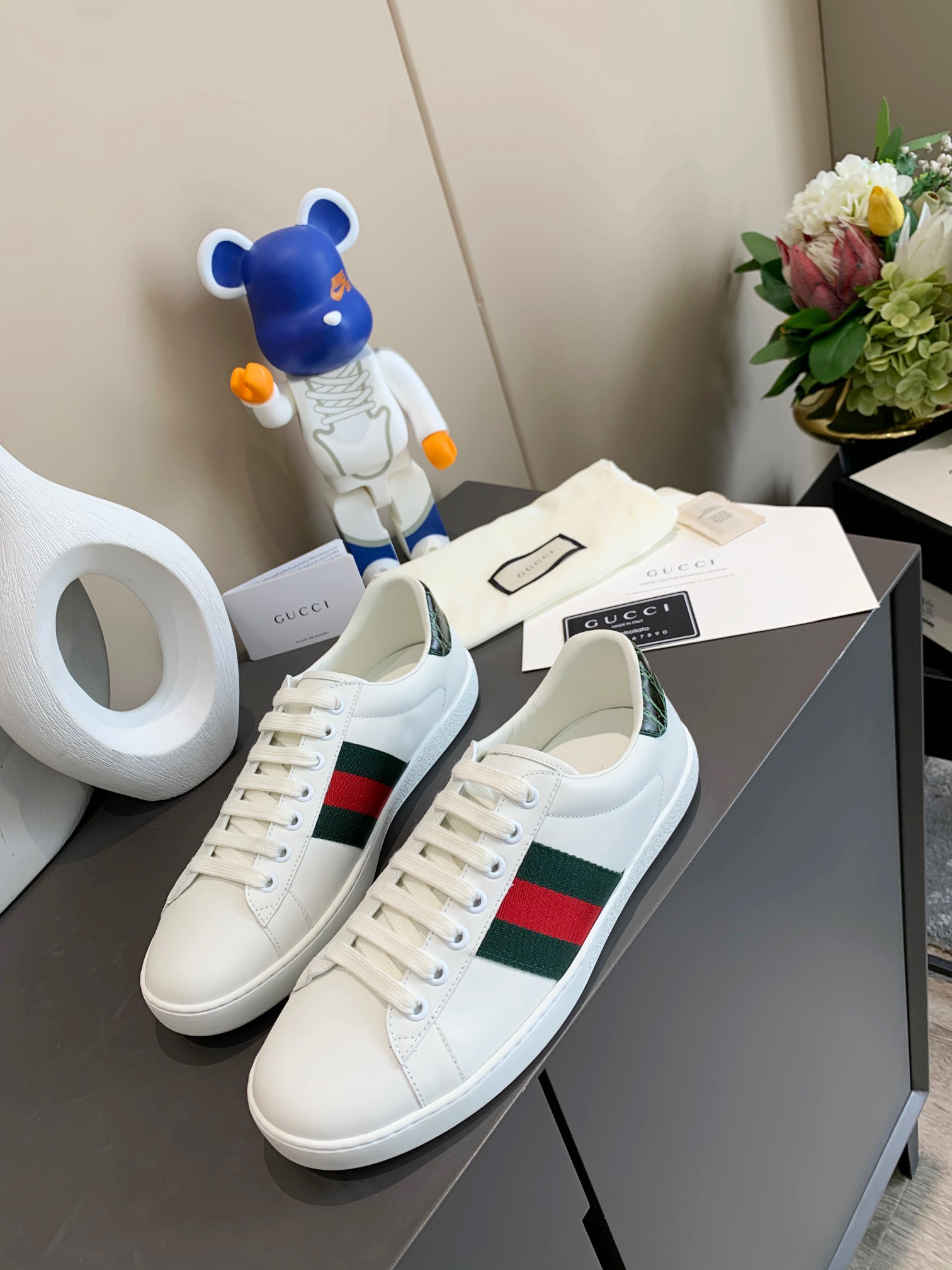 These sleek low-top sneakers combine premium leather craftsmanship with iconic Web detailing, offering a perfect blend of comfort and timeless style for everyday wear.