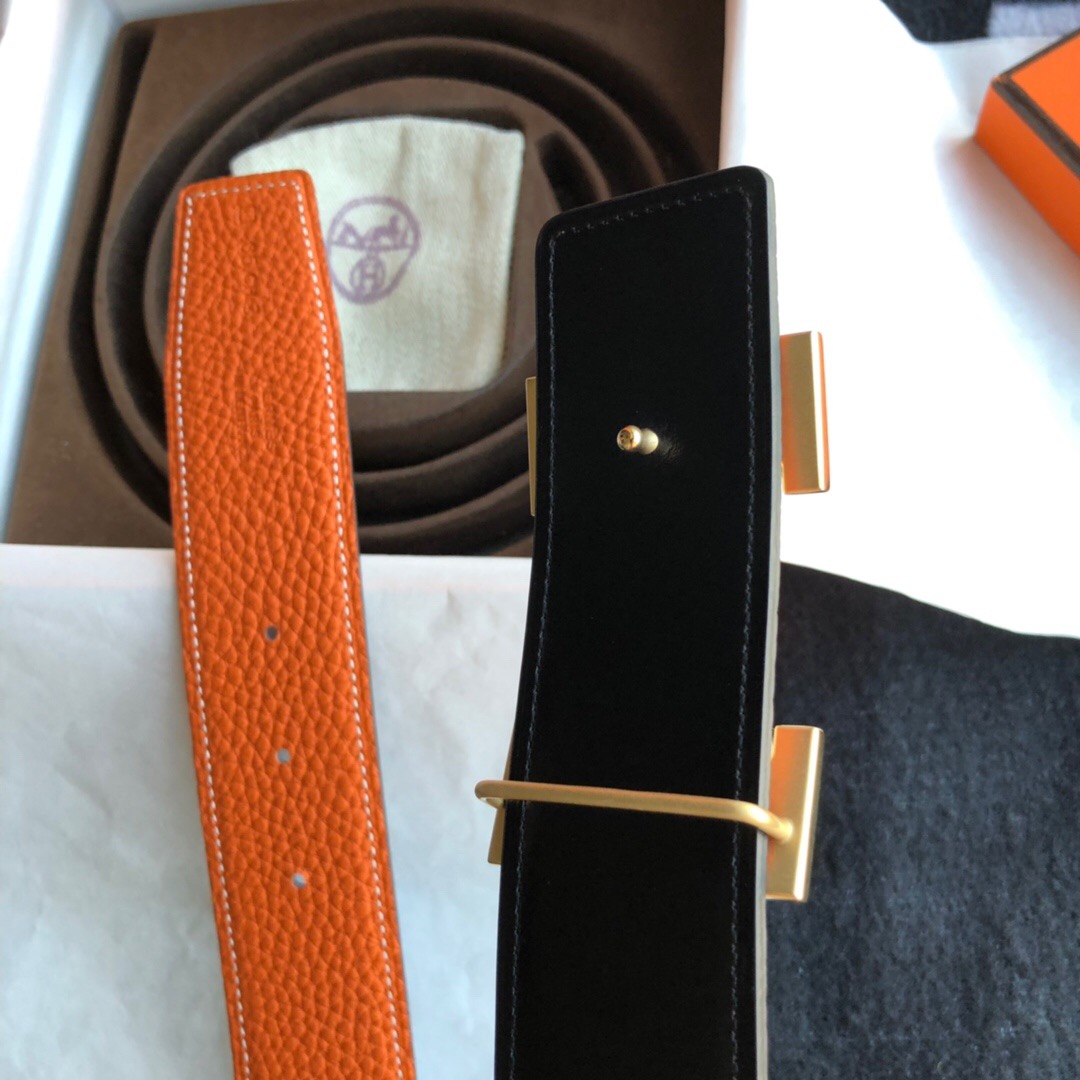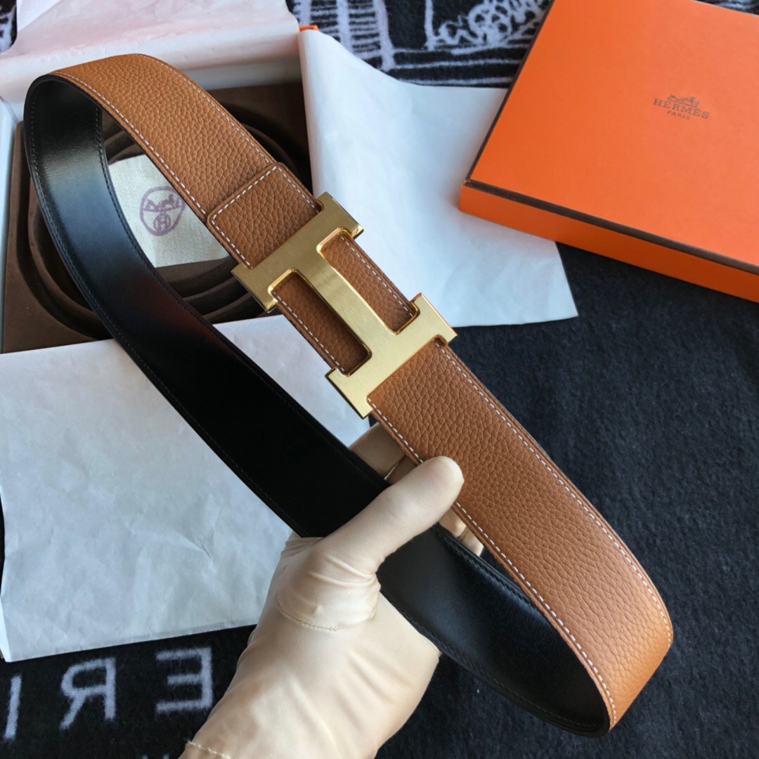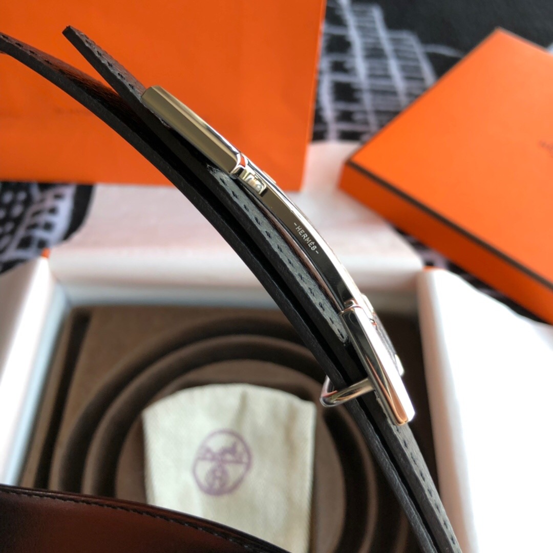 Buckle in Permabrass plated metal & reversible leather strap in Epsom calfskin.