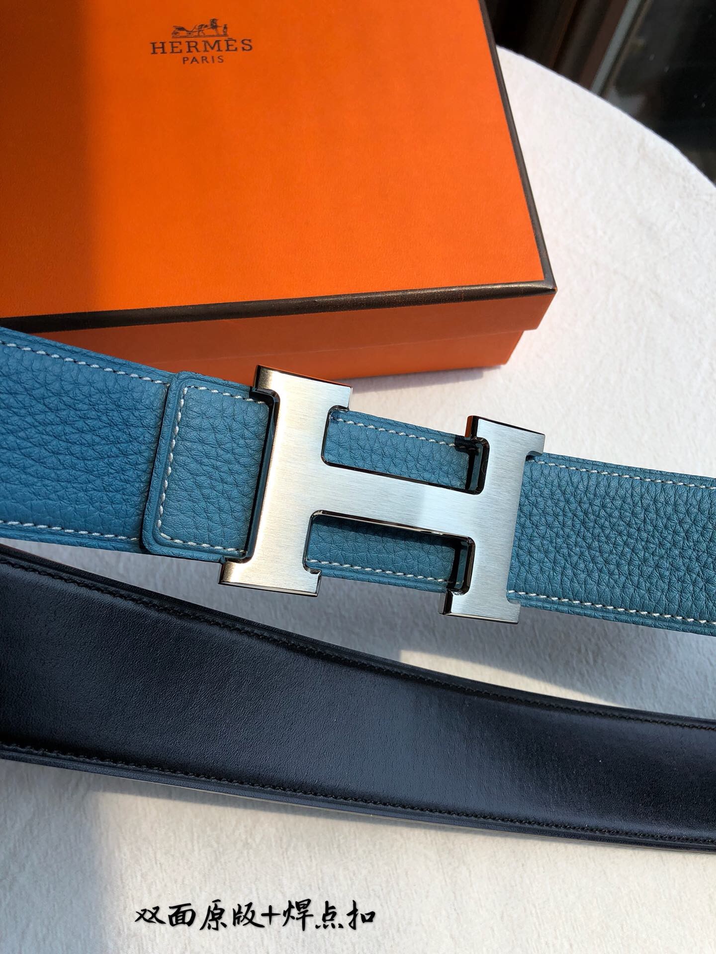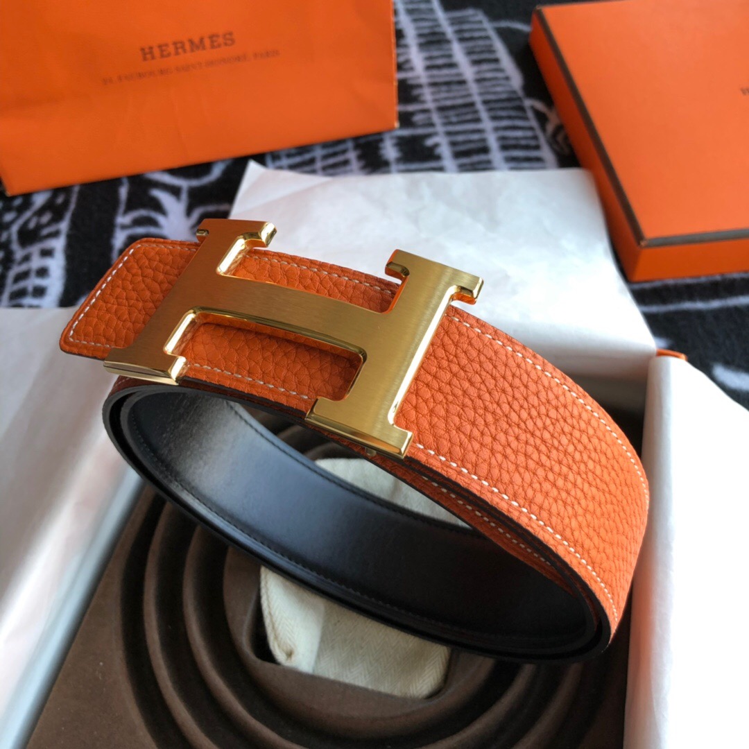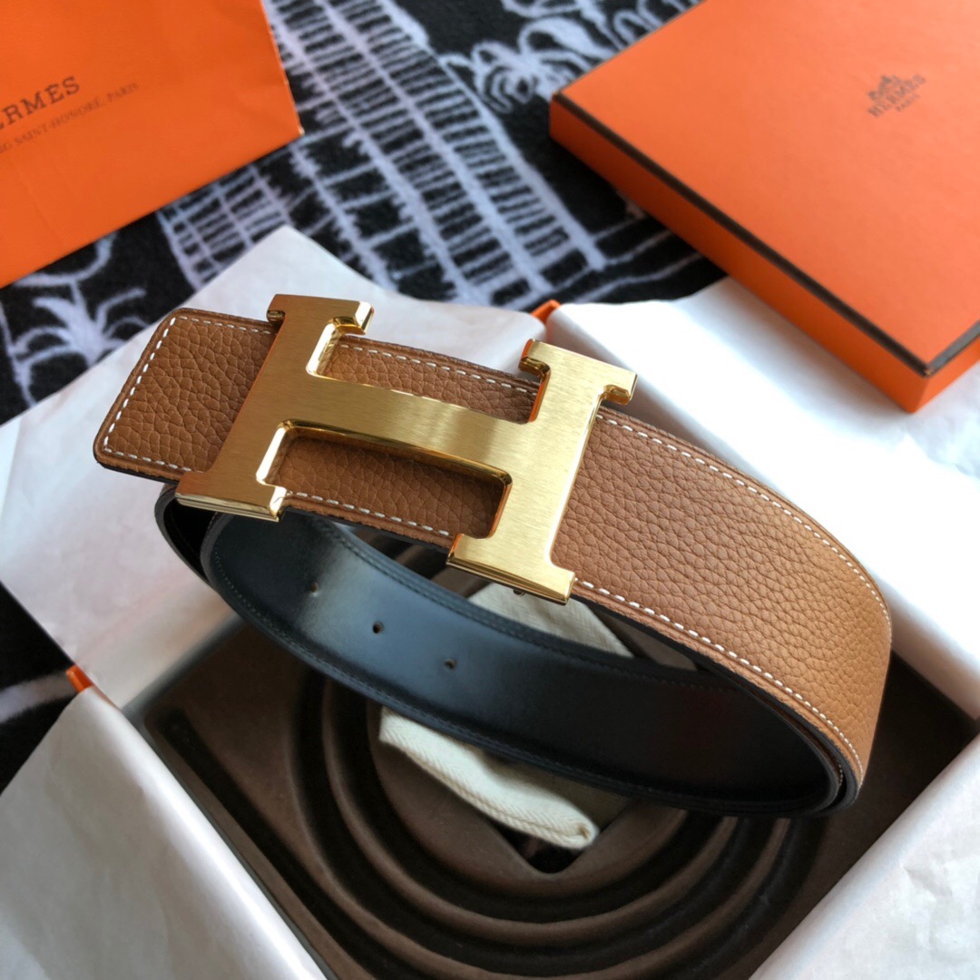 Buckle in Permabrass plated metal & reversible leather strap in Epsom calfskin.