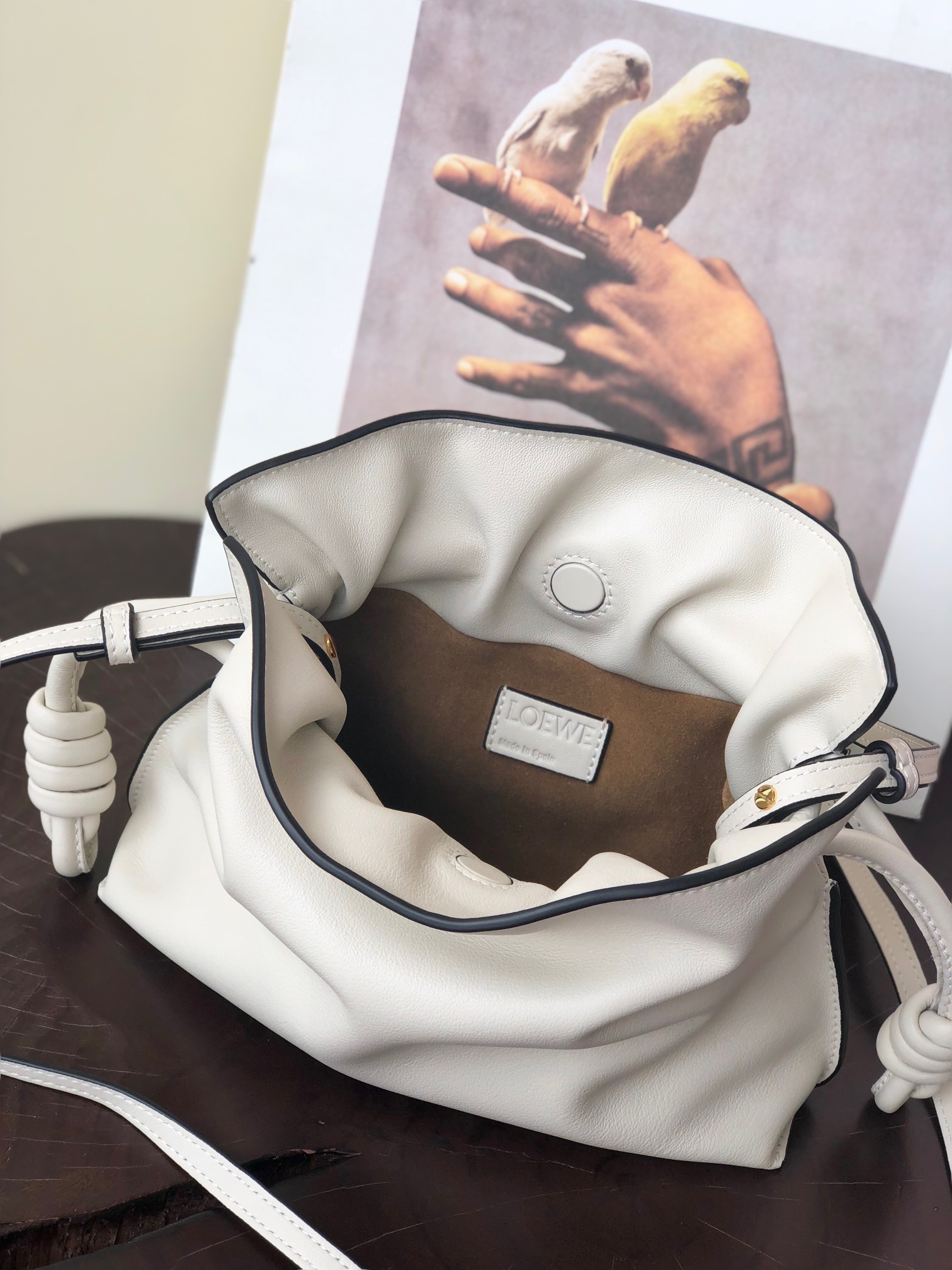 The Mini Flamenco Clutch redefines compact elegance with its nappa calfskin design and iconic coiled knots. Spacious yet sleek, it’s perfect for essentials and versatile for any style—shoulder, crossbody, or hand.