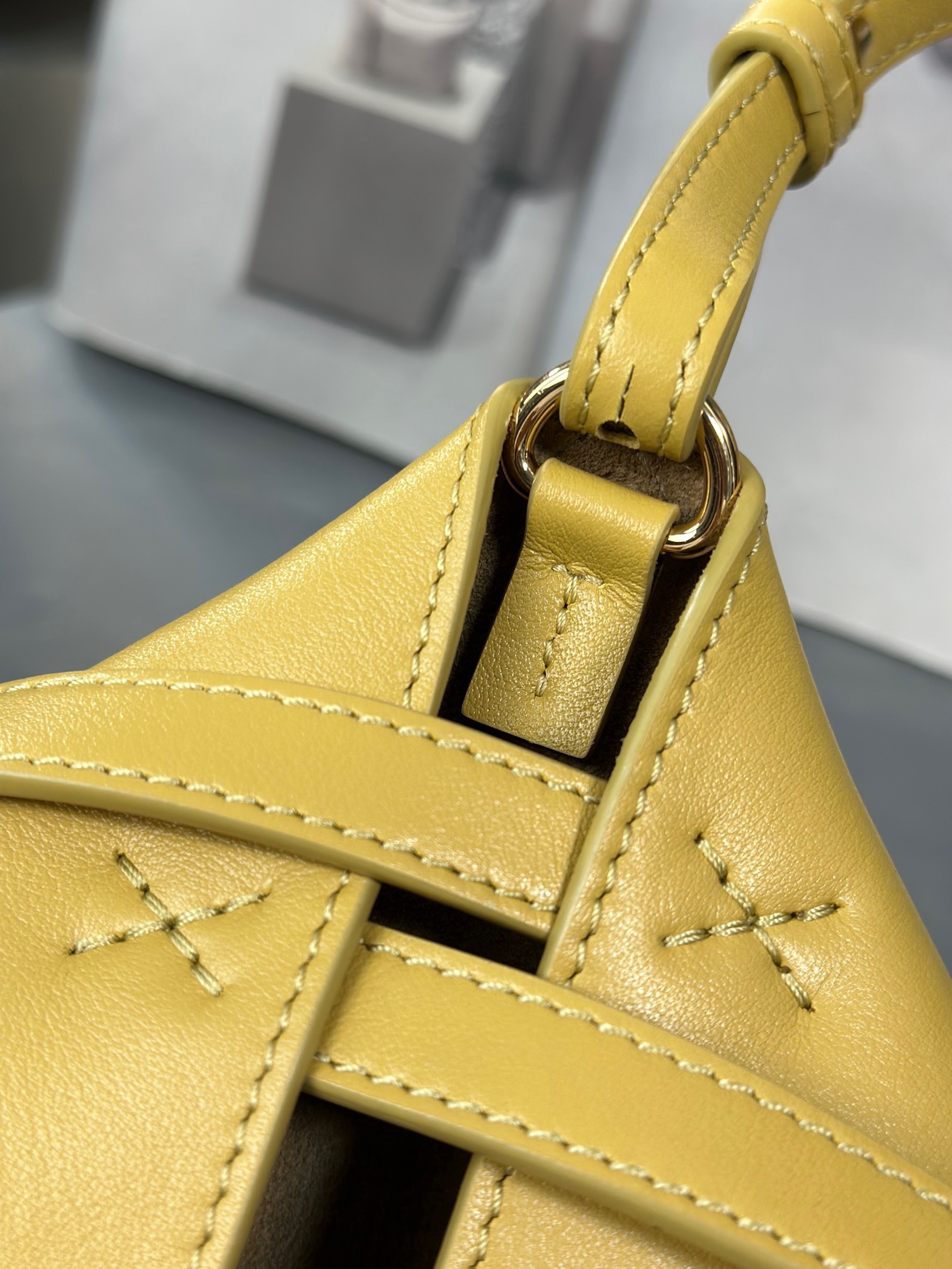 The Puzzle Fold Tote offers a sleek, foldable design with iconic geometric panels, crafted from lightweight shiny calfskin for an elegant, travel-ready finish.