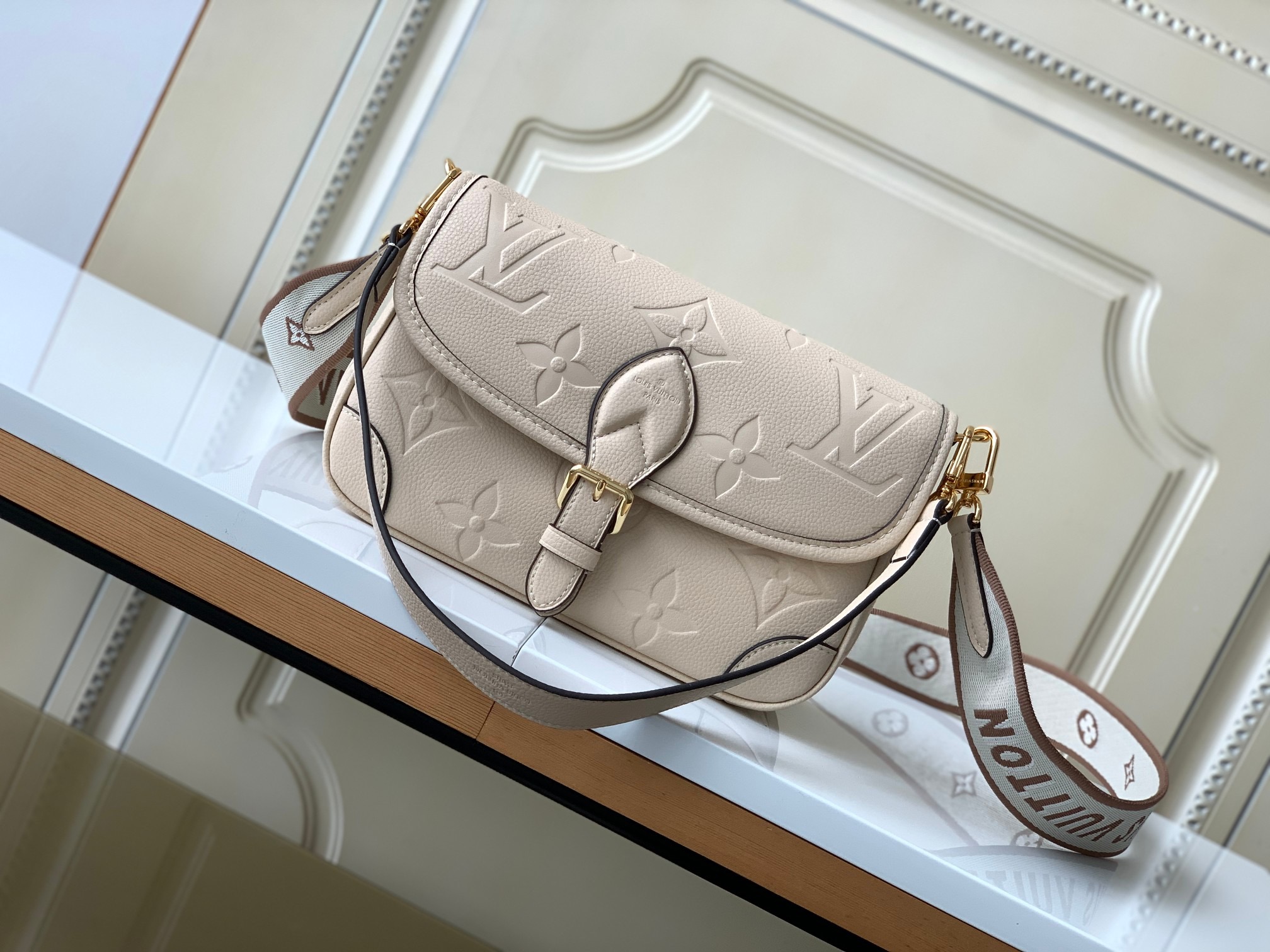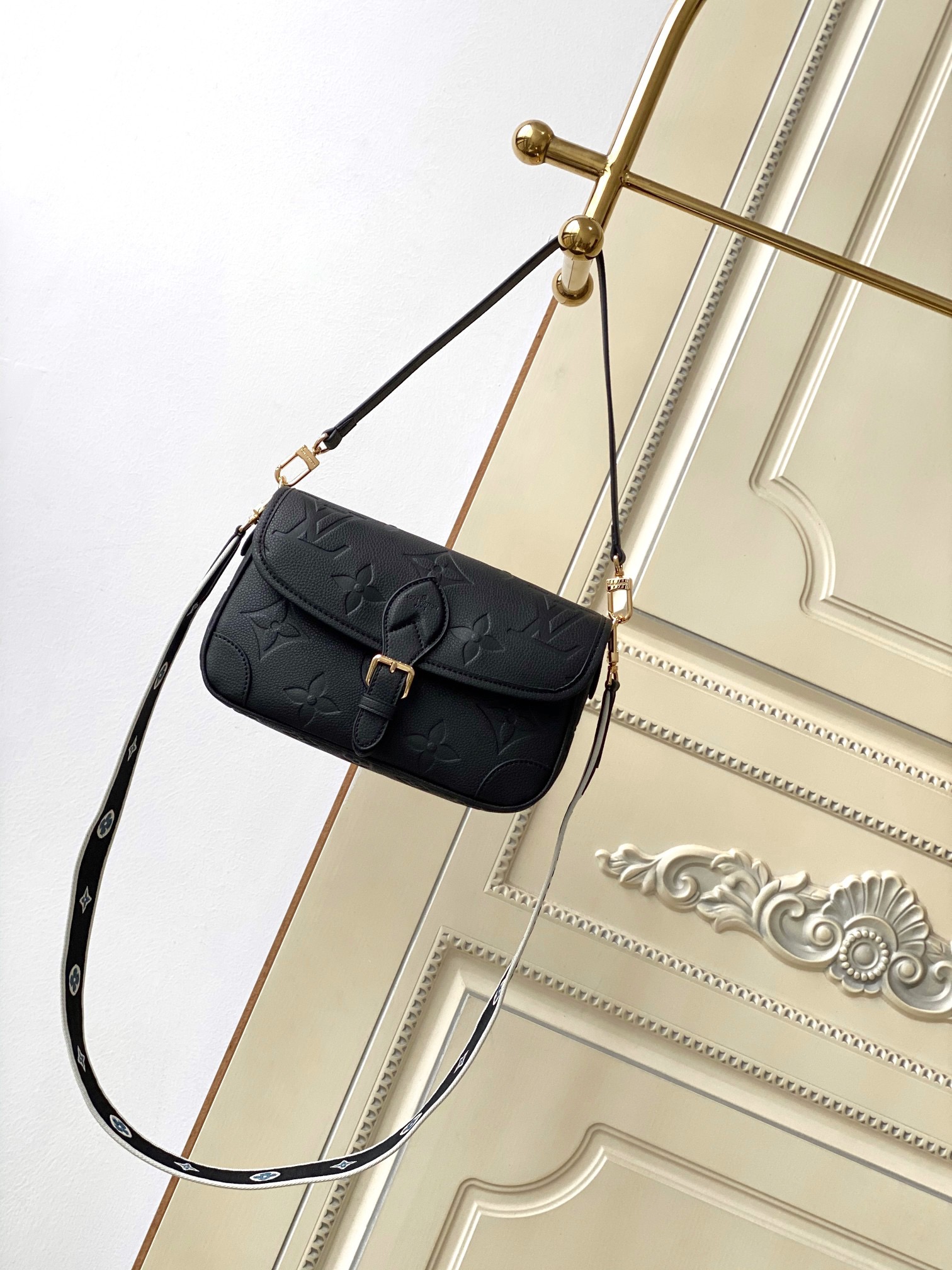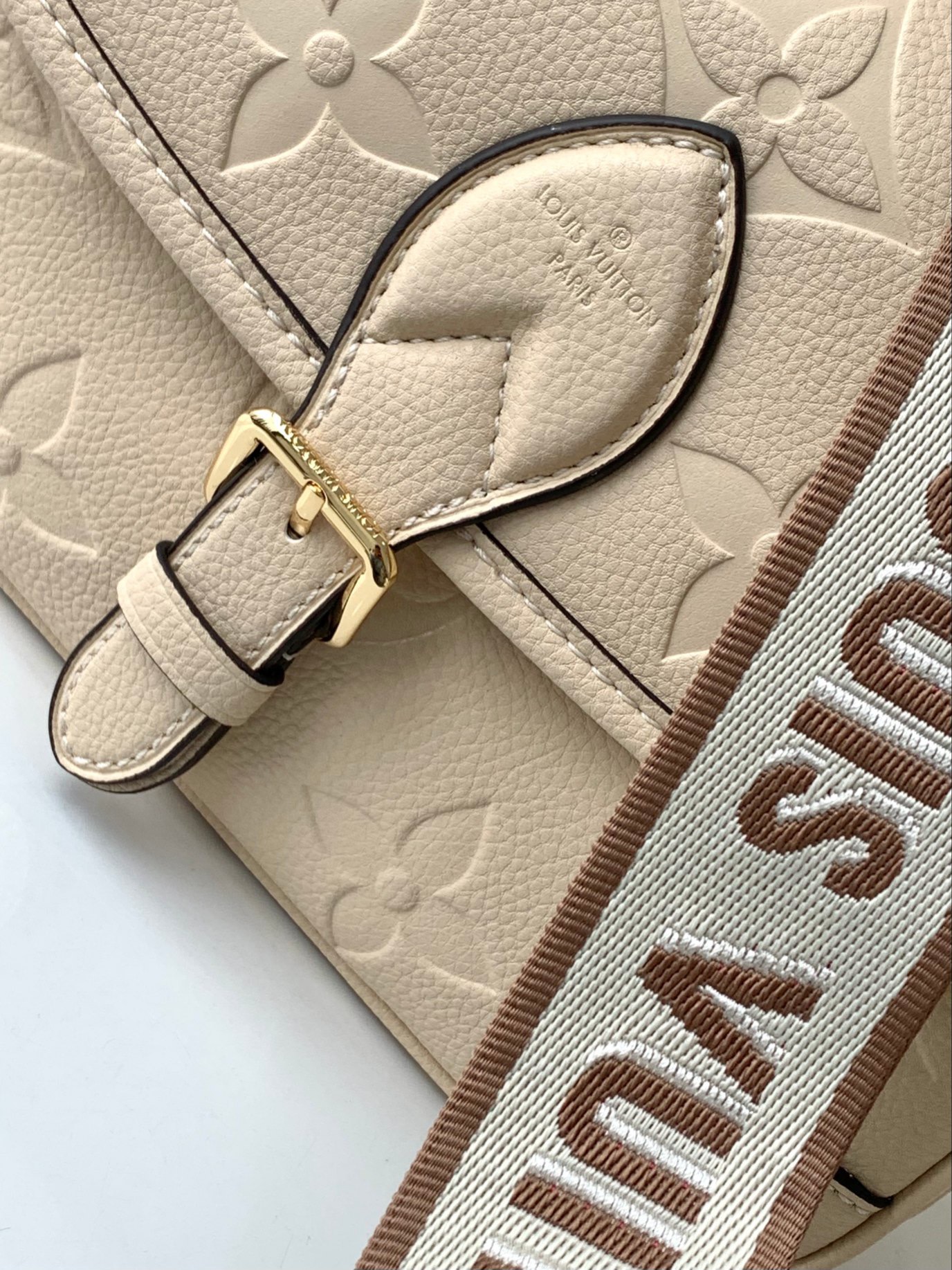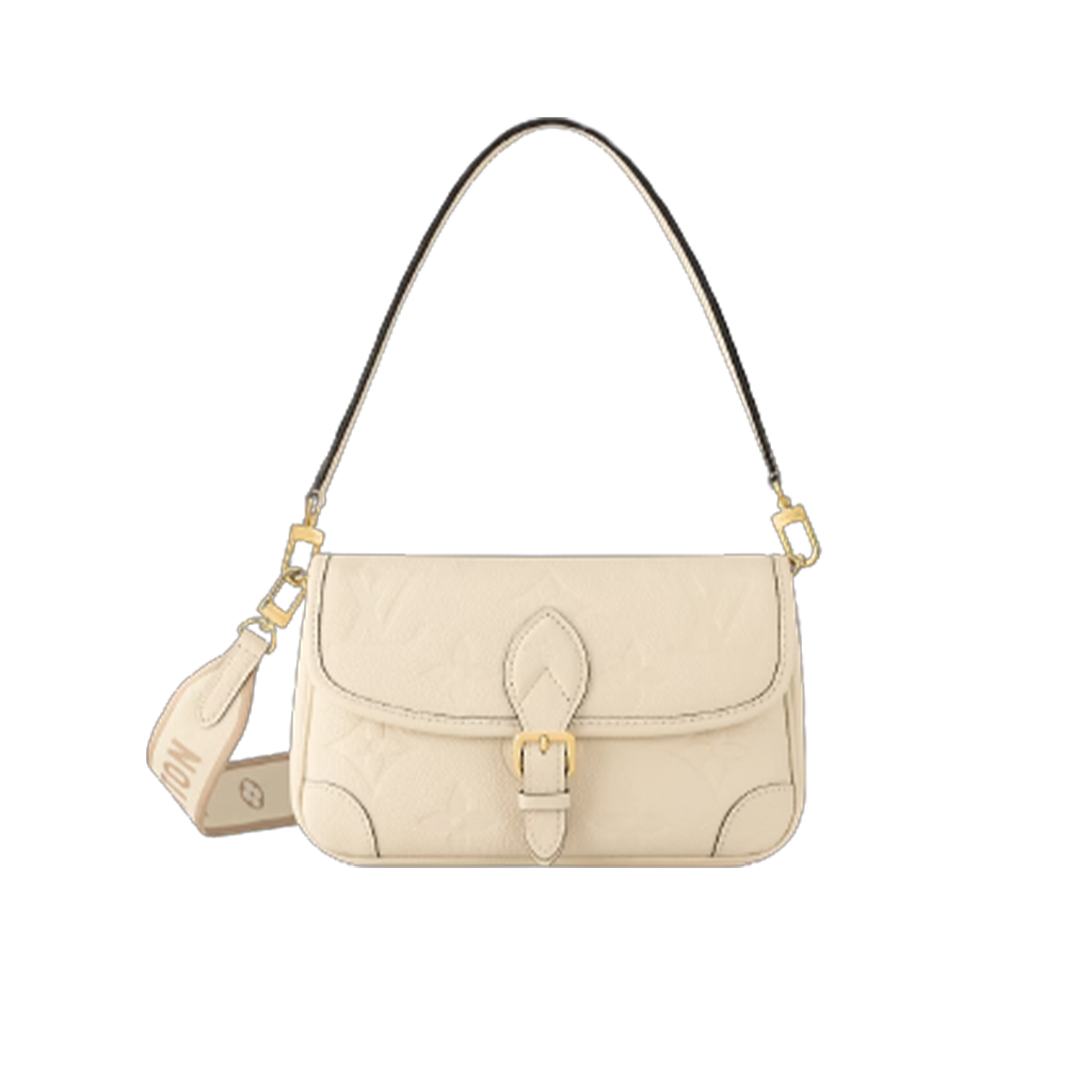 The Diane satchel is expertly crafted from the iconic Monogram Empreinte leather, showcasing the Maison’s impeccable design. It comes with a convenient detachable leather strap, allowing for effortless shoulder or hand carry. Additionally, the bag offers a wide and removable jacquard cross-body strap, adorned with the elegant “Louis Vuitton” weave, further adding to its versatility. Whether you prefer a chic or sporty look, this bag effortlessly adapts to your style, effortlessly complementing any ensemble or mood.