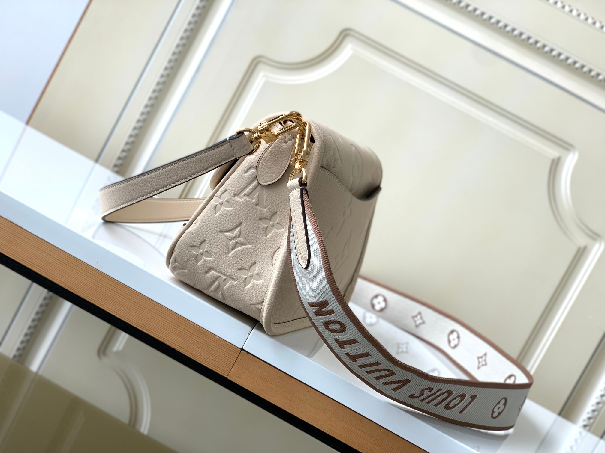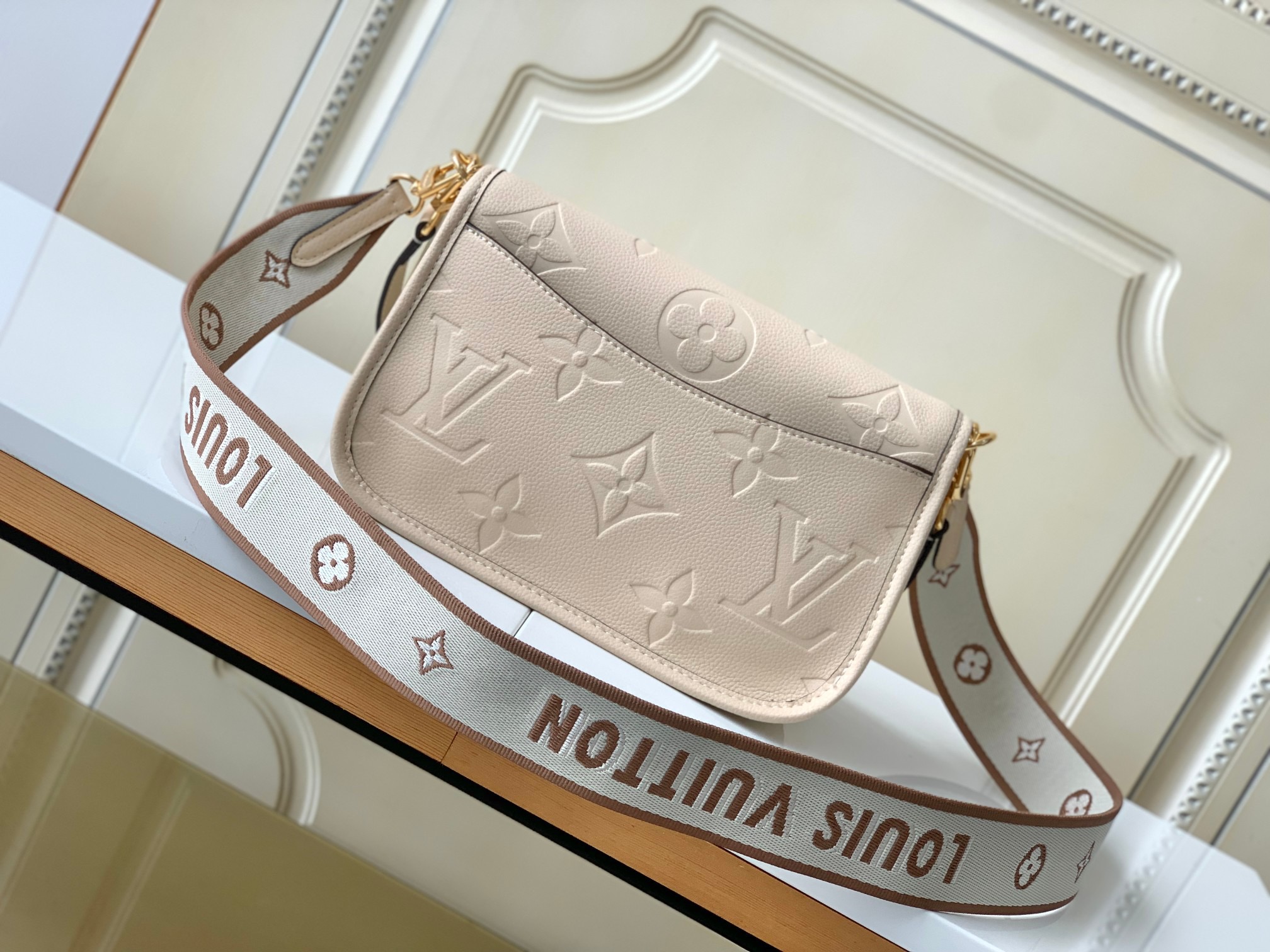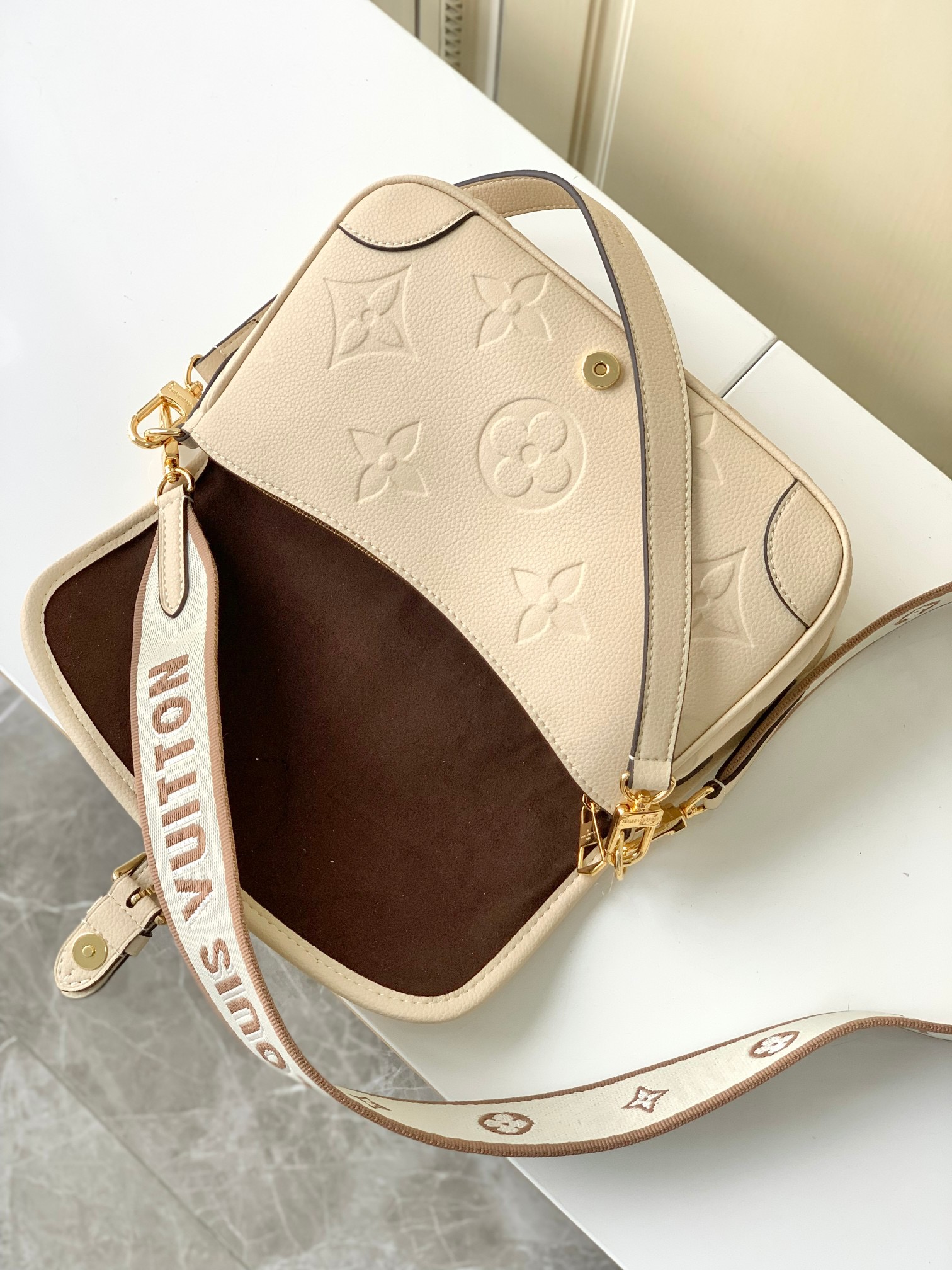 The Diane satchel is expertly crafted from the iconic Monogram Empreinte leather, showcasing the Maison’s impeccable design. It comes with a convenient detachable leather strap, allowing for effortless shoulder or hand carry. Additionally, the bag offers a wide and removable jacquard cross-body strap, adorned with the elegant “Louis Vuitton” weave, further adding to its versatility. Whether you prefer a chic or sporty look, this bag effortlessly adapts to your style, effortlessly complementing any ensemble or mood.