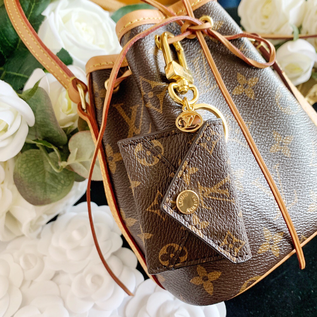 The pouch bag charm and key holder effortlessly combine practicality and elegance. The design showcases the iconic Monogram canvas, adding a touch of versatility. With a functional pouch that opens through a convenient snap button, every detail is flawlessly crafted. Inside, a luxurious suede lining awaits, complemented by House emblems like the LV Circle charm and signature engraving, adding a distinctive touch.