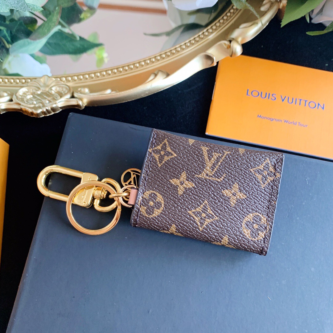 The Kirigami Pouch Bag Charm & Key Holder combines practicality with elegance. Crafted from LV Monogram canvas, it features a snap button closure, suede lining, and a stylish LV Circle charm.