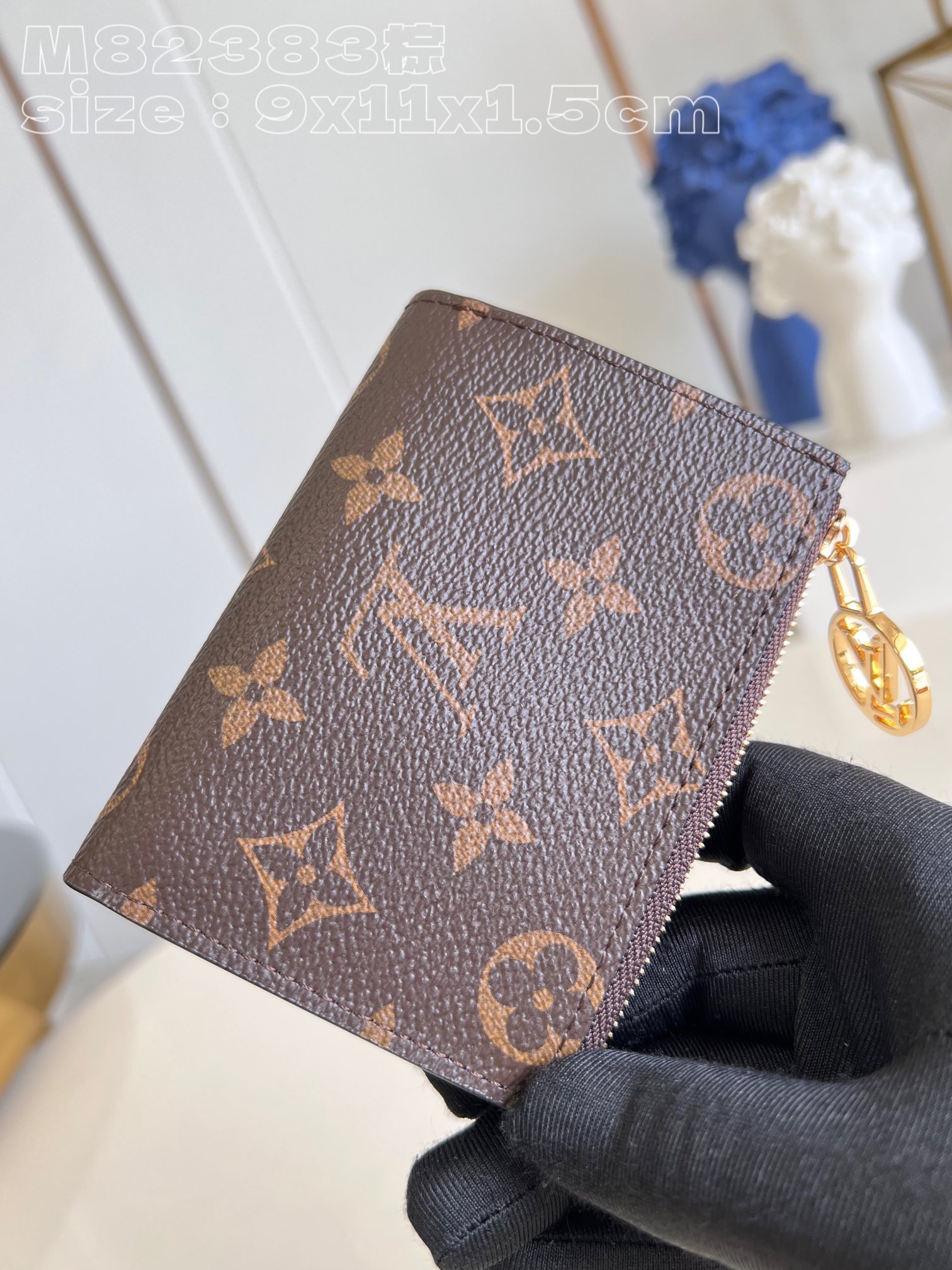 This Lisa Wallet combines elegance and function in a compact, Monogram canvas design with vibrant leather lining. With an LV charm on its zippered coin pocket, it offers a sleek, organized space for bills, cards, and coins—perfect for small bags and clutches.