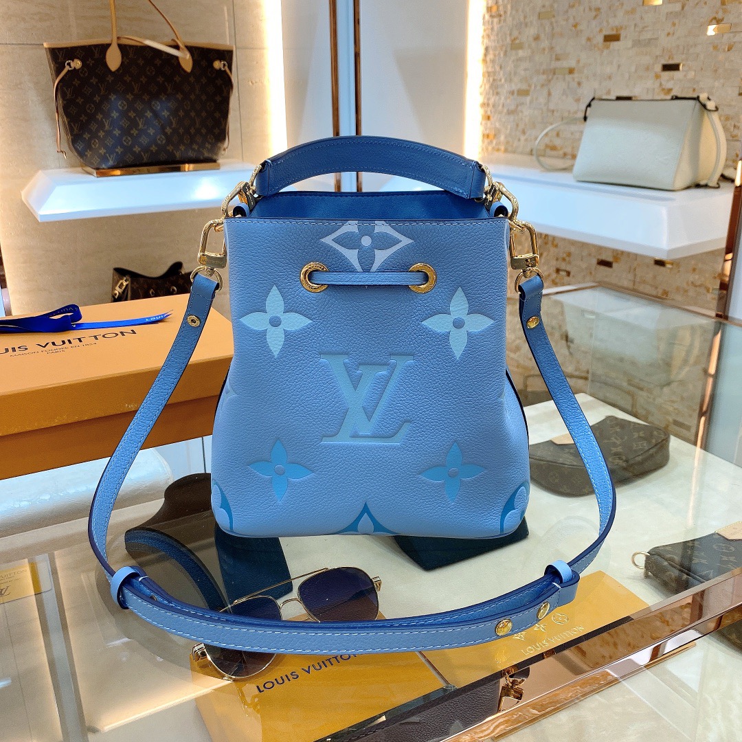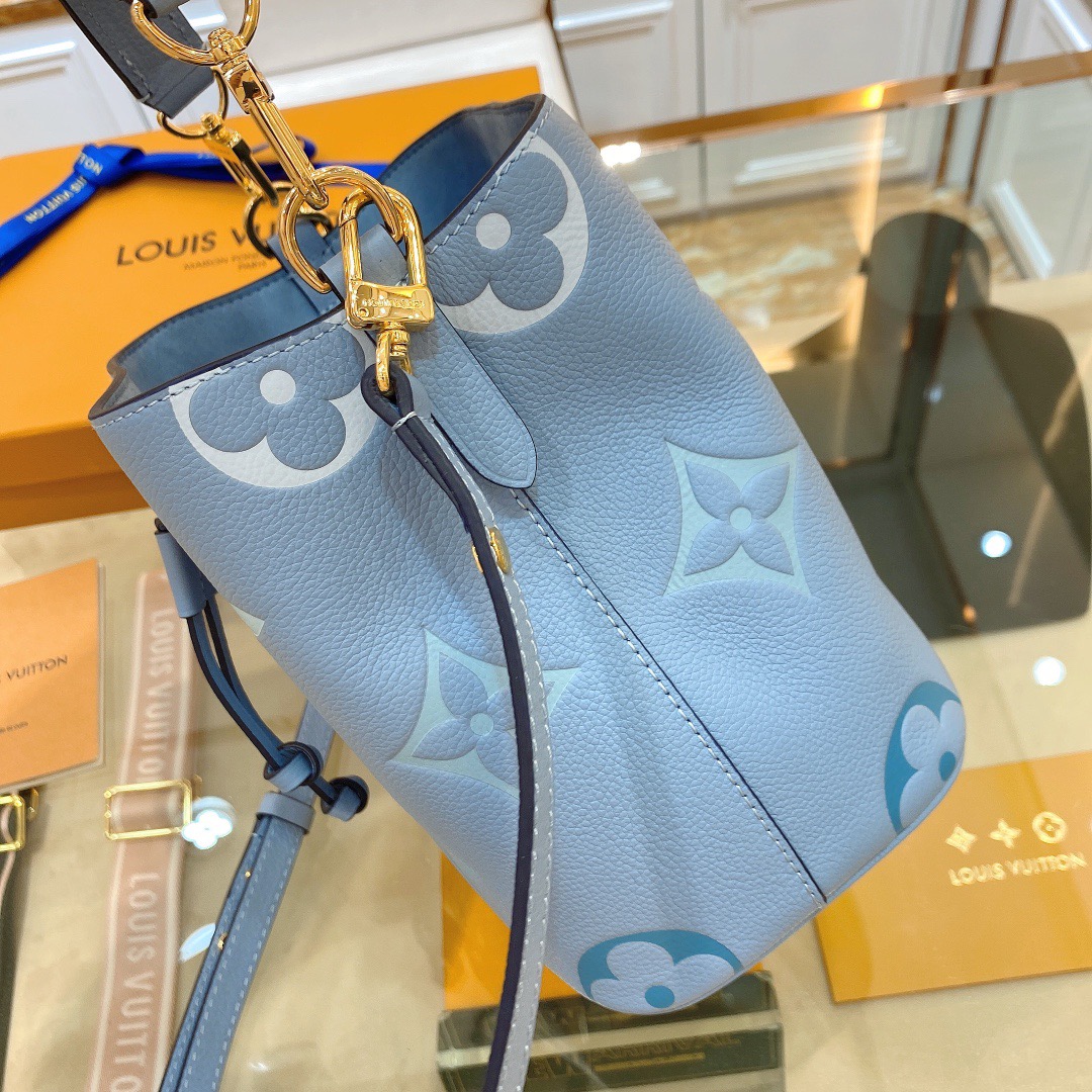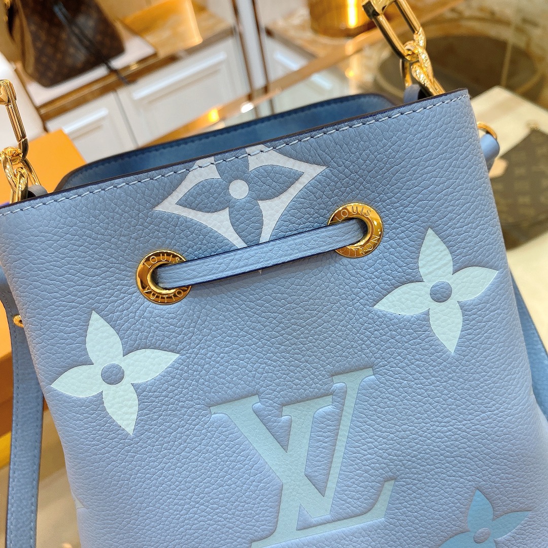 The NéoNoé BB bucket bag in pastel Monogram Empreinte leather combines playful charm and elegance. Its versatile design offers multiple carrying options, perfect for adding a whimsical touch to any outfit.