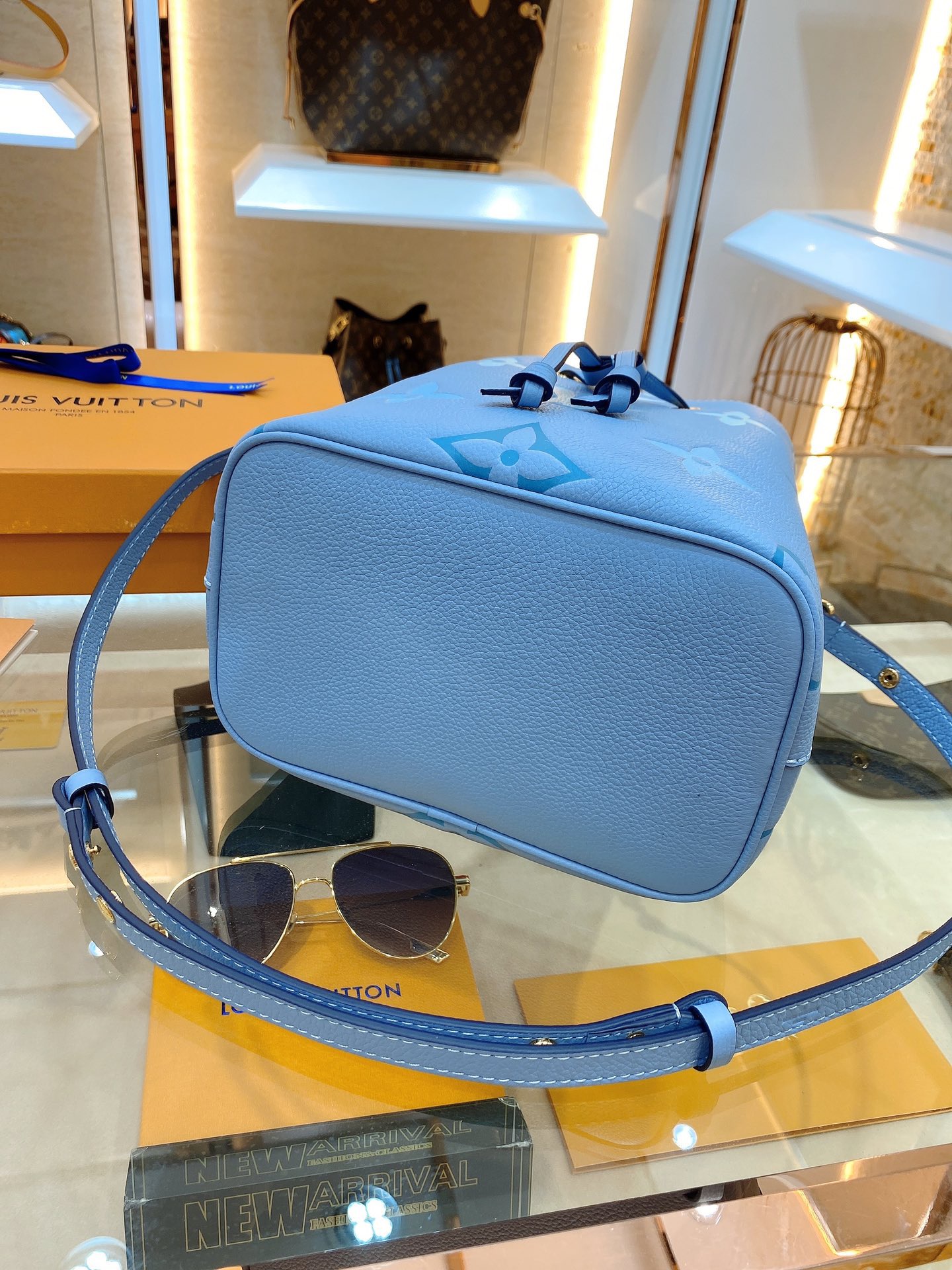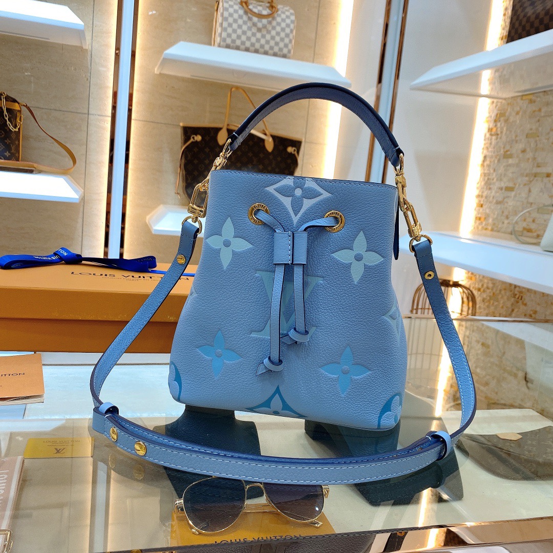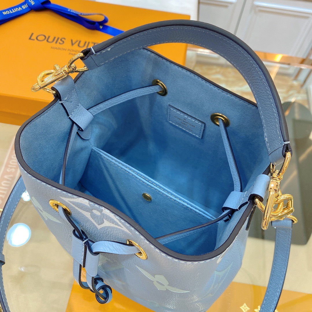 The NéoNoé BB bucket bag in pastel Monogram Empreinte leather combines playful charm and elegance. Its versatile design offers multiple carrying options, perfect for adding a whimsical touch to any outfit.