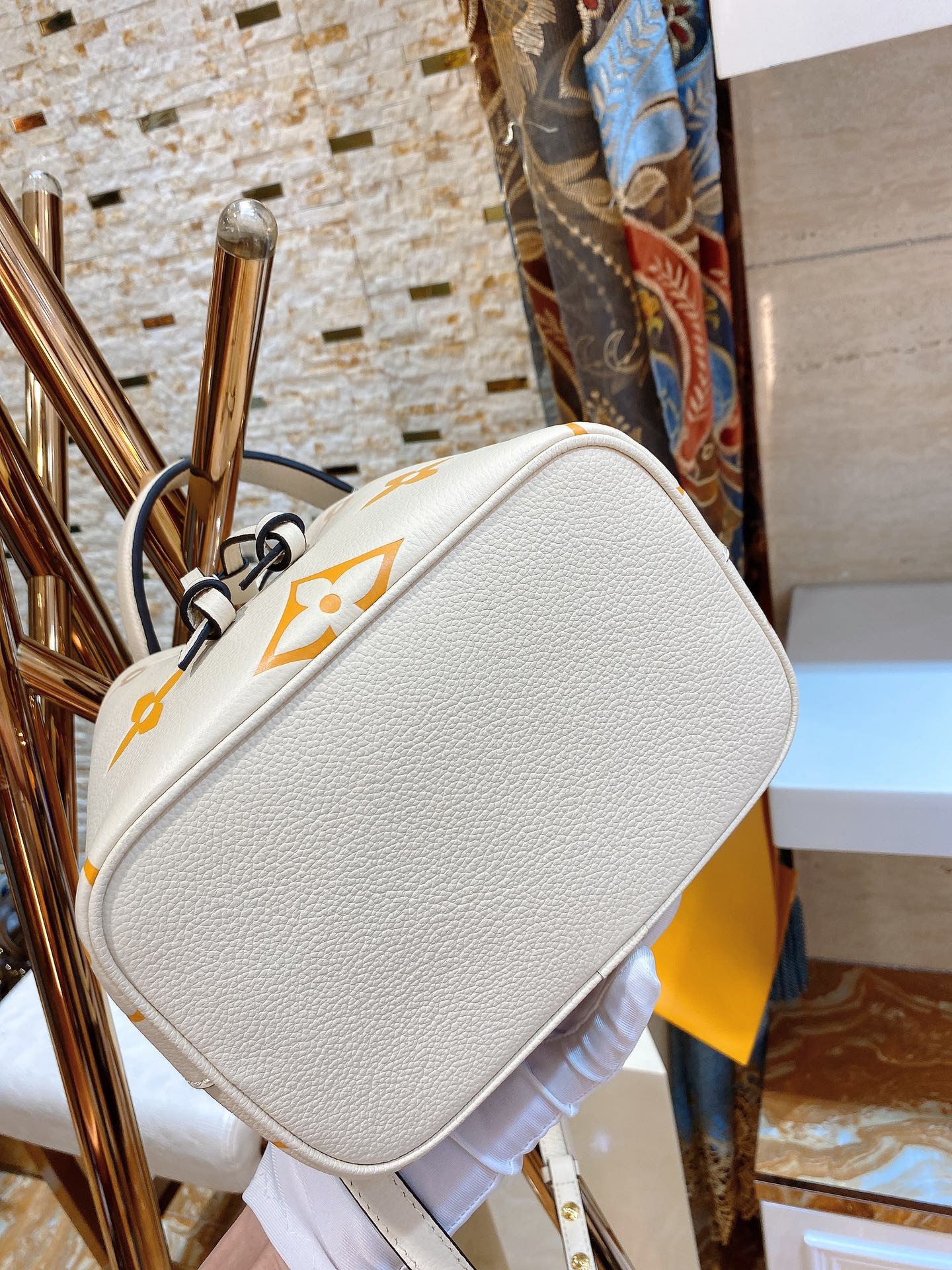 NéoNoé BB. Authentic quality luxury bag crafted in genuine leather comes with authenticity card, dust bag and gift bag.Embrace Festival Vibes with the Stylish NéoNoé BB – A Bucket Bag of Whimsical Pastel Delights!