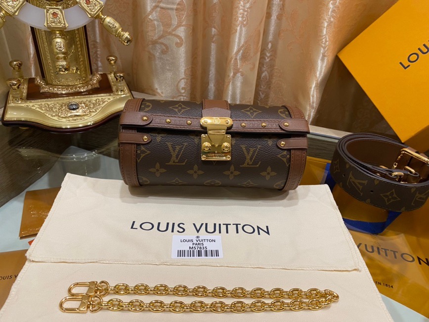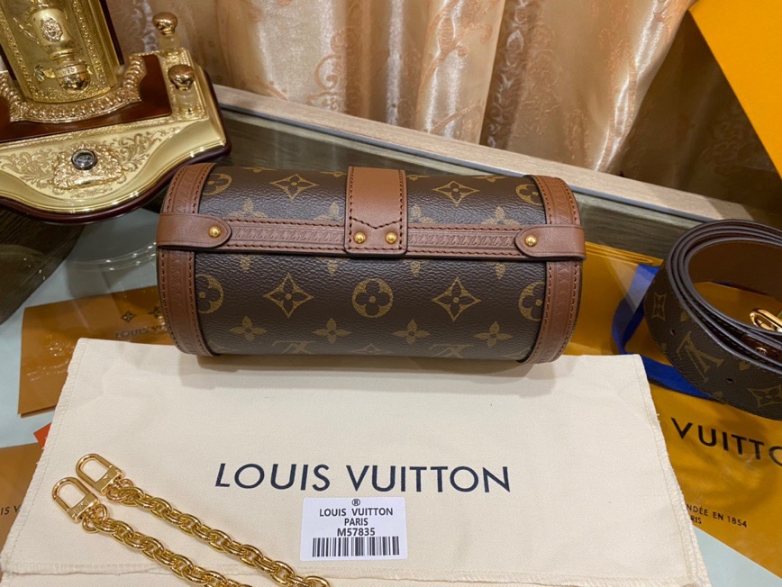 Nicolas Ghesquière unveils a stunning creation, blending femininity and casual style, drawing inspiration from the historic archives of *OUIS *TON. In this fashion-forward moment, the renowned Papillon duffle bag undergoes a marvelous transformation, emerging as a chic and sophisticated semi-rigid baguette. Through delicate details such as the S-Lock, LV-embossed trunk trimmings, and elegantly placed studs, the design pays homage to the House’s storied beginnings in trunkmaking.