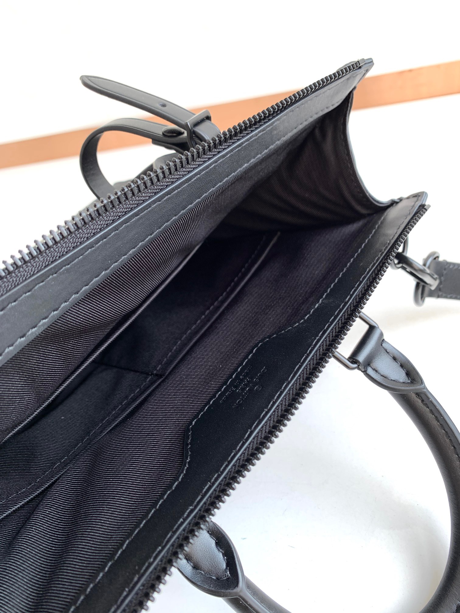 This exquisite new bag, crafted from luxurious black Taurillon leather, takes inspiration from the iconic Sac Plat, a beloved model from the House’s rich heritage. With its elegant leather reinforcement strips and name tag, it proudly showcases the same level of sophistication. Additionally, it offers the convenience of a wide, easy-to-access zipper opening and a removable strap, allowing for versatile carrying options. This remarkable piece is a perfect blend of classic and contemporary, adding a modern twist to a timeless accessory.