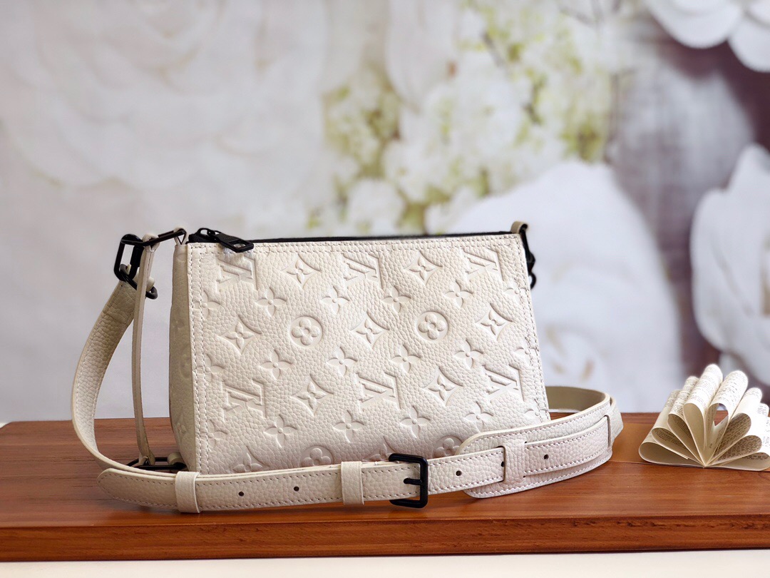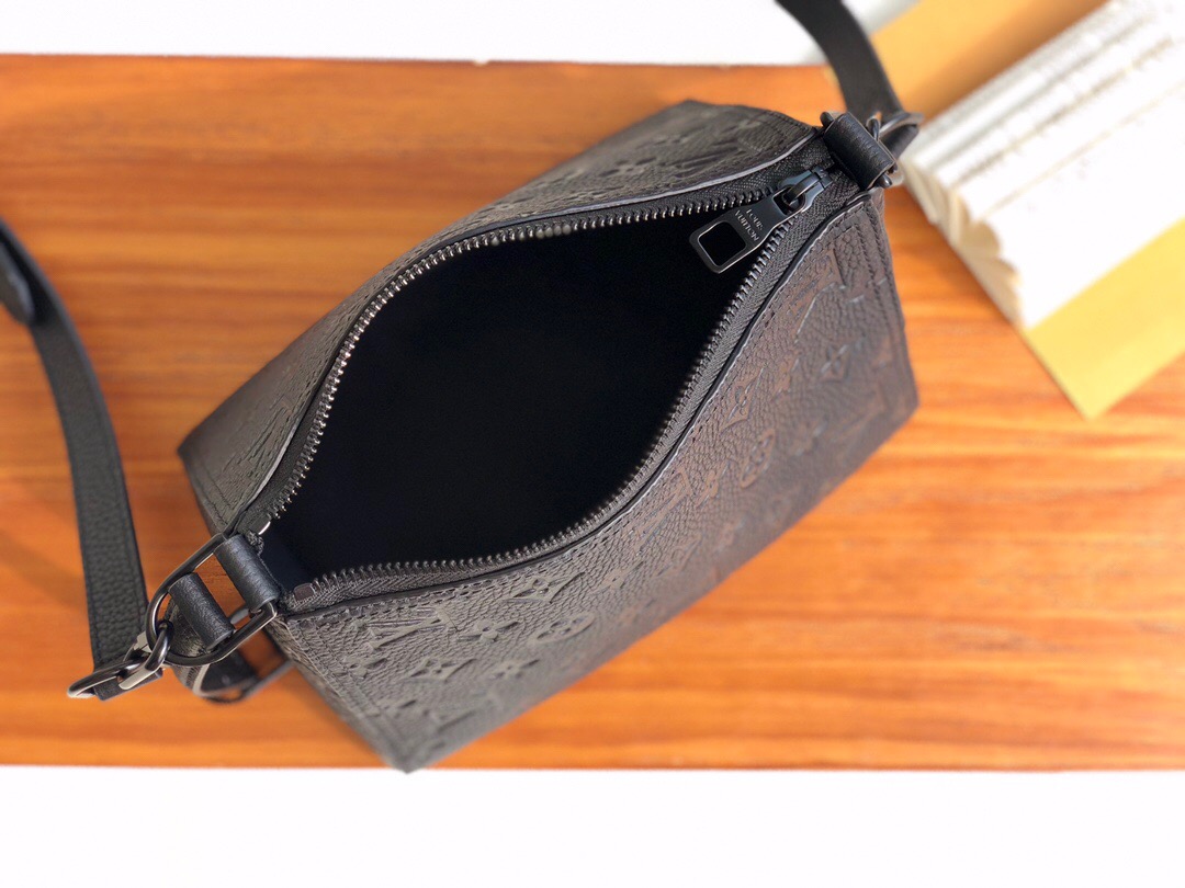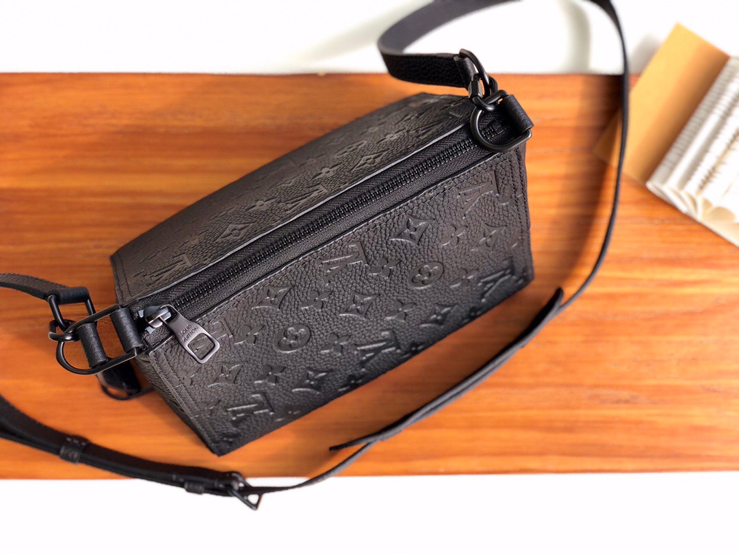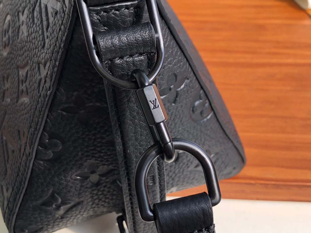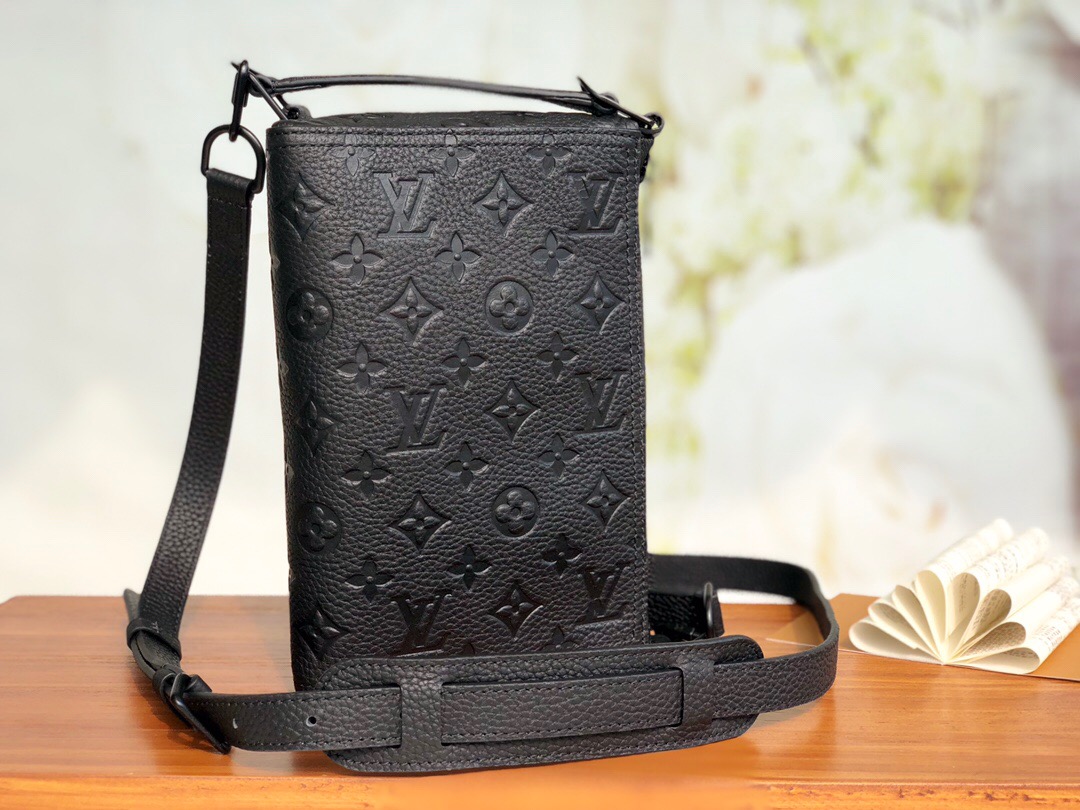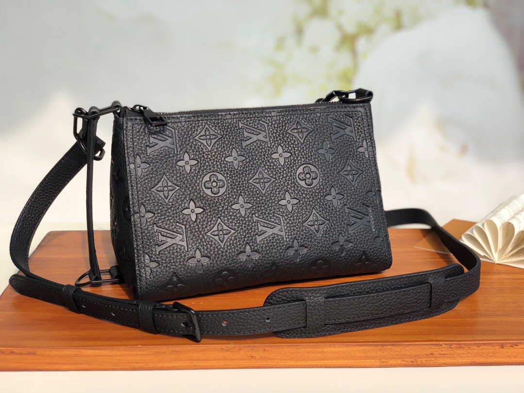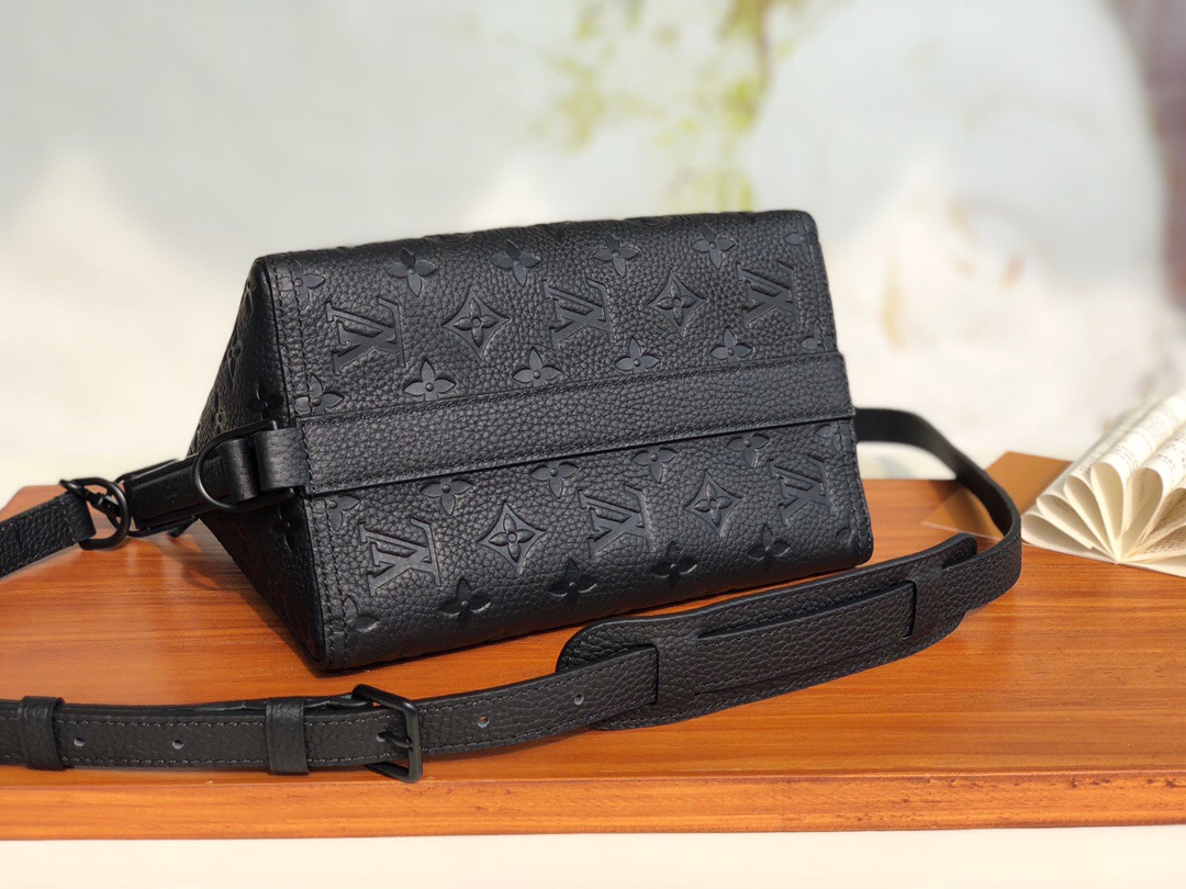 The Triangle Messenger Bag combines sleek black Taurillon leather with the iconic Monogram pattern for a striking triangular shape. Its versatile design offers stylish functionality, making it a must-have.