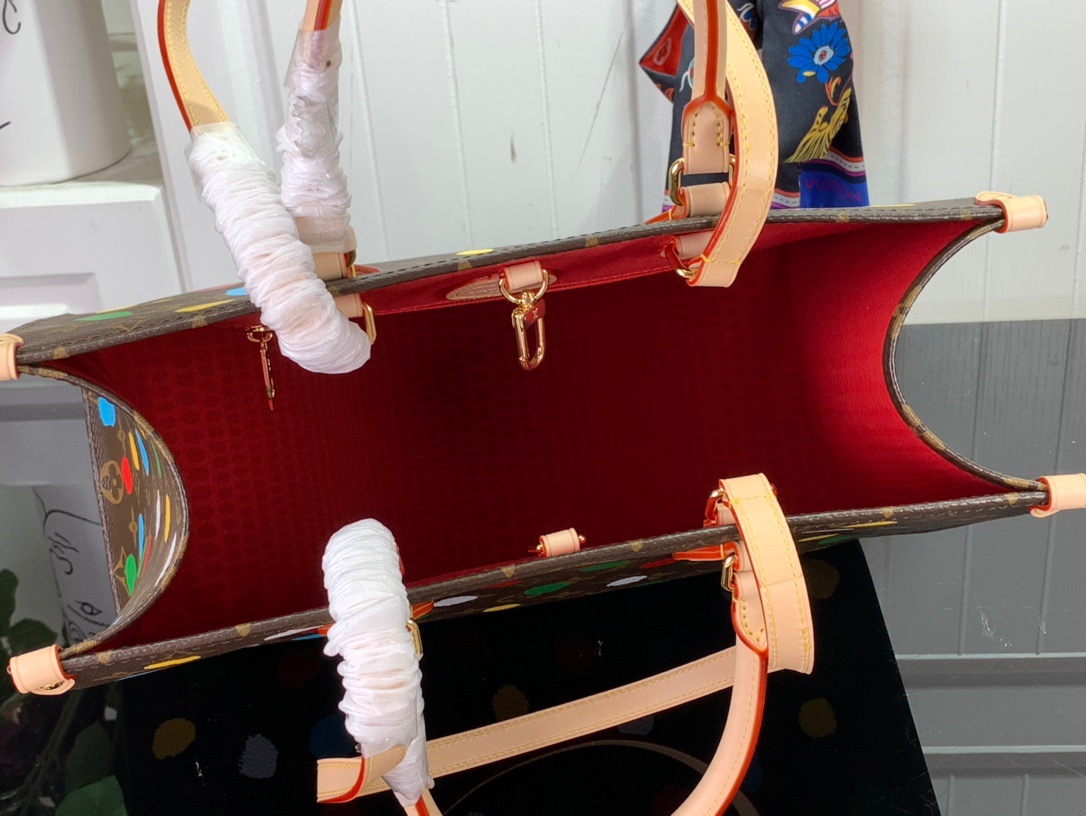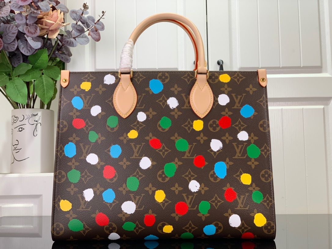 LV X Yayoi Kusama Onthego MM. Authentic quality luxury bag crafted in genuine leather comes with authenticity card, dust bag and gift bag. Artistic Expression Meets Iconic Style: Making a Statement with Yayoi Kusama’s Signature Dots!