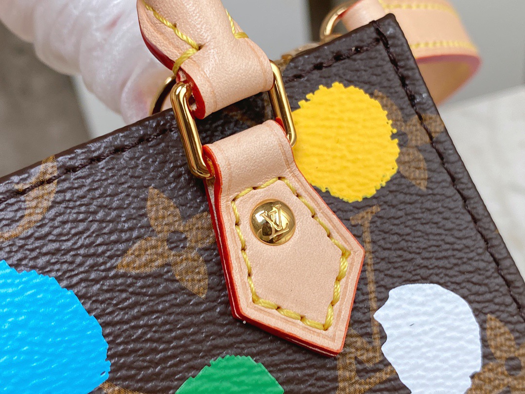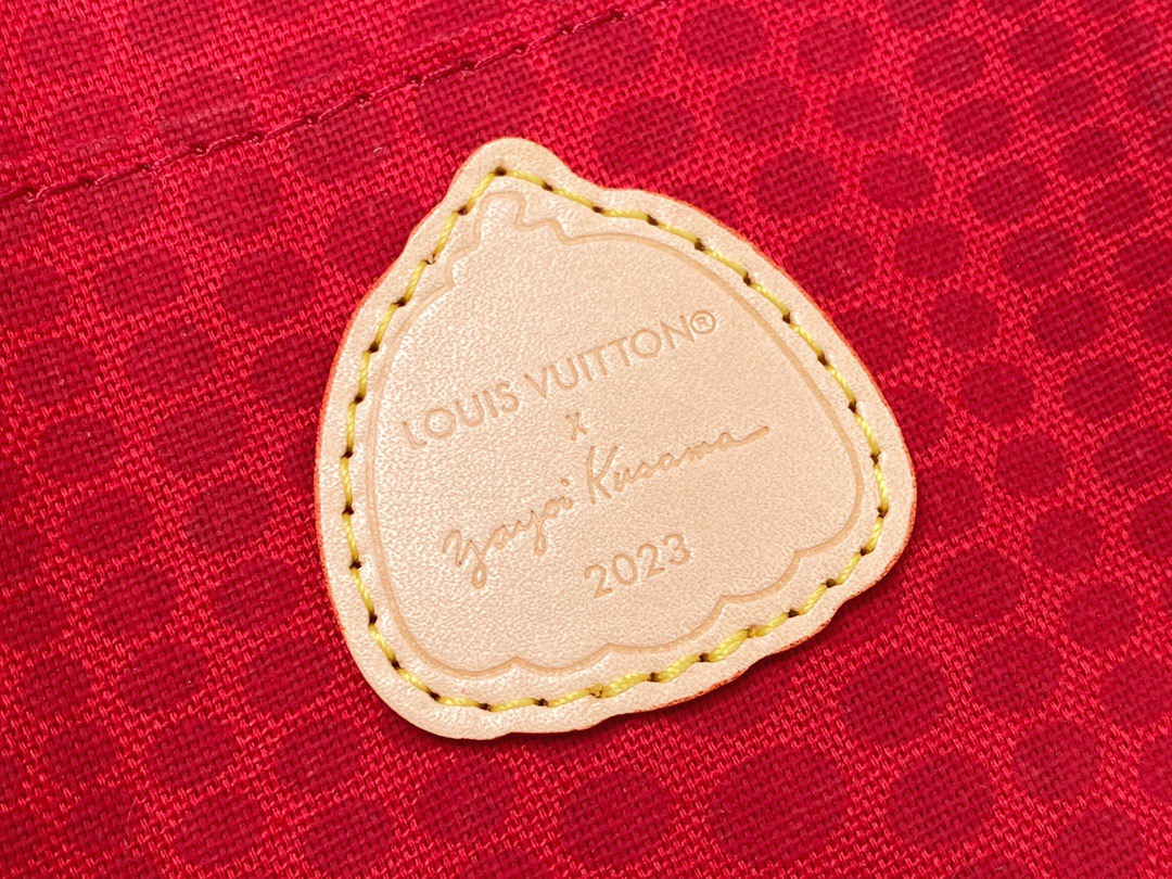 The LVxYK Petit Sac Plat is a masterpiece of art and style. Featuring Yayoi Kusama’s iconic dots on LV’s Monogram canvas, it’s a playful, compact tote that adds creativity to your wardrobe.