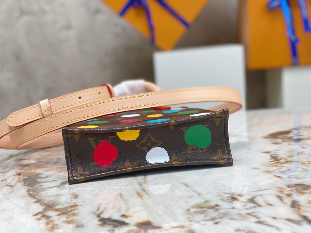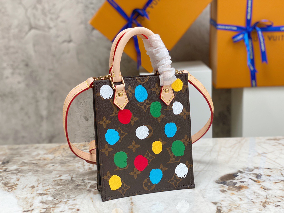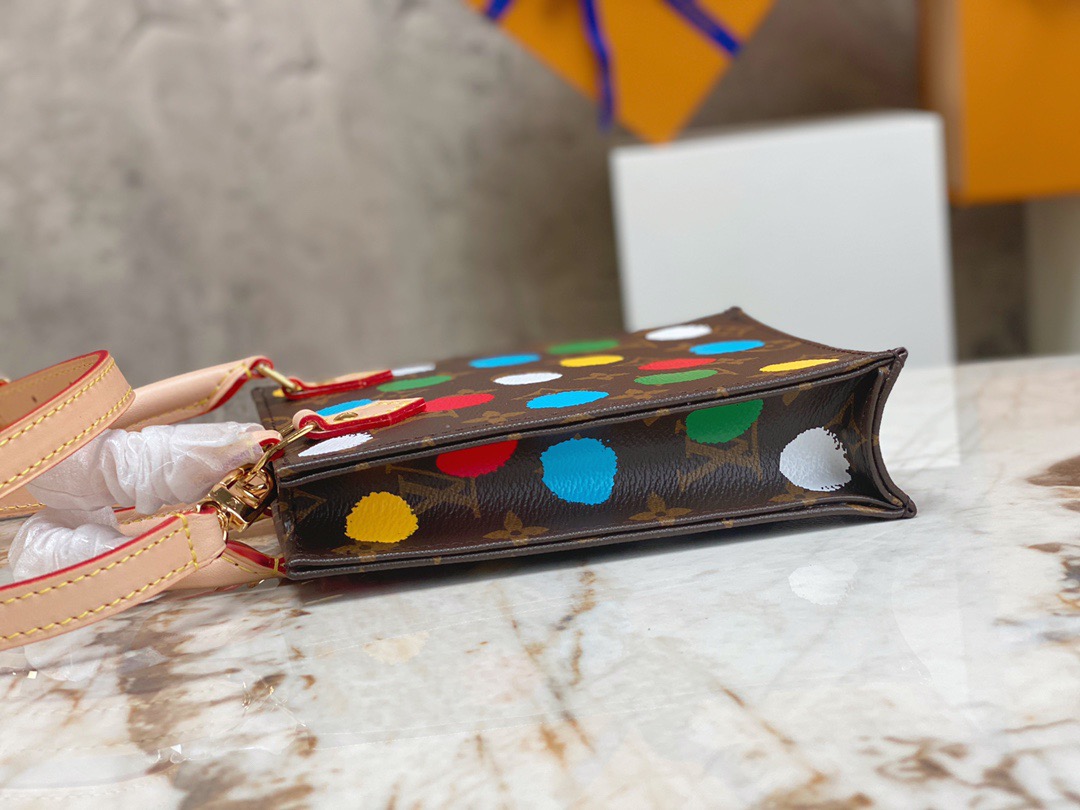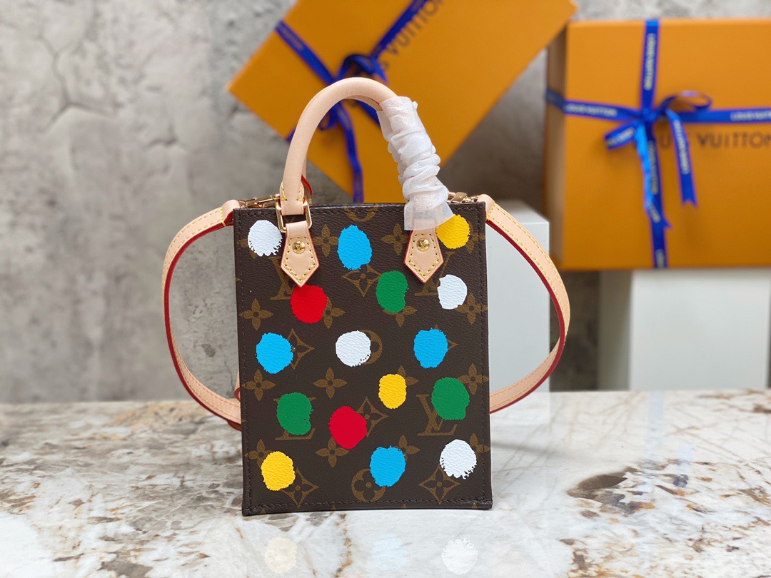 LV X Yayoi Kusama Petit Sac Plat. Authentic quality luxury bag crafted in genuine leather comes with authenticity card, dust bag and gift bag. Step into the world of art and style.