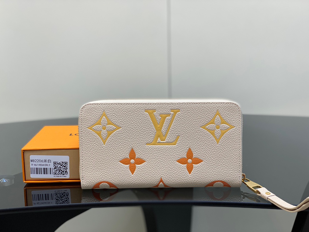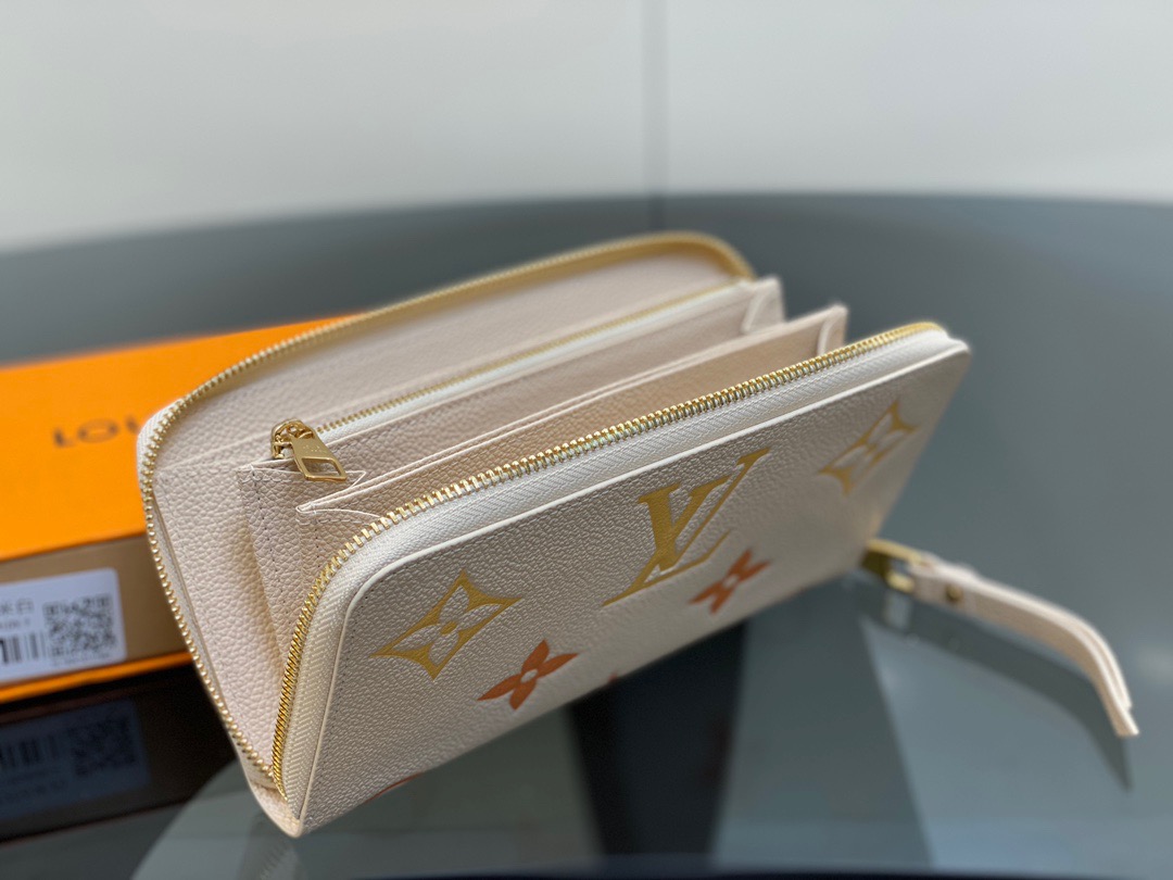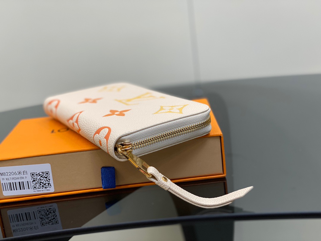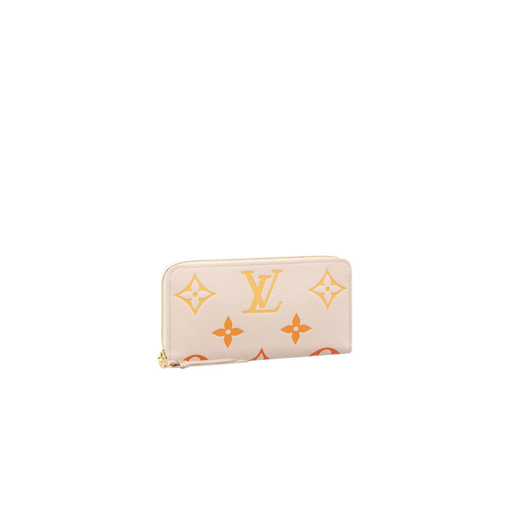 Presenting the exquisite Zippy wallet, a coveted piece from the LV Gradient collection for this season. Meticulously fashioned using grained, embossed Monogram Empreinte leather, it showcases a gracefully transitioning spectrum of summery hues. This iconic wallet is distinguished by its sleek, slender profile, dependable zip closure, and ingeniously designed interior replete with an array of card slots, pockets, and compartments, ensuring both style and functionality in one harmonious package.