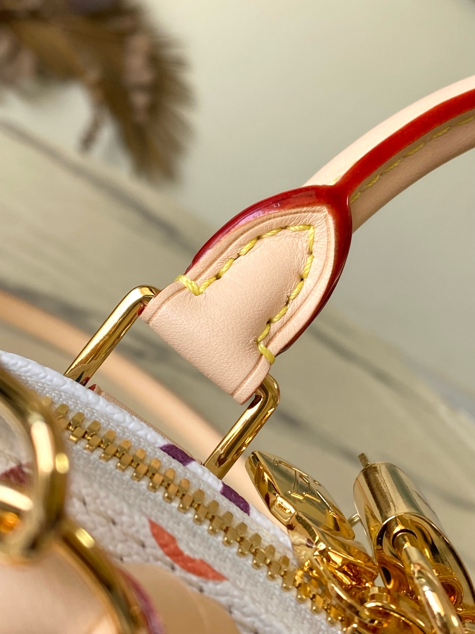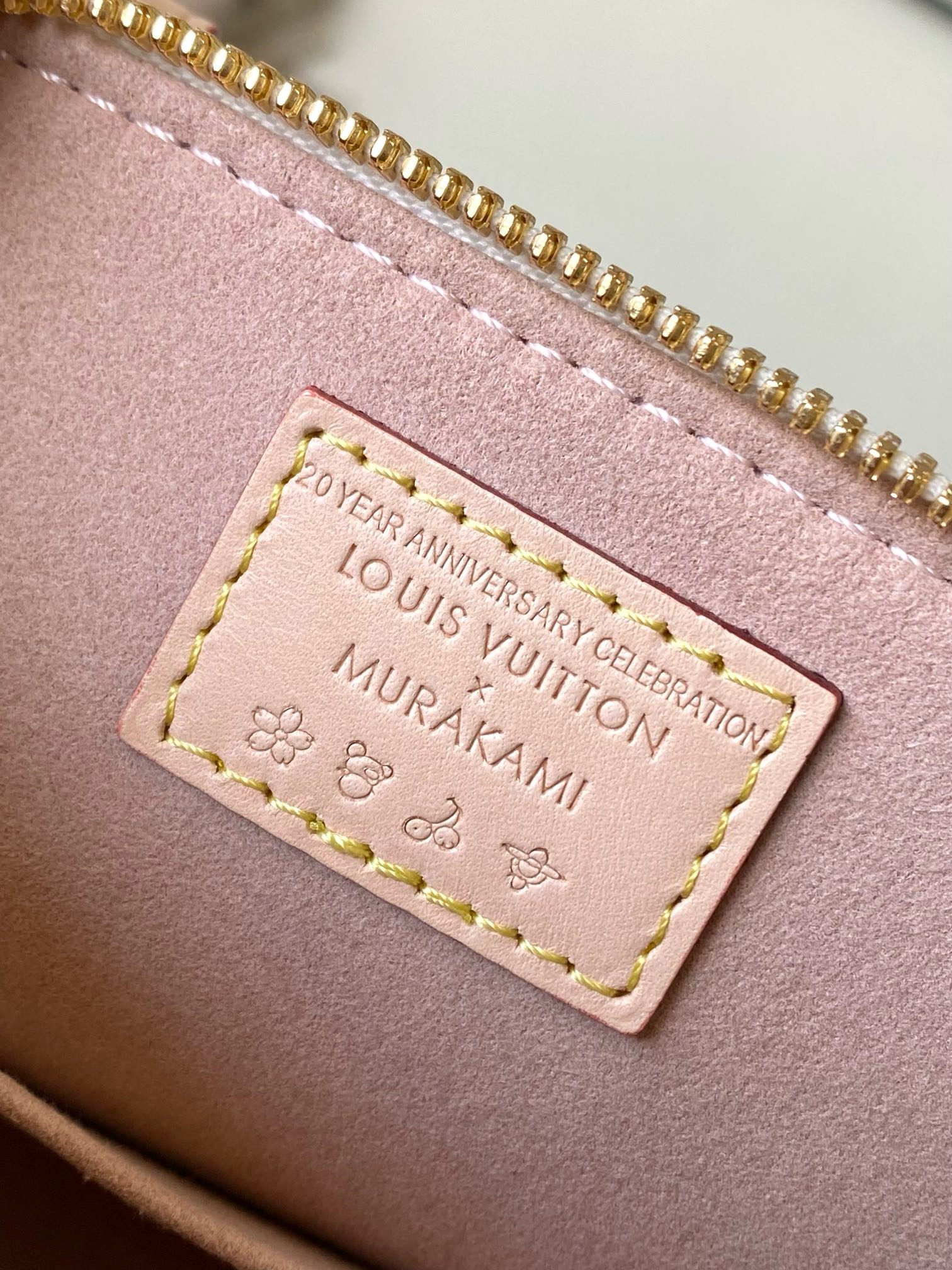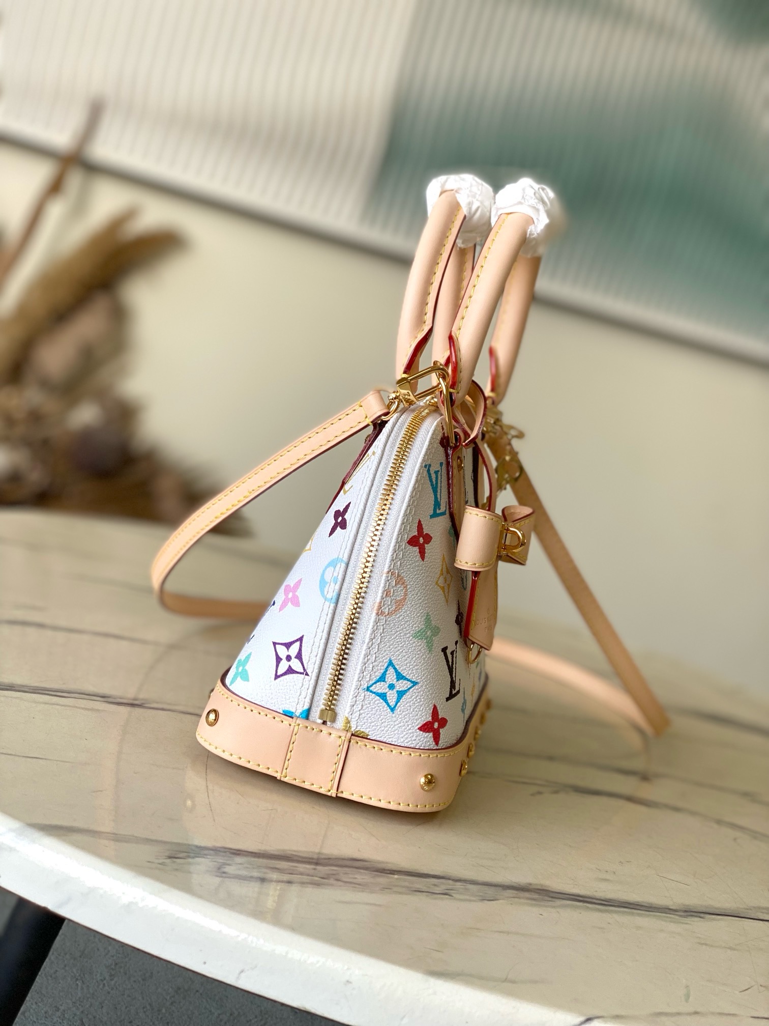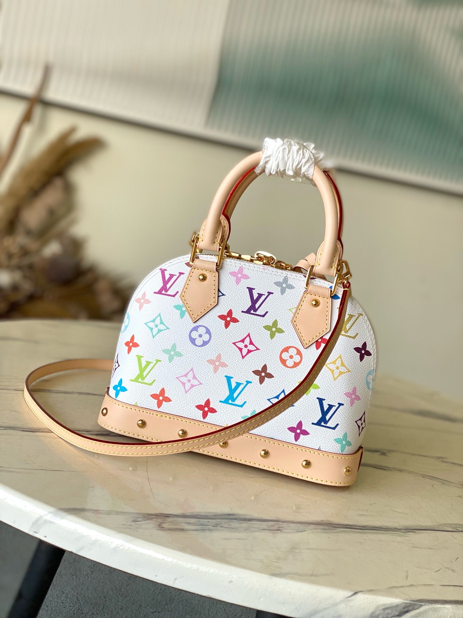 LV x TM Alma BB. Authentic quality luxury bag crafted in genuine leather comes with authenticity card, dust bag and gift bag. A Timeless Icon Reimagined in Murakami’s Playful Palette.