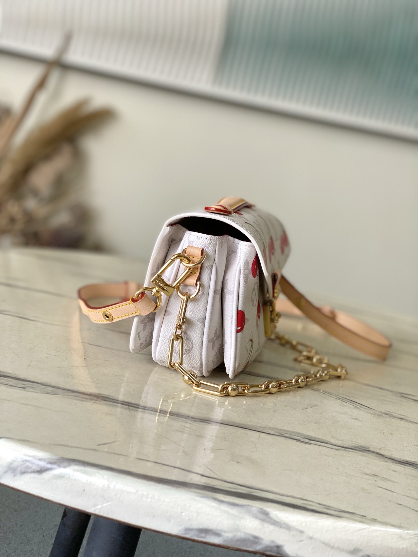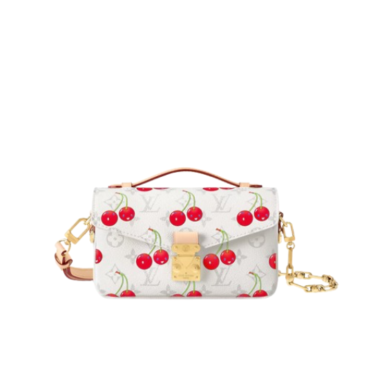 The LV x TM Pochette Métis East West is a compact delight—artful cherry motifs, smart compartments, and a golden S-lock make it both playful and polished. A true collector’s gem!