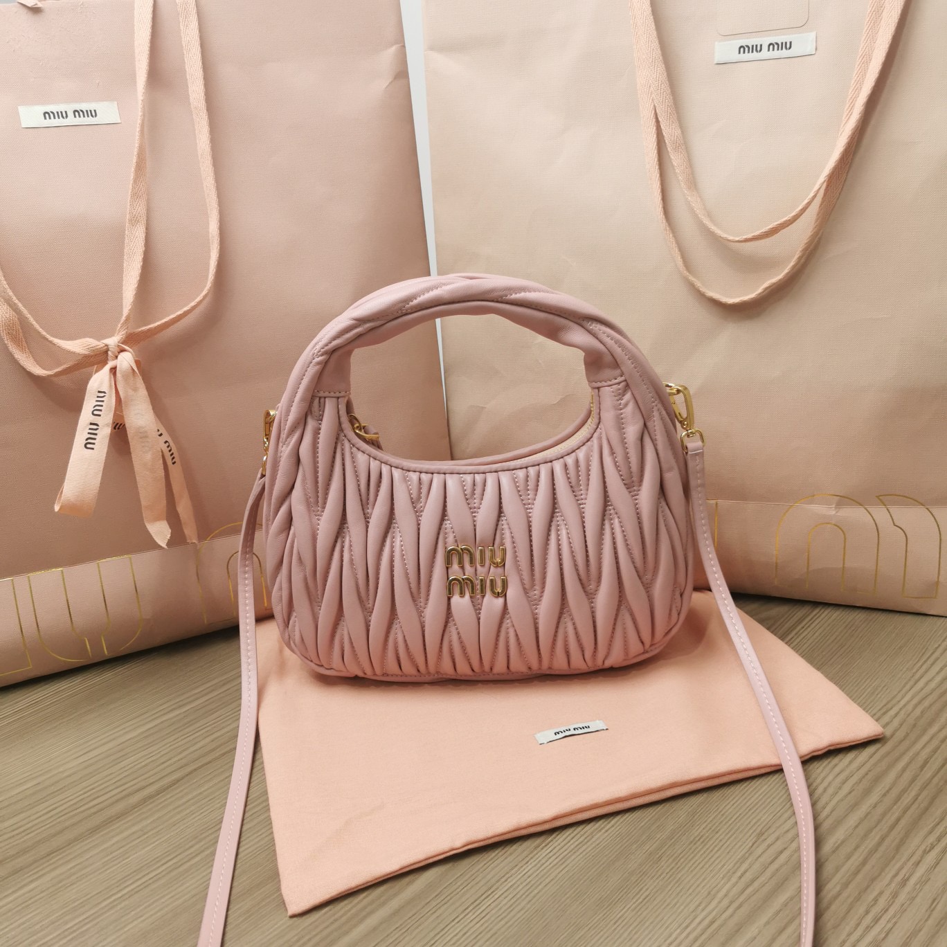 Wander Matelassé Mini Hobo Bag. Authentic quality luxury bag crafted in genuine leather comes with authenticity card, dust bag and gift bag. Retro meets modern femininity in exquisite matelassé leather craftsmanship.