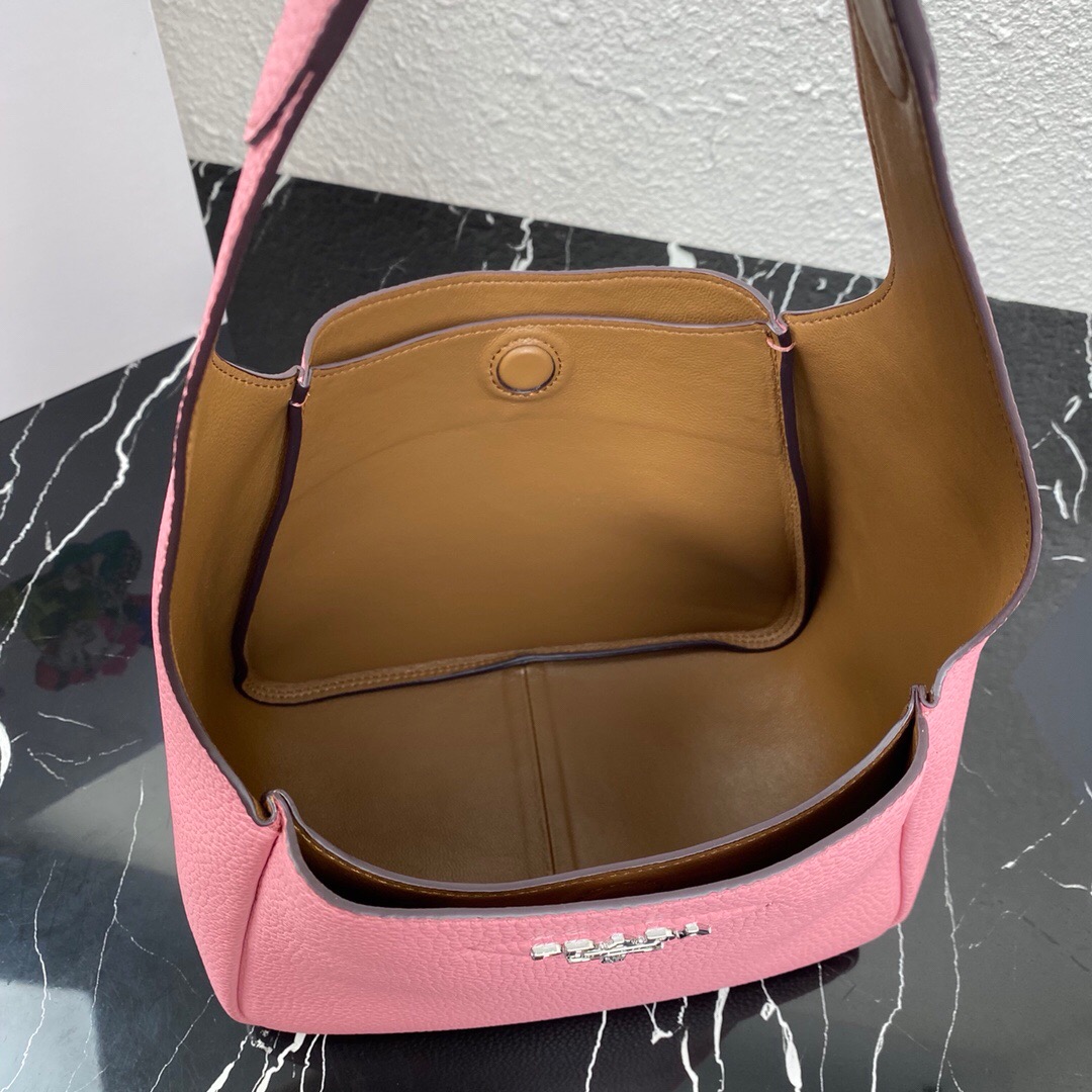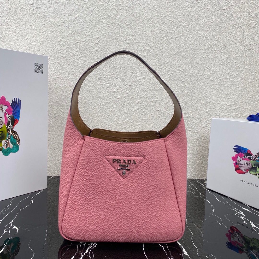 Features of PR*DA Logo Plaque Leather Tote Bag