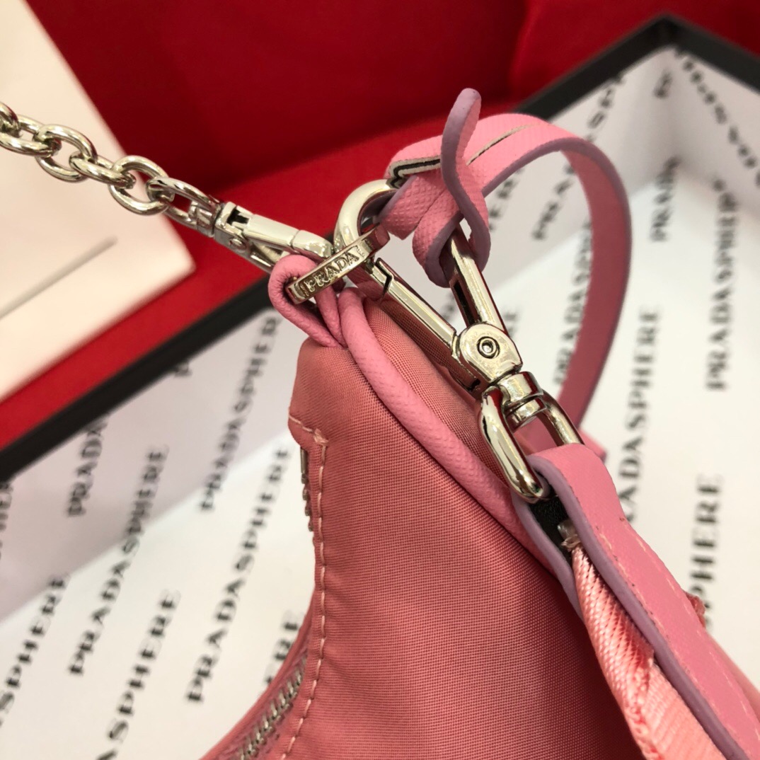 The Re-Edition 2005 Nylon Shoulder Bag offers endless possibilities for customization and wearability. It presents two detachable shoulder strap options: a chic metal chain strap and an adjustable logo fabric strap, allowing you to effortlessly wear the bag cross-body. Additionally, the accompanying mini removable pouch, featuring the Pr*da metal triangle logo, enhances its practicality and charm.