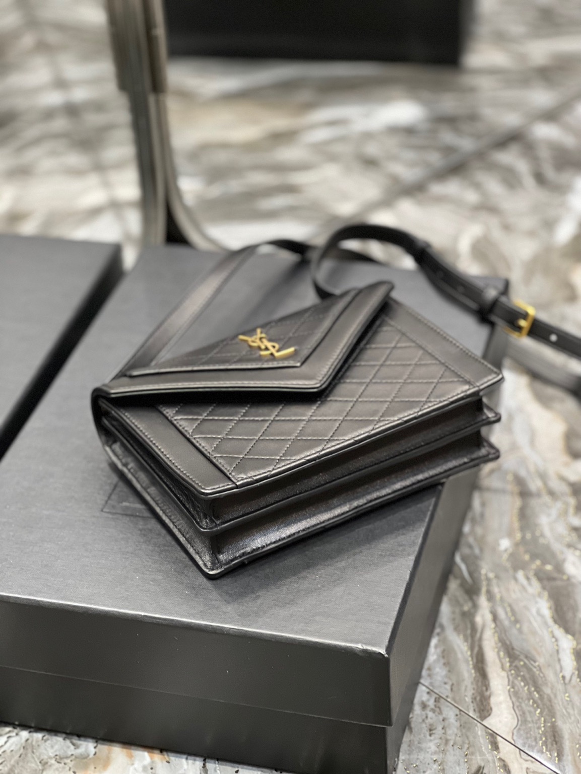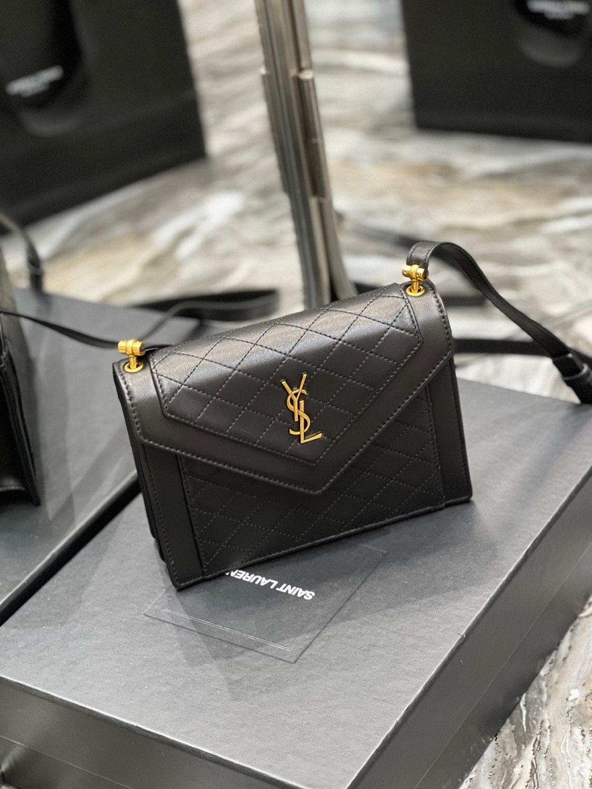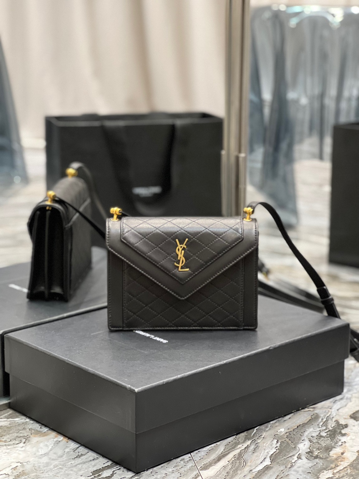 The Gaby Mini Satchel is pure evening elegance. With diamond-quilted leather, iconic YSL hardware, and versatile styling, it’s the ultimate chic accessory for a glamorous night out.